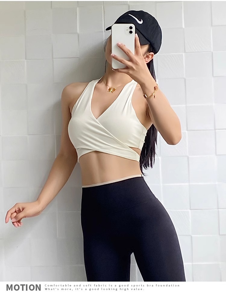 여름 스포츠 슬리밍 통기성 요가 티셔츠 조끼 가슴 패드 여성 전문 필라테스 훈련 백리스 운동 옷스토어 가기