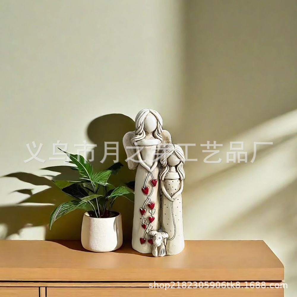 창조적 인 부모-자식 동상 장식 치유 가족 캐릭터 어머니와 딸 아이 개 동상스토어 가기