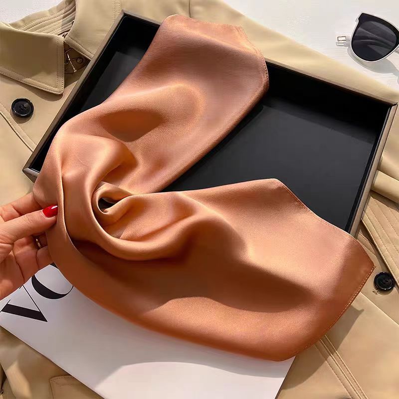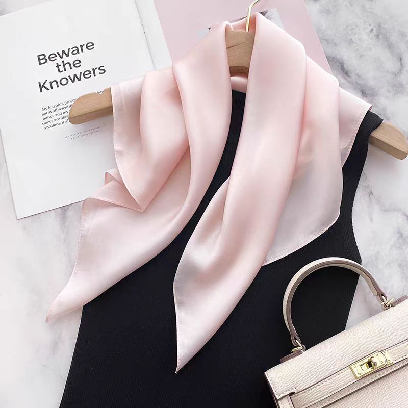 봄과 가을 단색 고급 질감 실크 스카프 70 중형 스퀘어 스카프 여성 올 매치 봄과 가을 100% 뽕나무 실크 작은 스카프
