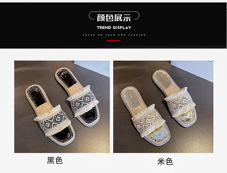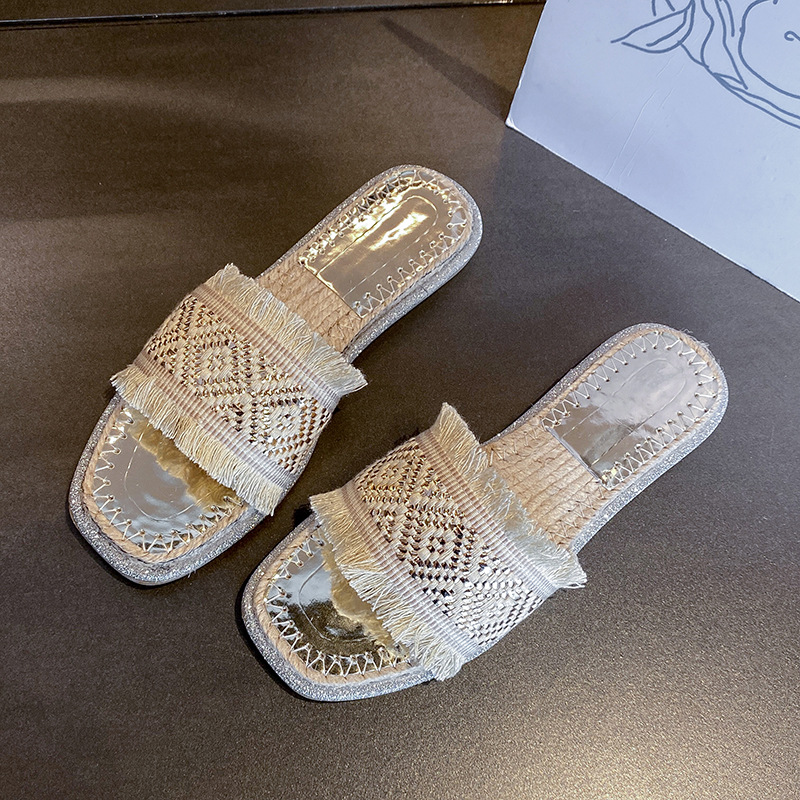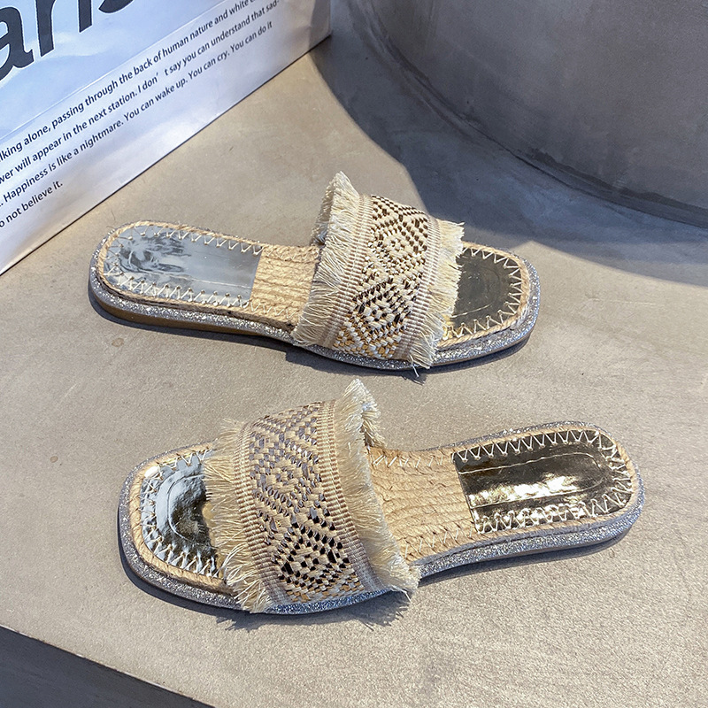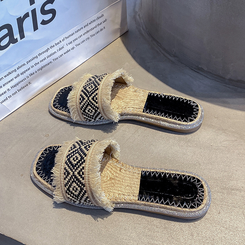 2024 여름 해변 해변 짠 대마 로프 슬리퍼 캐주얼 플랫 슬리퍼 야외 여성 신발스토어 가기