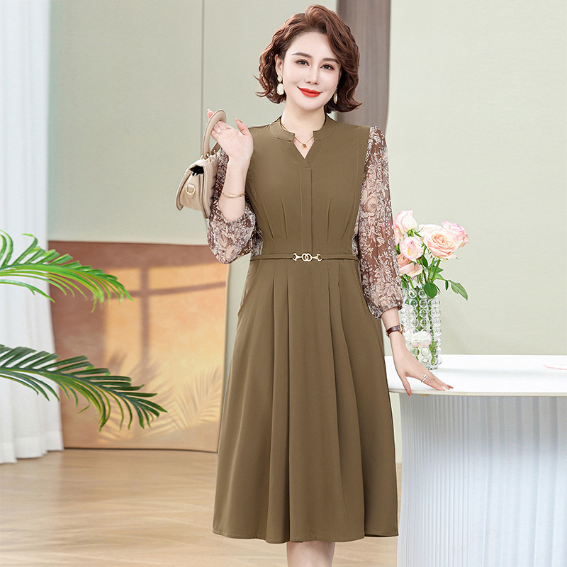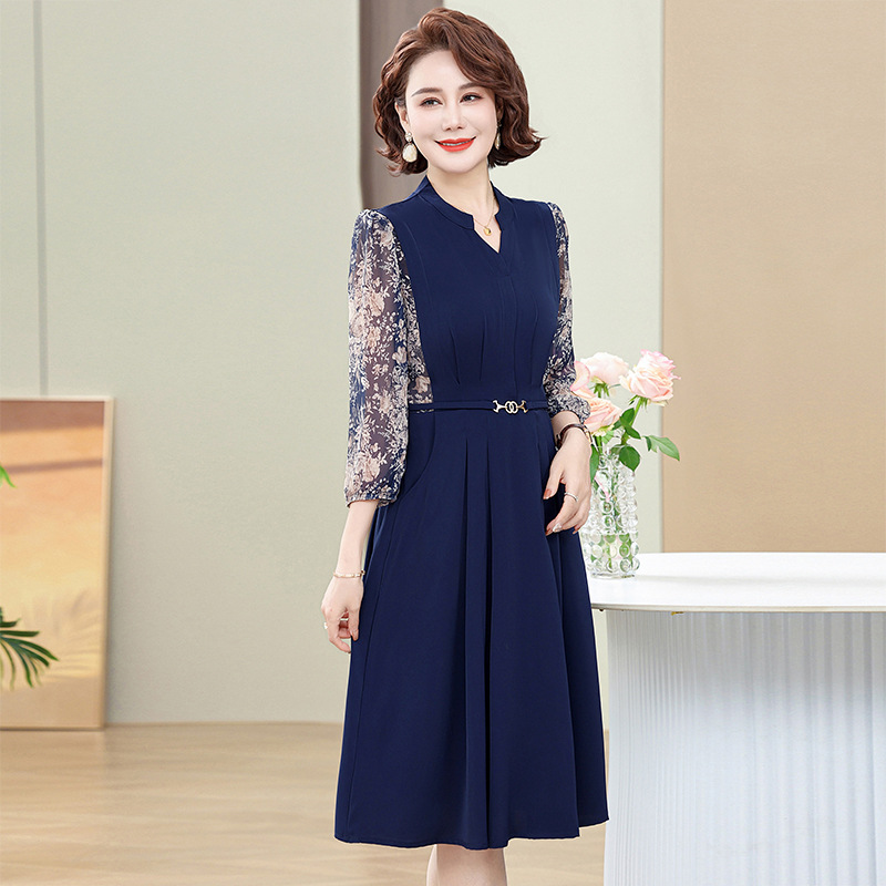 중년 및 노인 어머니의 원피스 원피스 중년 서양식 봄 새로운 여성 결혼식 파티 가짜 투피스 원피스 시어머니 원피스스토어 가기