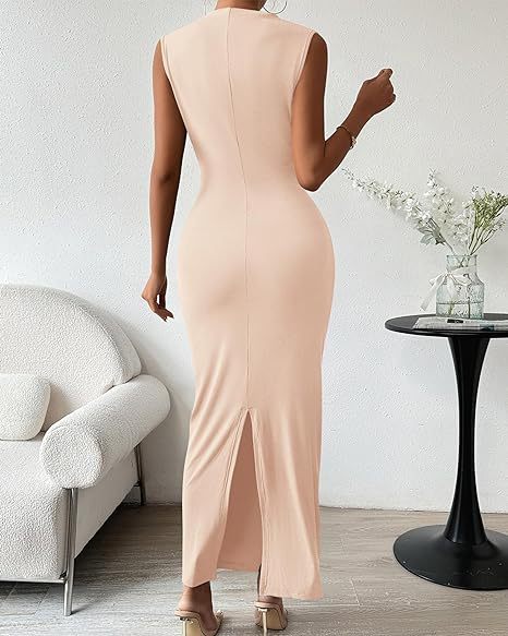 2025 유럽과 미국의 대외 무역 국경 간 여성 의류 아마존 봄 여름 인기 민소매 뒷면 슬릿 셔링 타이트 드레스스토어 가기