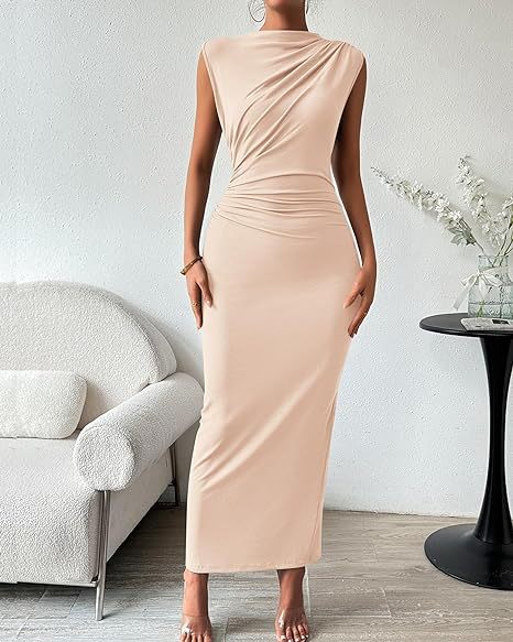 2025 유럽과 미국의 대외 무역 국경 간 여성 의류 아마존 봄 여름 인기 민소매 뒷면 슬릿 셔링 타이트 드레스