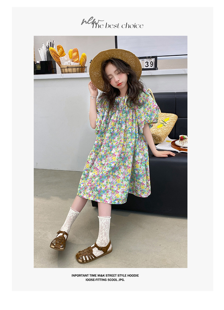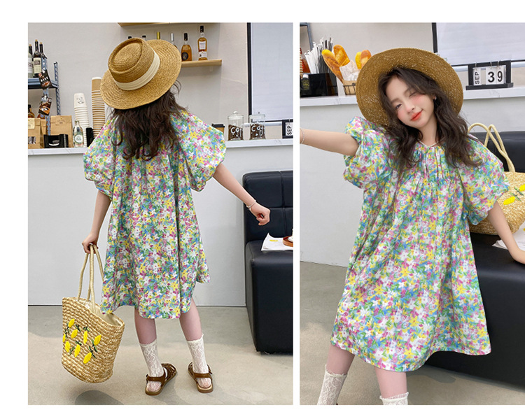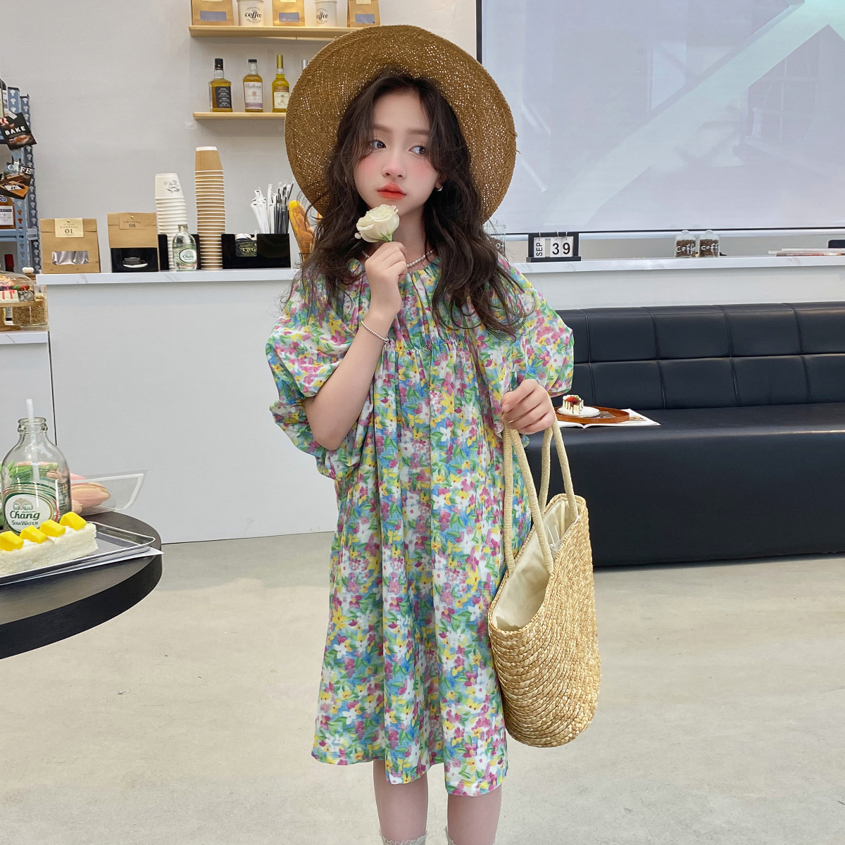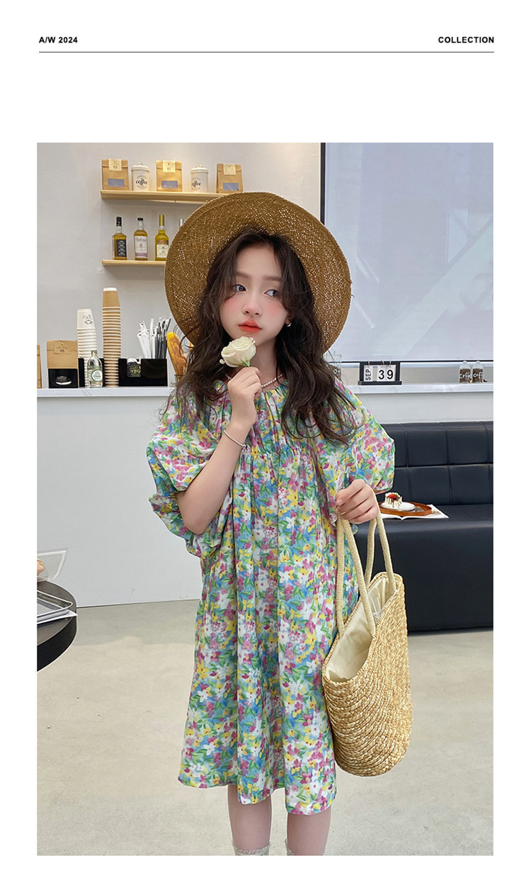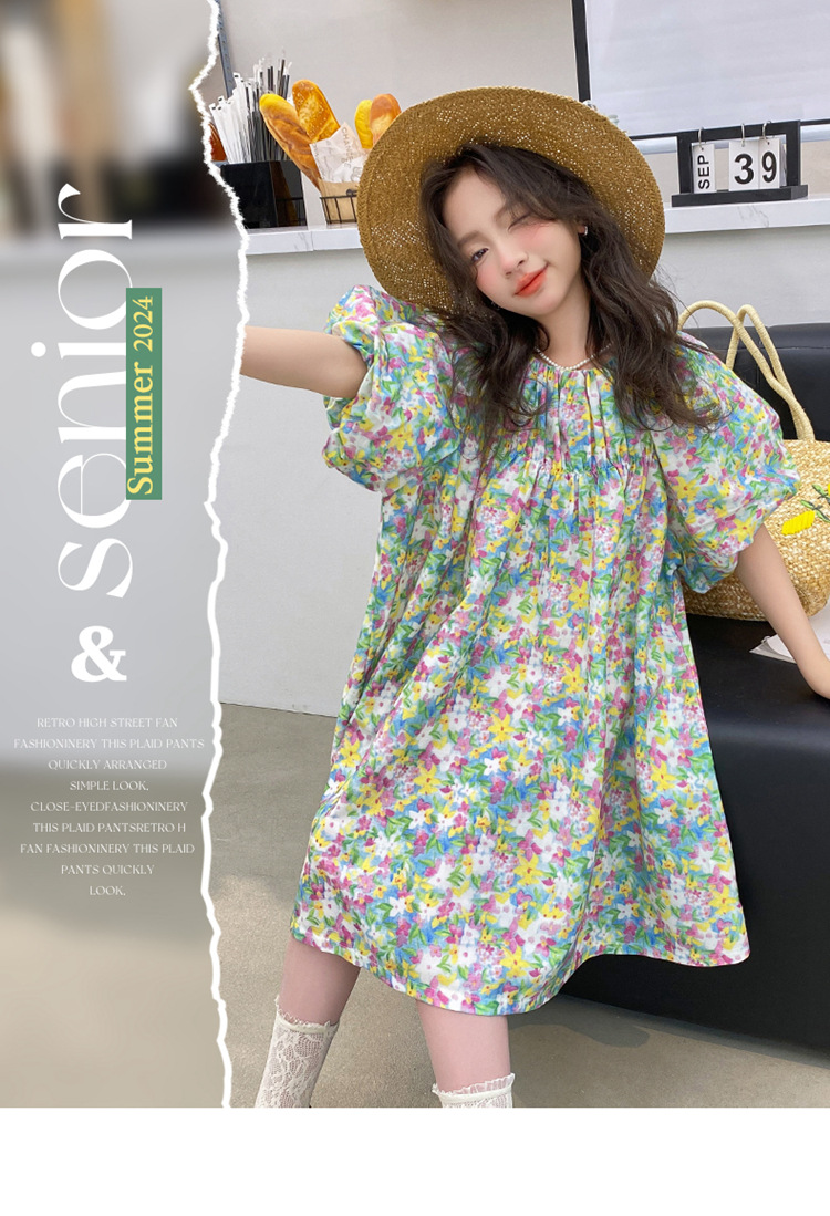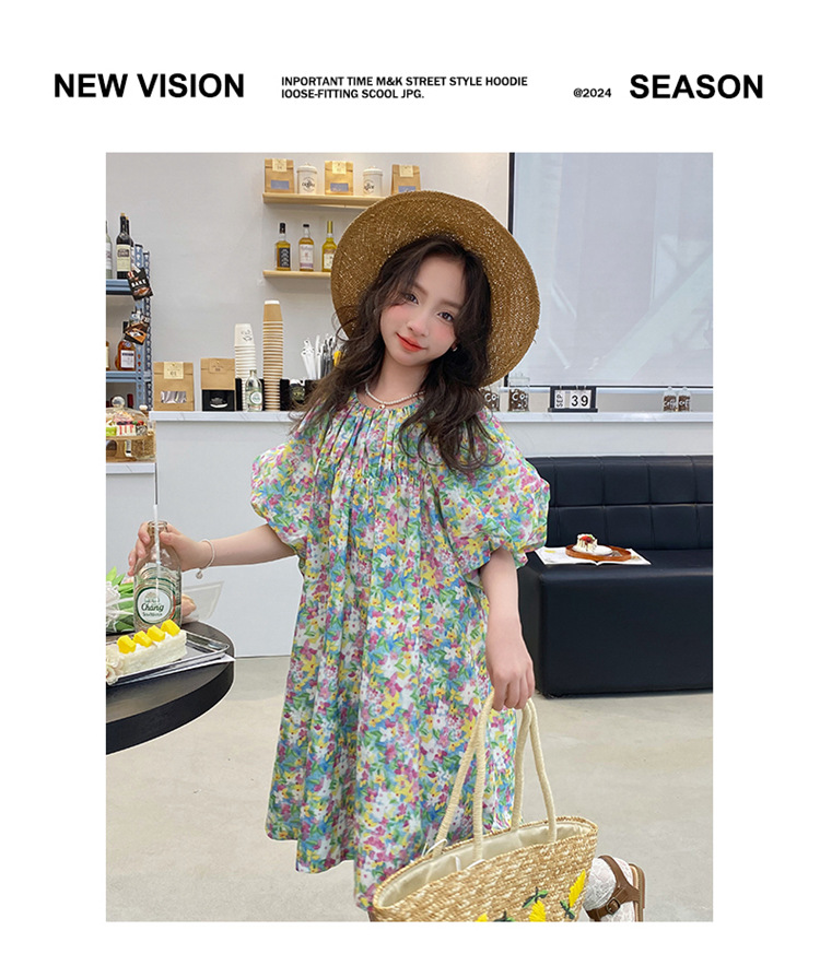 소녀 여름 원피스 2024 새로운 서양식 어린이 달콤한 퍼프 소매 공주 원피스 세련된 귀여운 꽃 원피스스토어 가기