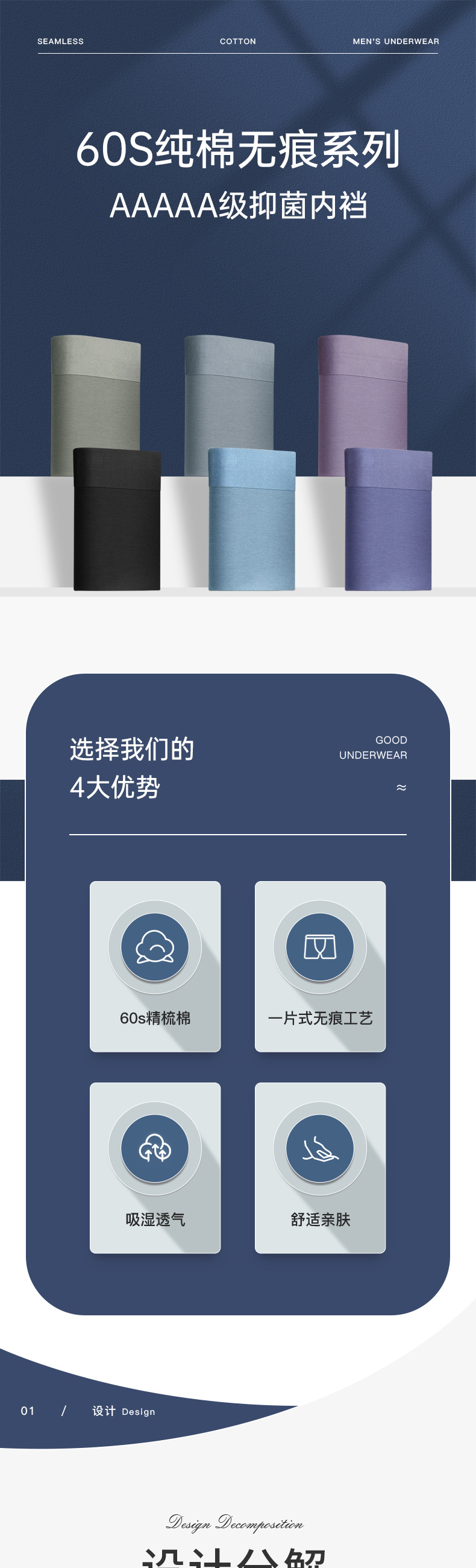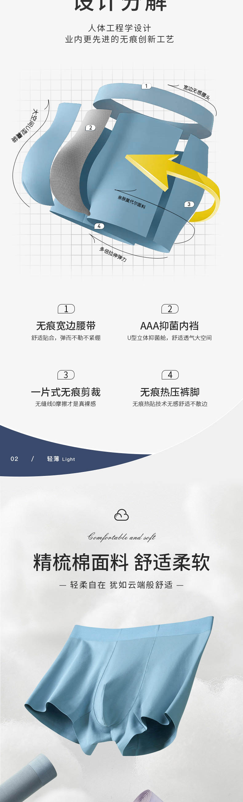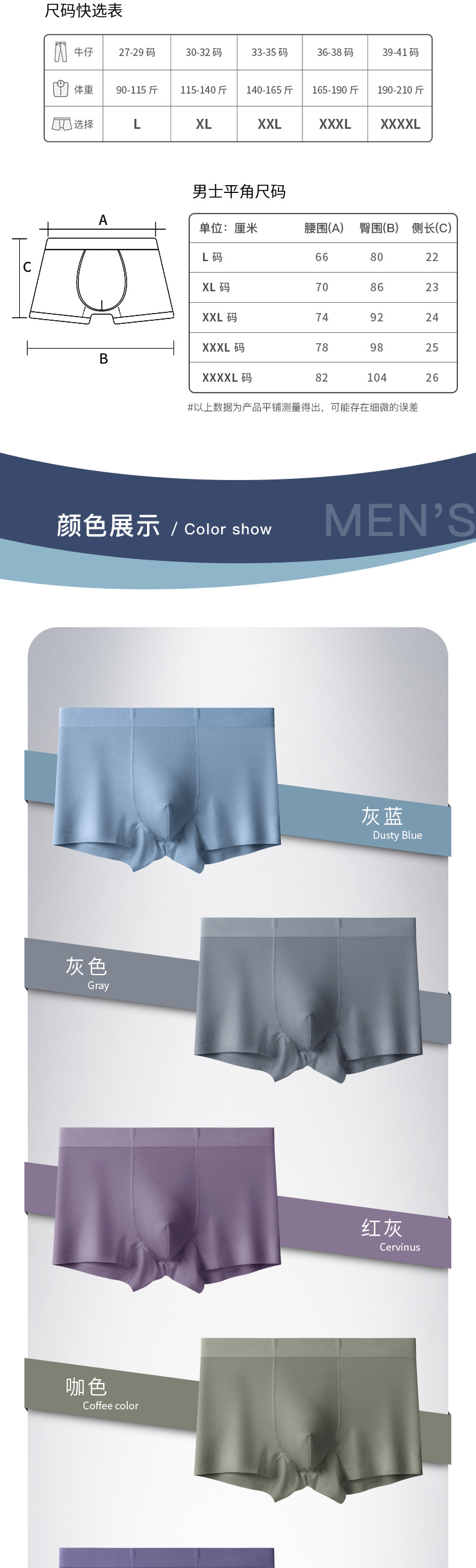새로운 60 빗질 면화 남성 원활한 속옷 단색 비즈니스 통기성 항균 파일 신장 면화 남성 복서