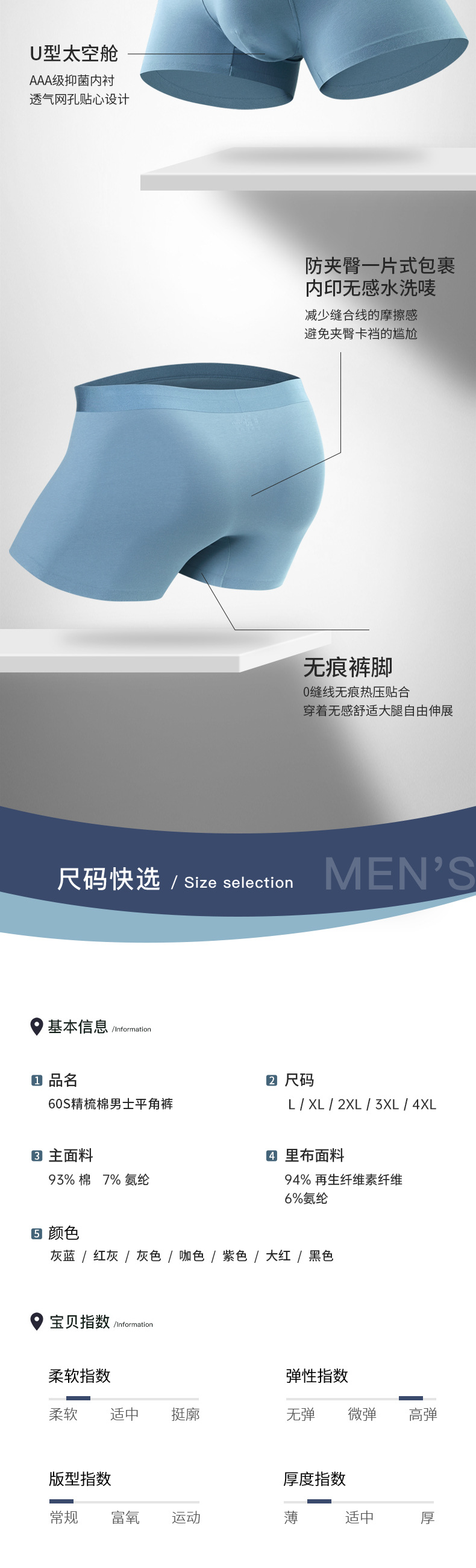 새로운 60 빗질 면화 남성 원활한 속옷 단색 비즈니스 통기성 항균 파일 신장 면화 남성 복서스토어 가기