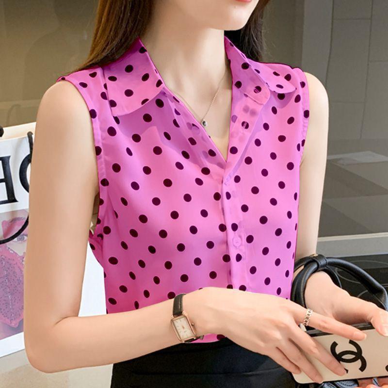 여성용 외부 셔츠 민소매 쉬폰 밑바닥 셔츠 내부 느슨한 탑 여성 2020 서양식 여름 웨이스트 코트 조끼스토어 가기