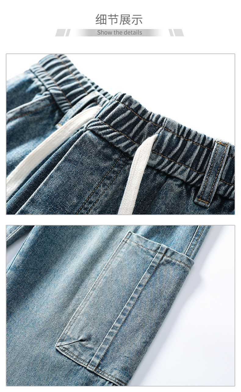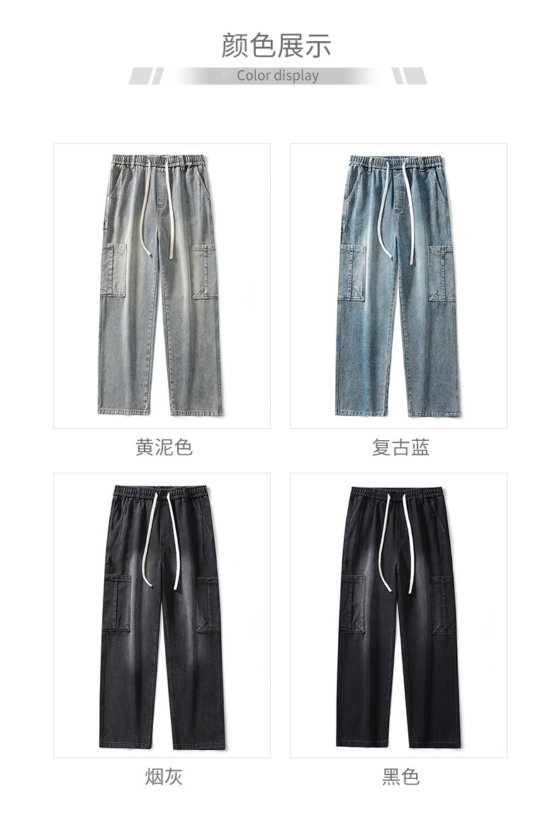 레트로 작업복 청바지 남성용 느슨한 스트레이트 바지 여름 2024 새로운 패션 브랜드 drawstring 남성용 와이드 레그 바지스토어 가기