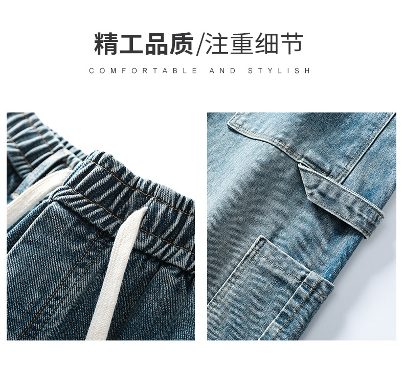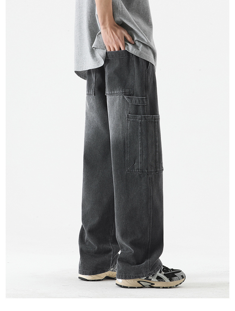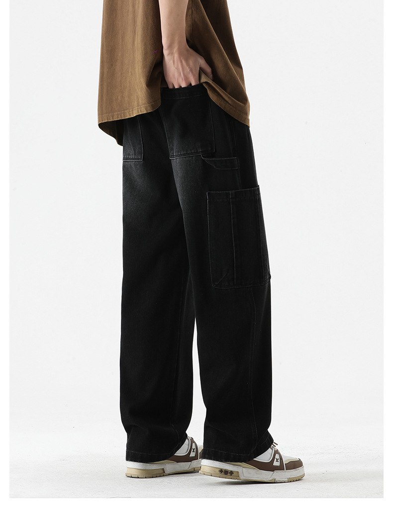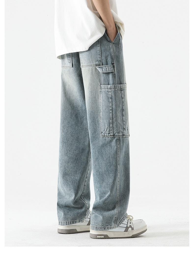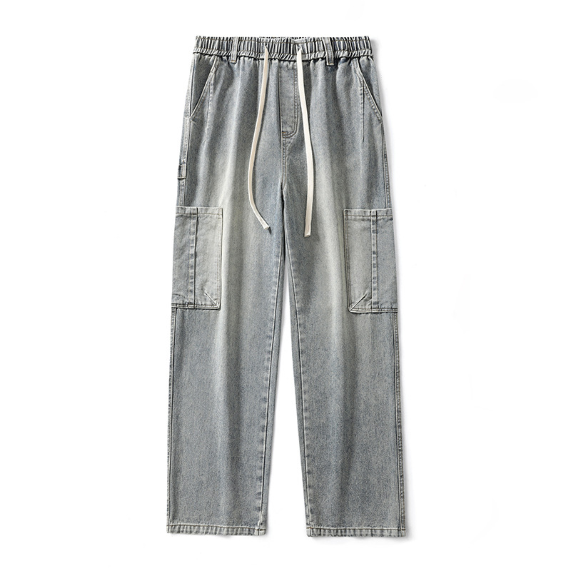 레트로 작업복 청바지 남성용 느슨한 스트레이트 바지 여름 2024 새로운 패션 브랜드 drawstring 남성용 와이드 레그 바지