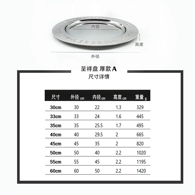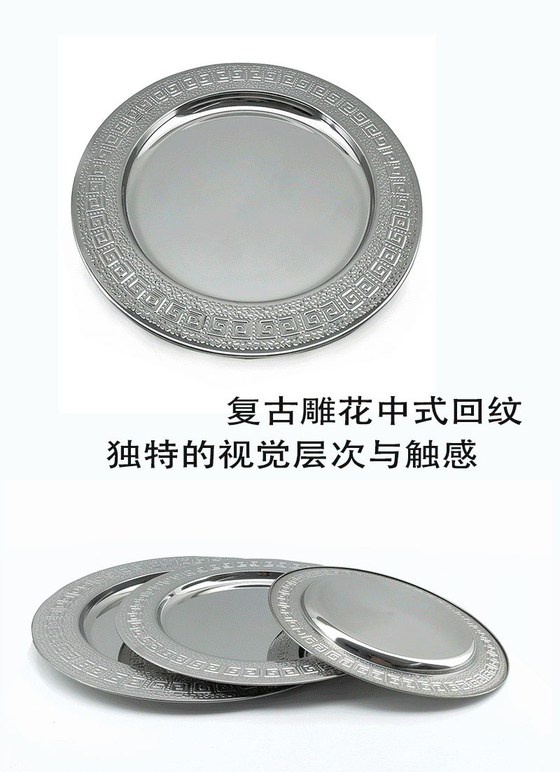 새로운 스테인레스 스틸 디스크 트레이 서양 식품 플레이트 스테이크 대형 플랫 플레이트 수출 공급 5060 대형스토어 가기