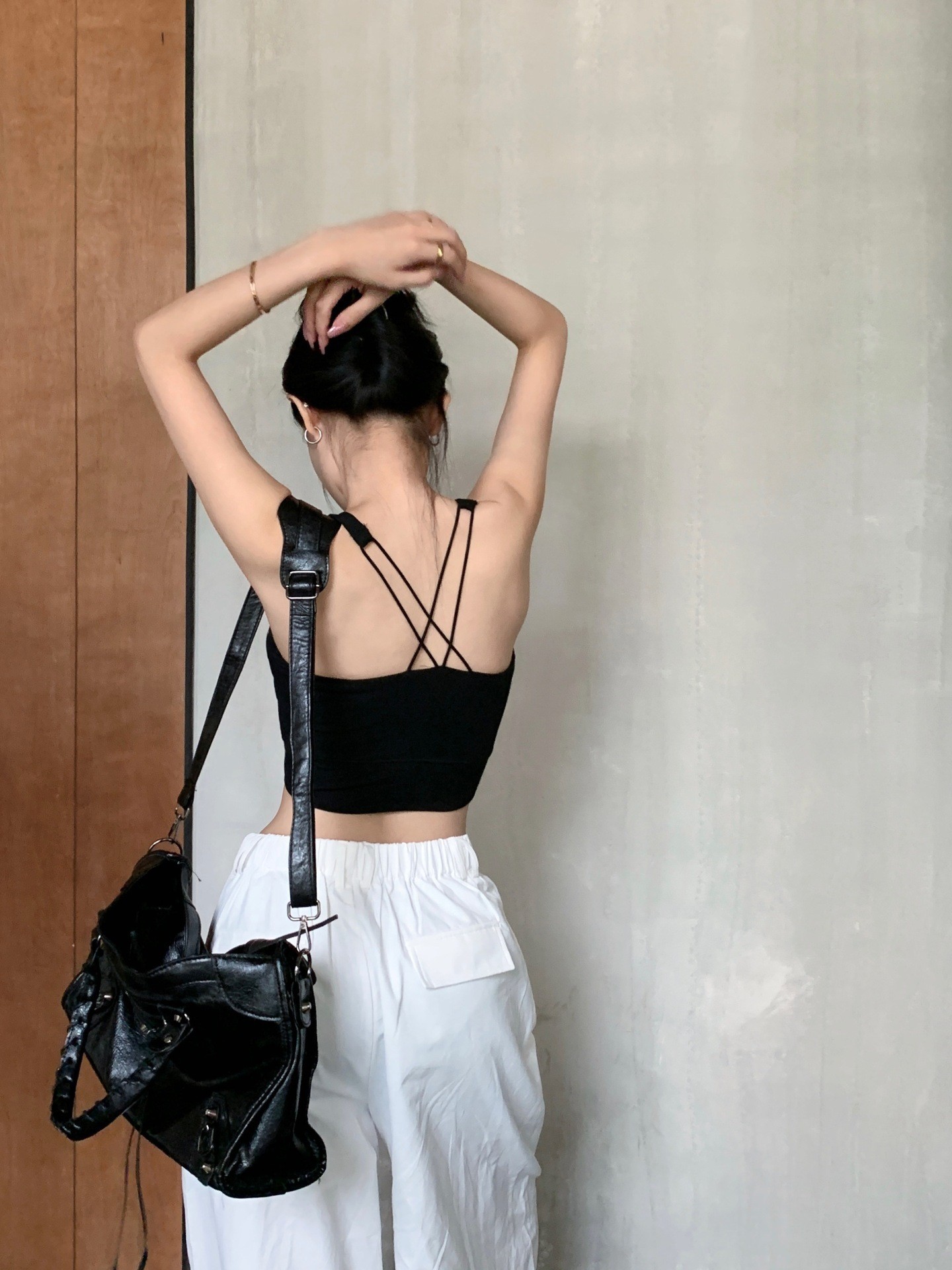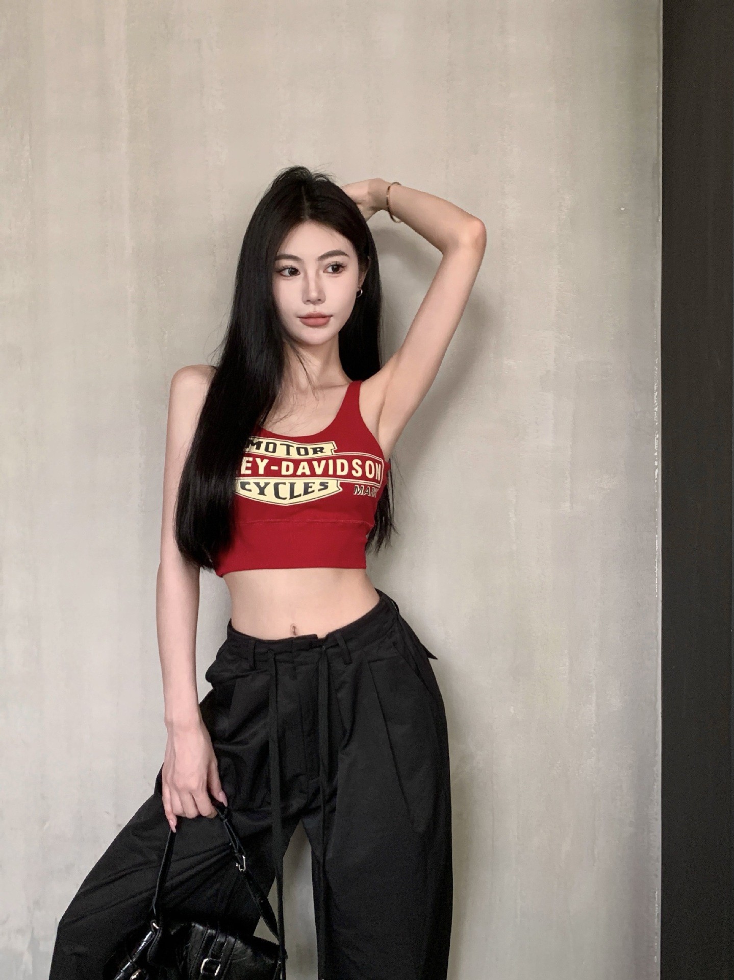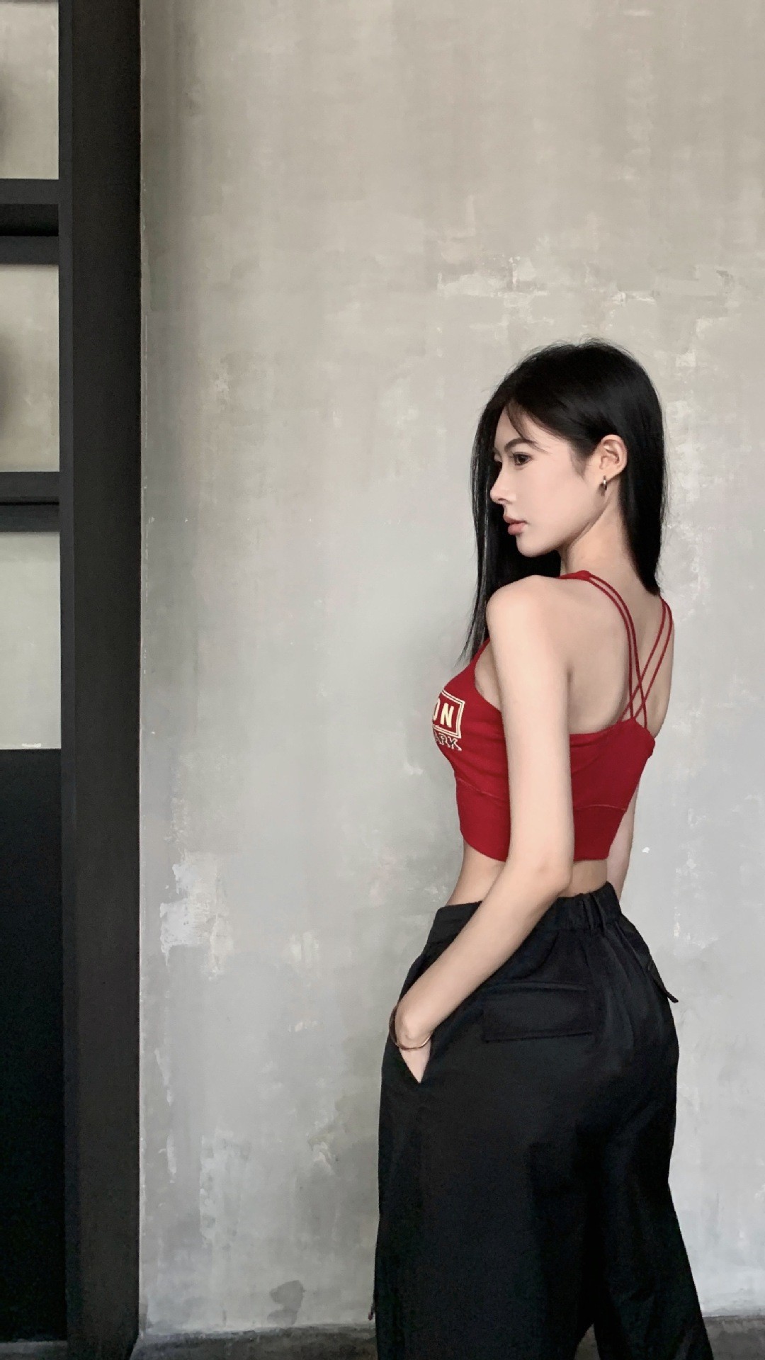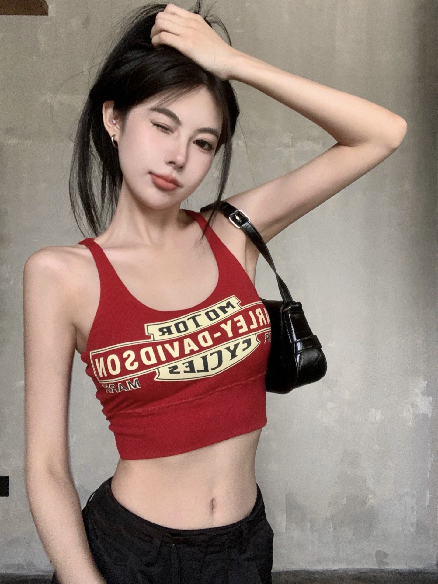 미국 스포츠 레드 캐미솔 여성의 여름 착용 순수한 달콤한 뜨거운 소녀 섹시한 백리스 짧은 튜브 탑스토어 가기