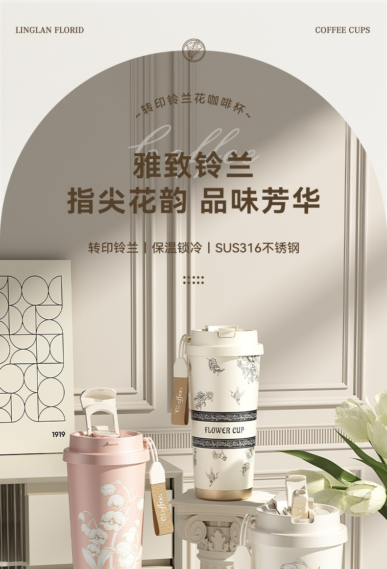 Linglan 2024 새로운 진공 컵 316 스테인레스 스틸 커피 컵 더블 마시는 컵 소녀의 높은 밀짚 컵
