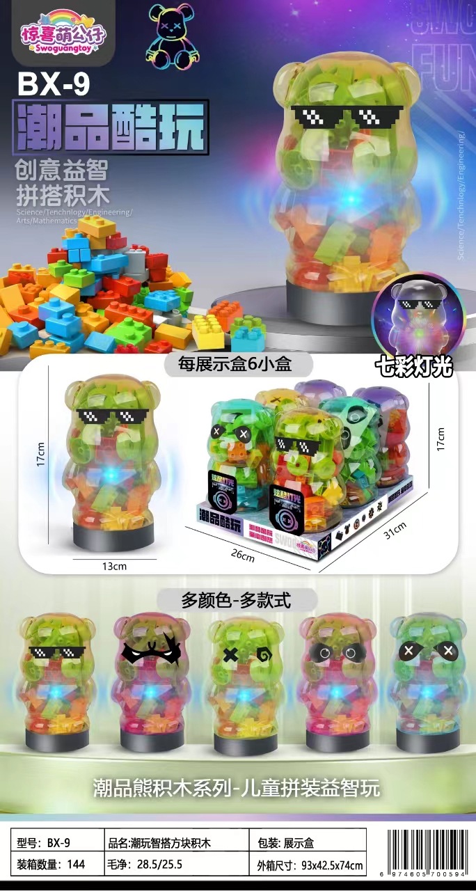 어린이 교육 패션 놀이 창조적 인 조립 블록 빌딩 블록 점프 개구리 공룡 흔들 빛 저장 인형 장난감스토어 가기