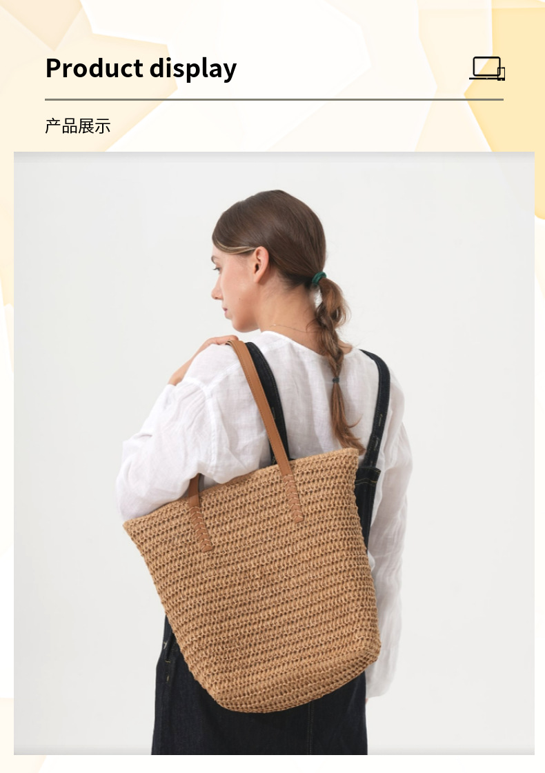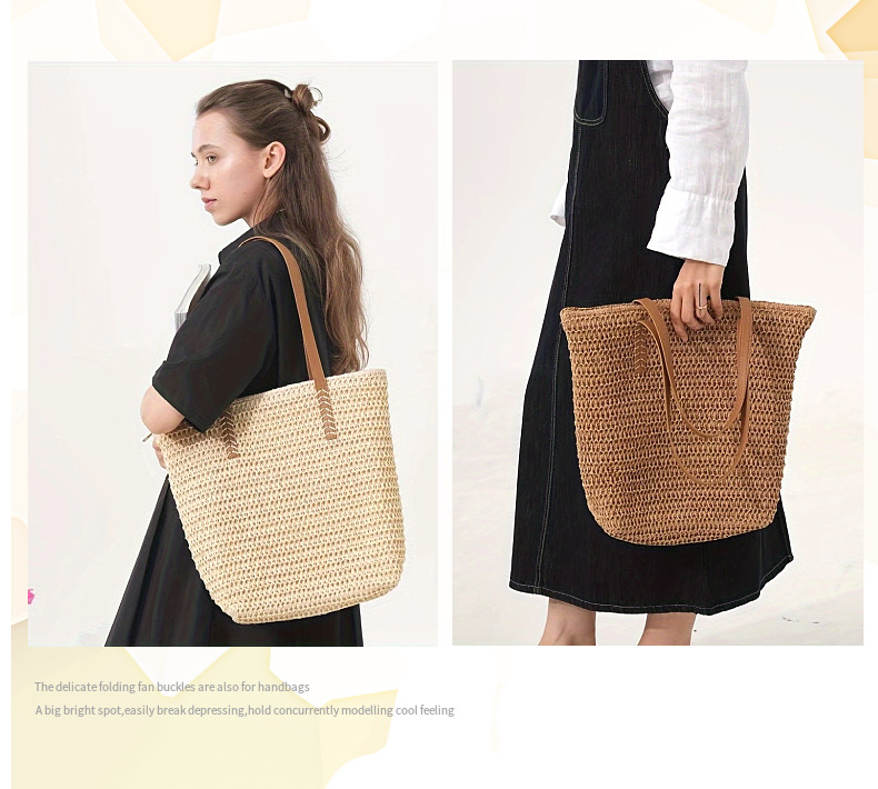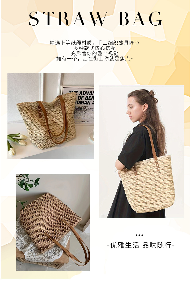 심플한 숄더 밀짚 가방, 새로운 스타일의 여성용 짠 가방, 대용량 토트 백, 다용도 밀짚 가방, 휴가 스타일 비치 백스토어 가기