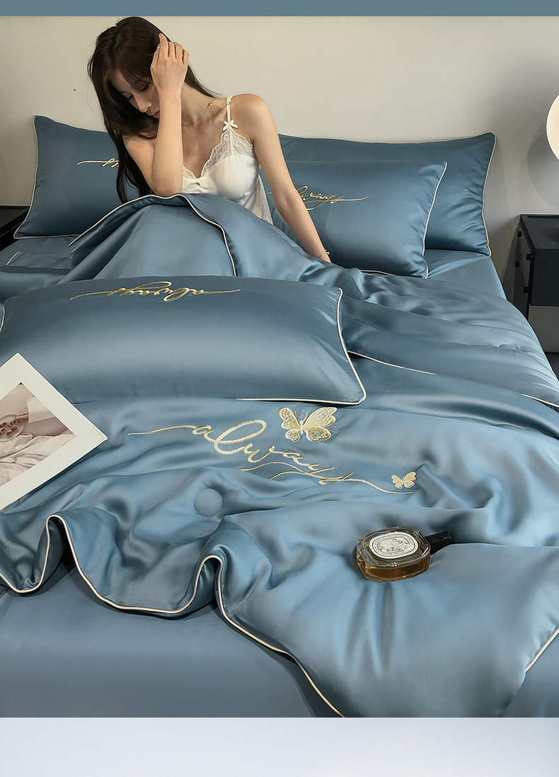 아이스 실크 여름 이불 에어컨 퀼트 여름 시원한 이불 시트 3-4 조각 세트 기계 세탁기 얇은 이불 여름 학생 실크 퀼트 코어스토어 가기