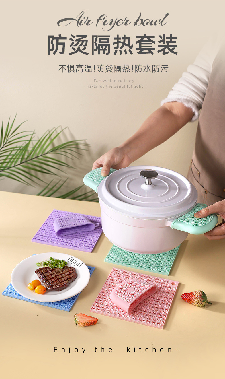 실리콘 단열 매트 장갑 세트 플레이스 매트 안티-scald 냄비 매트 보울 매트 컵 매트 가정용 단열 매트 장갑