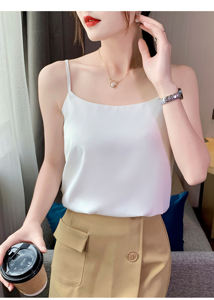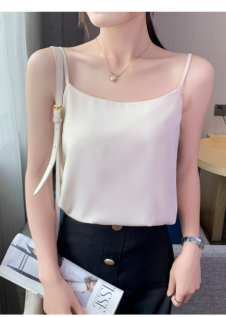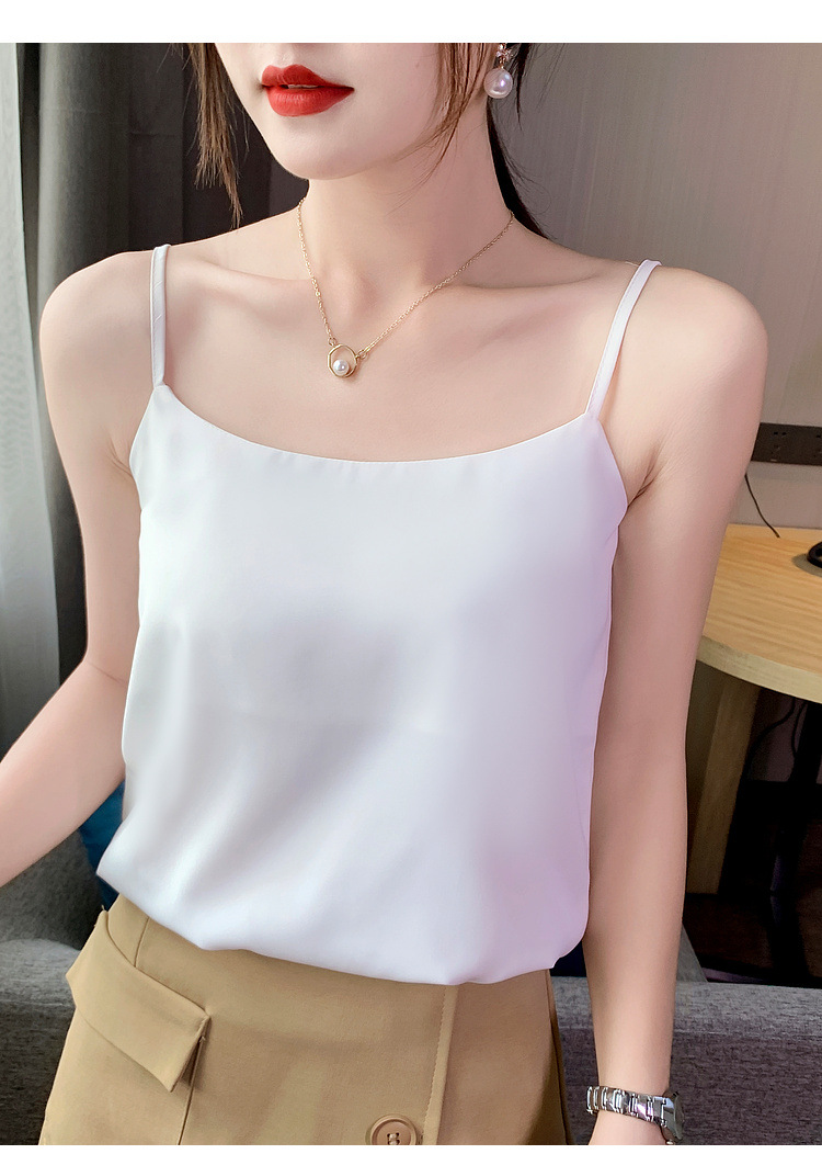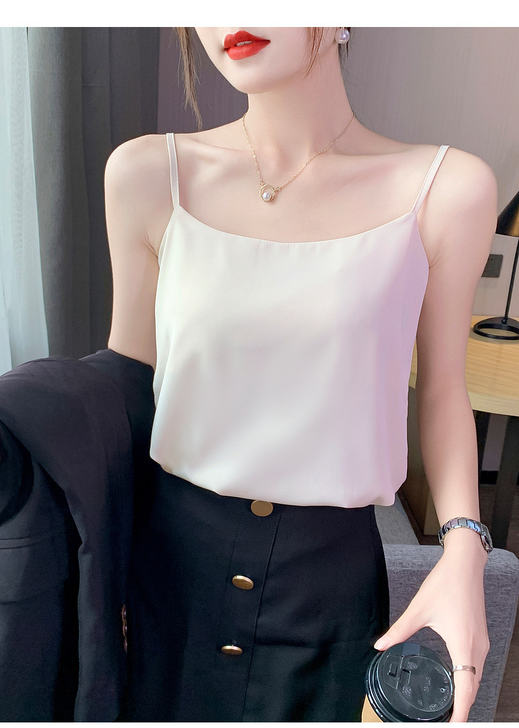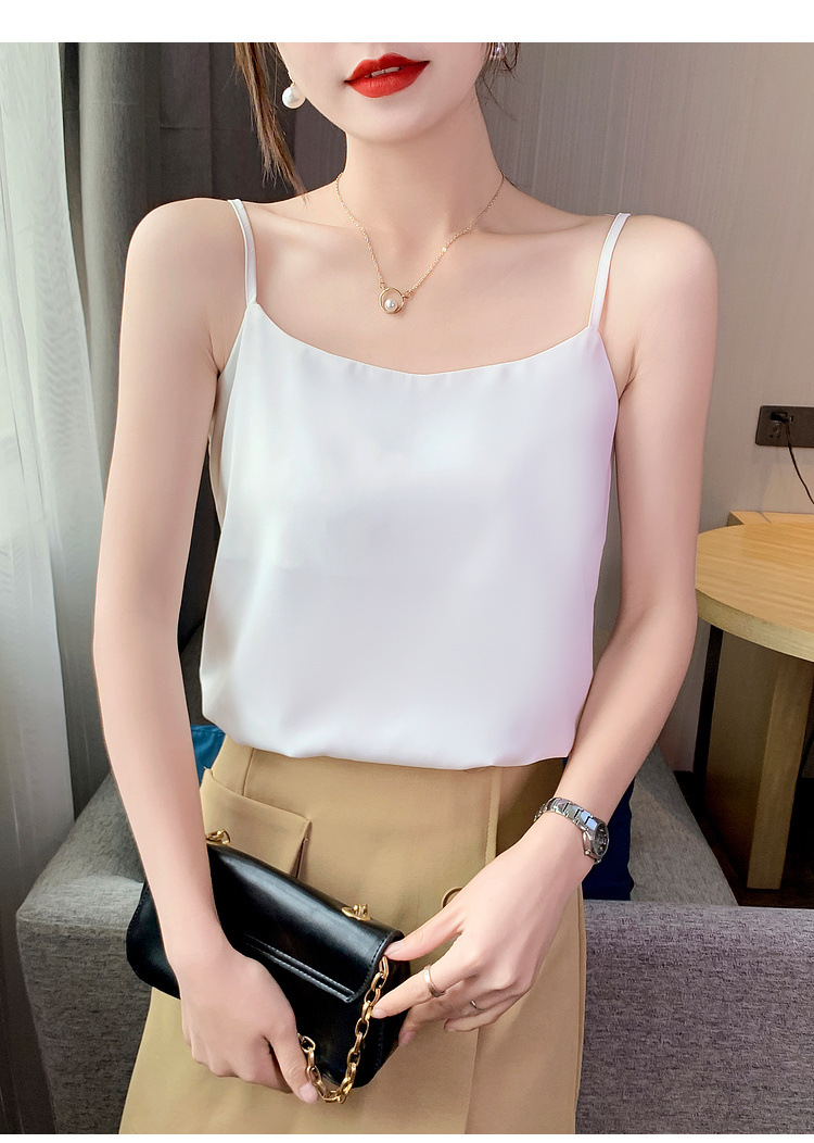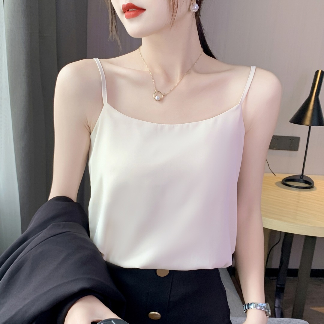 2024 새로운 흰색 캐미솔 여성 디자인 슬리밍 다재다능한 쉬폰 겉옷 밑바닥 셔츠 뷰티 백 내복 여름스토어 가기