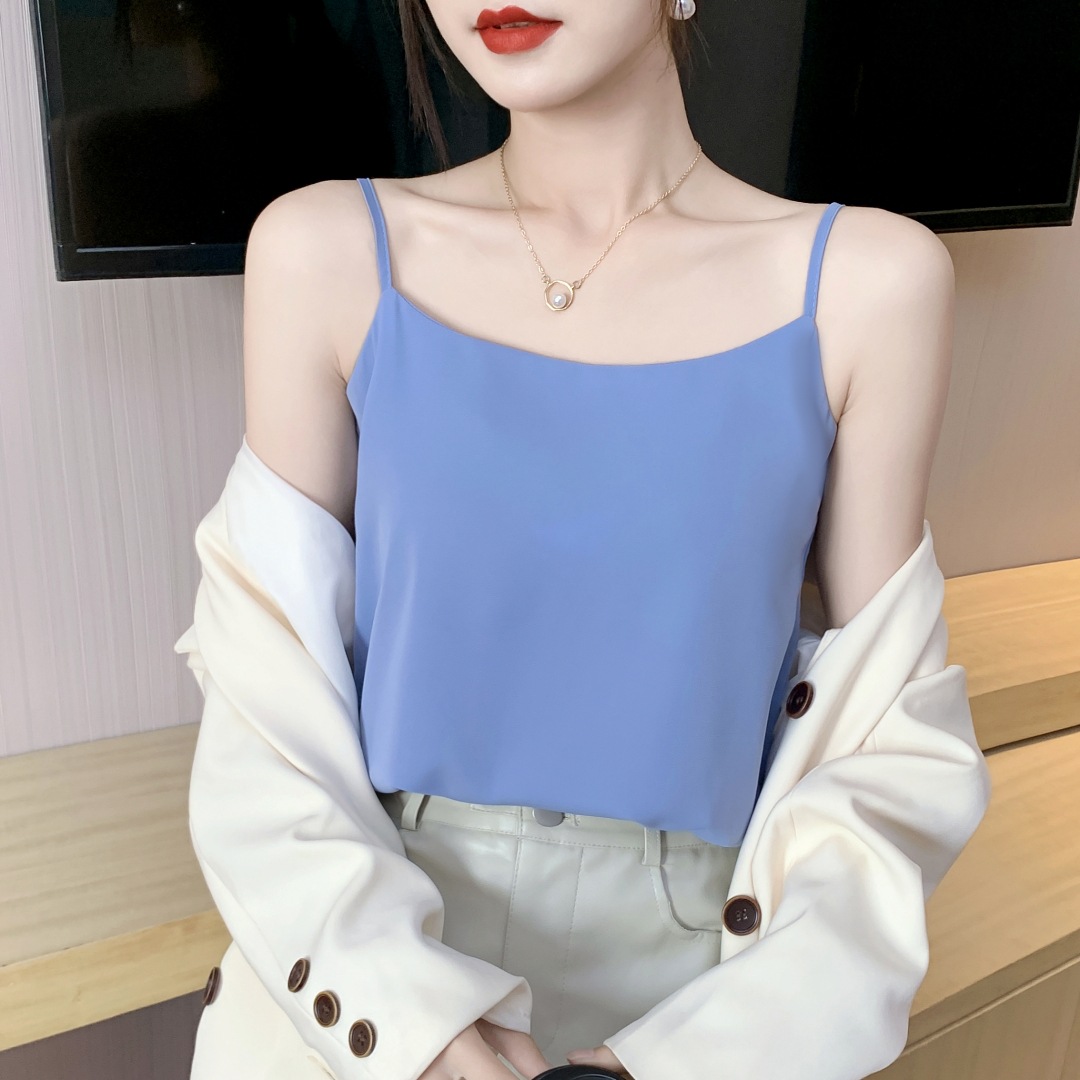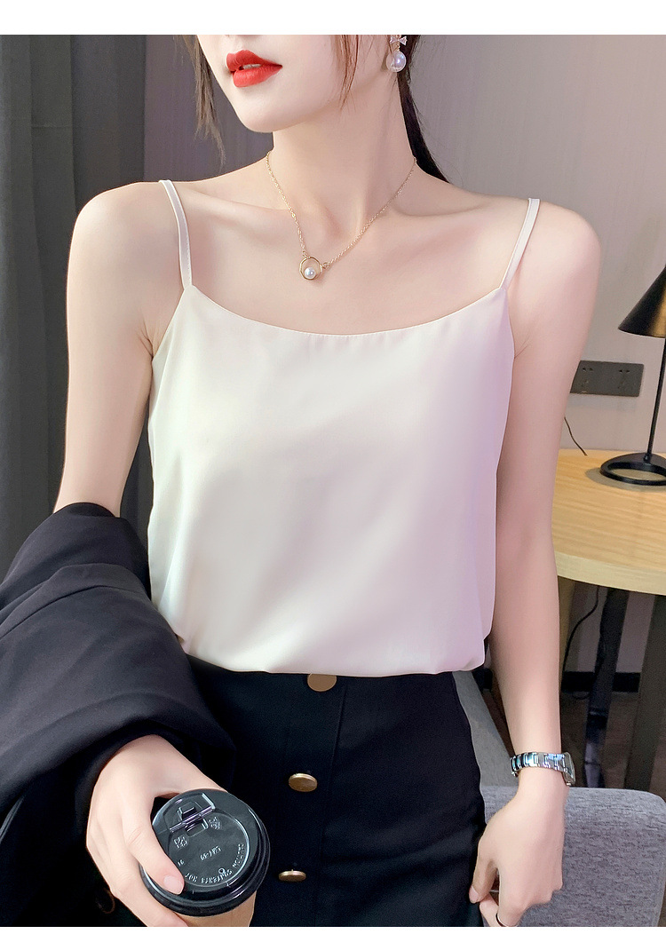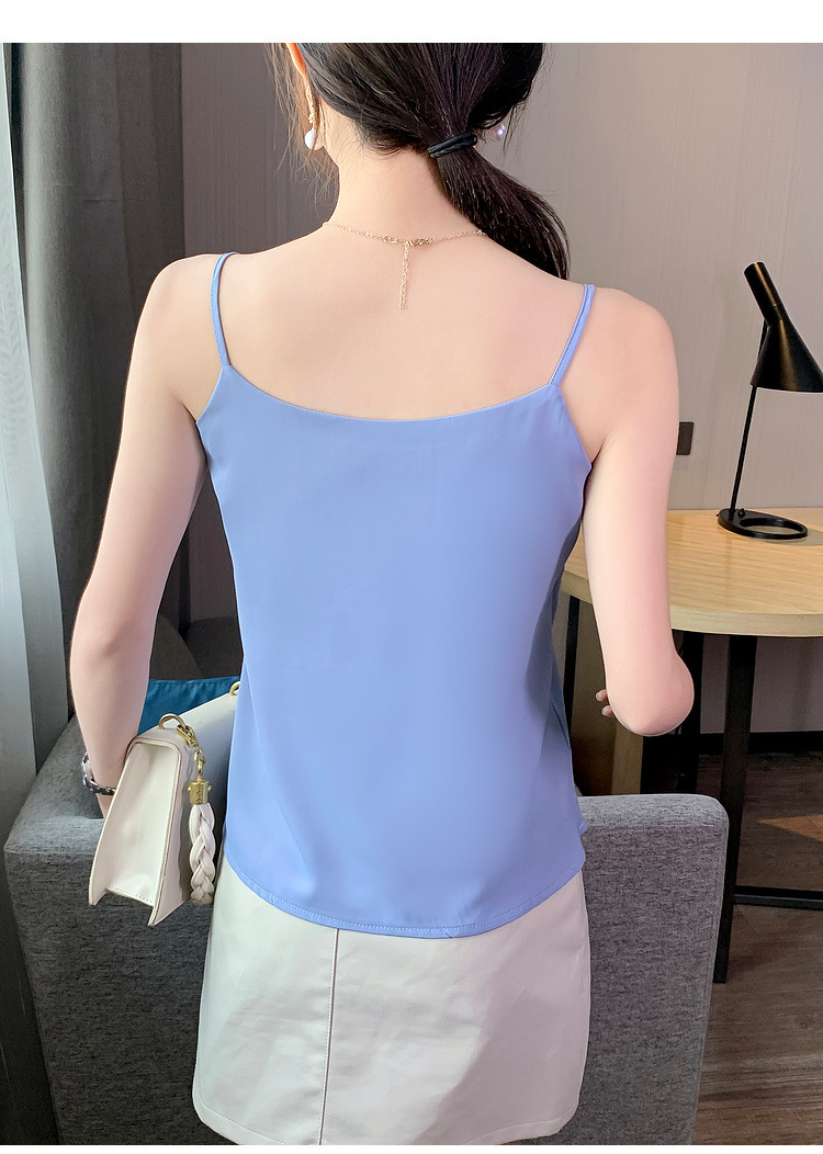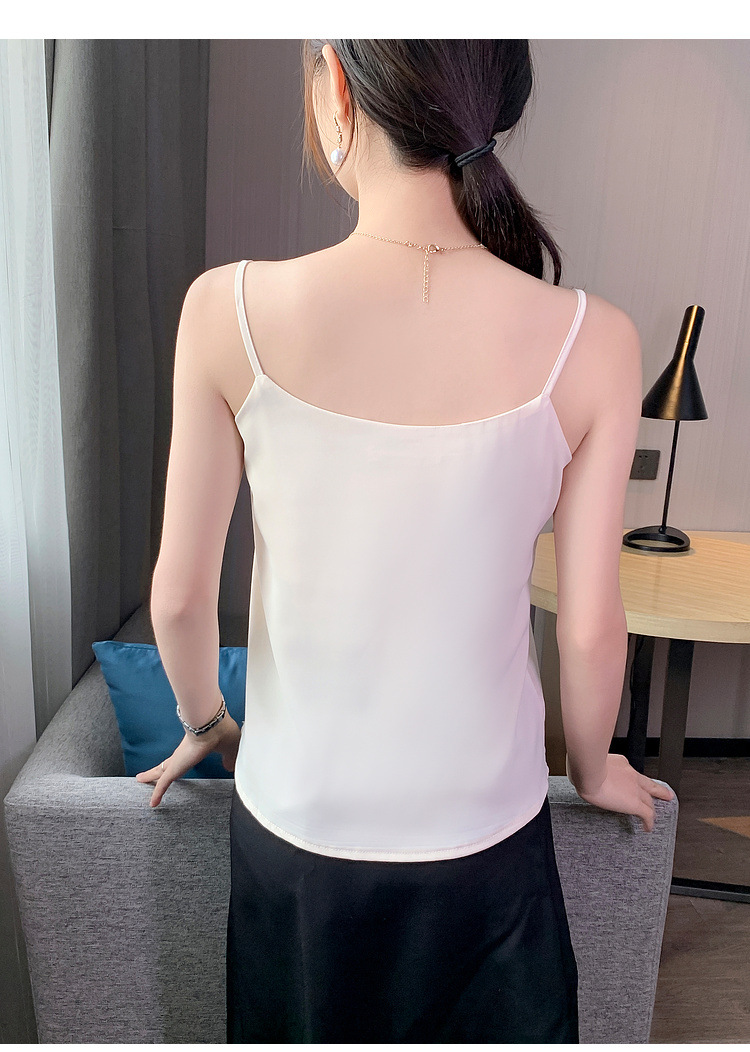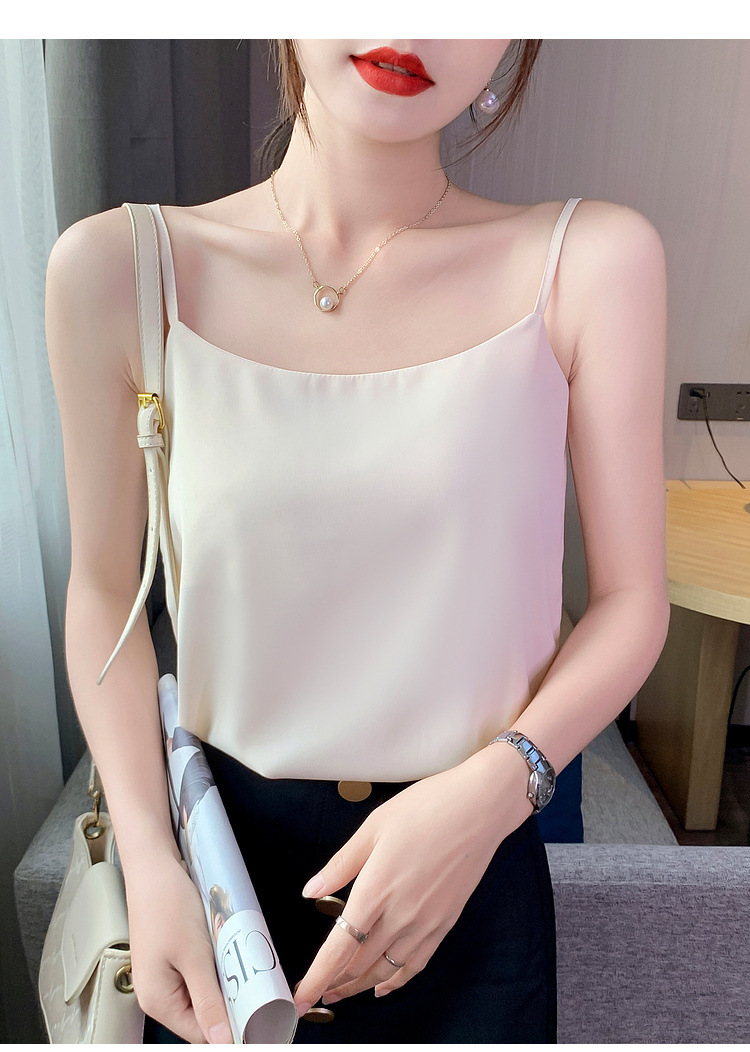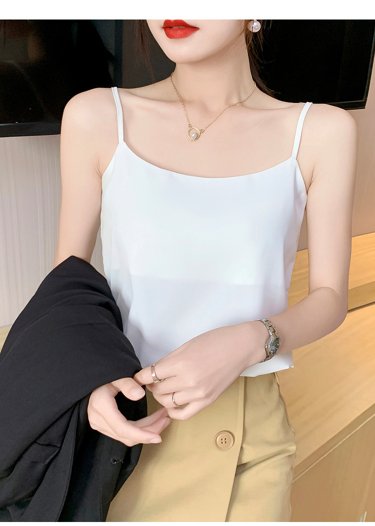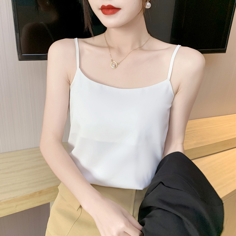 2024 새로운 흰색 캐미솔 여성 디자인 슬리밍 다재다능한 쉬폰 겉옷 밑바닥 셔츠 뷰티 백 내복 여름스토어 가기