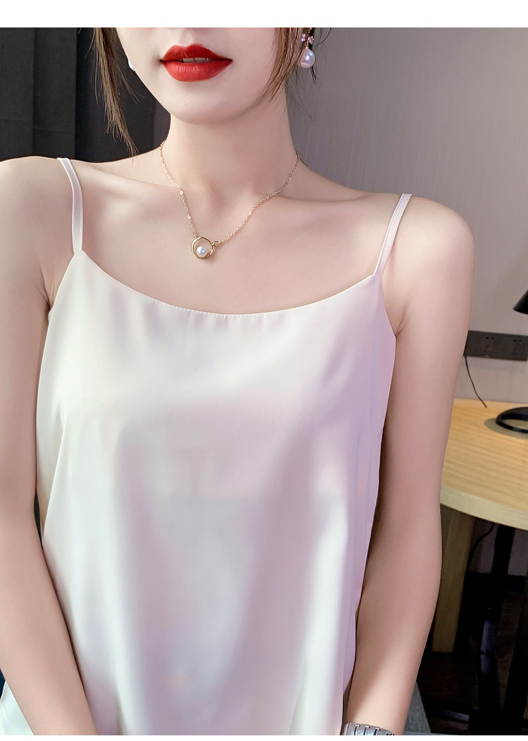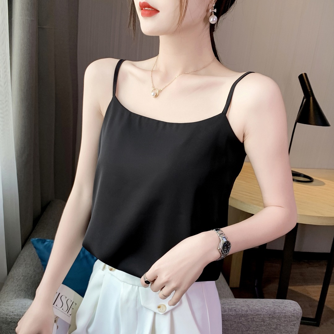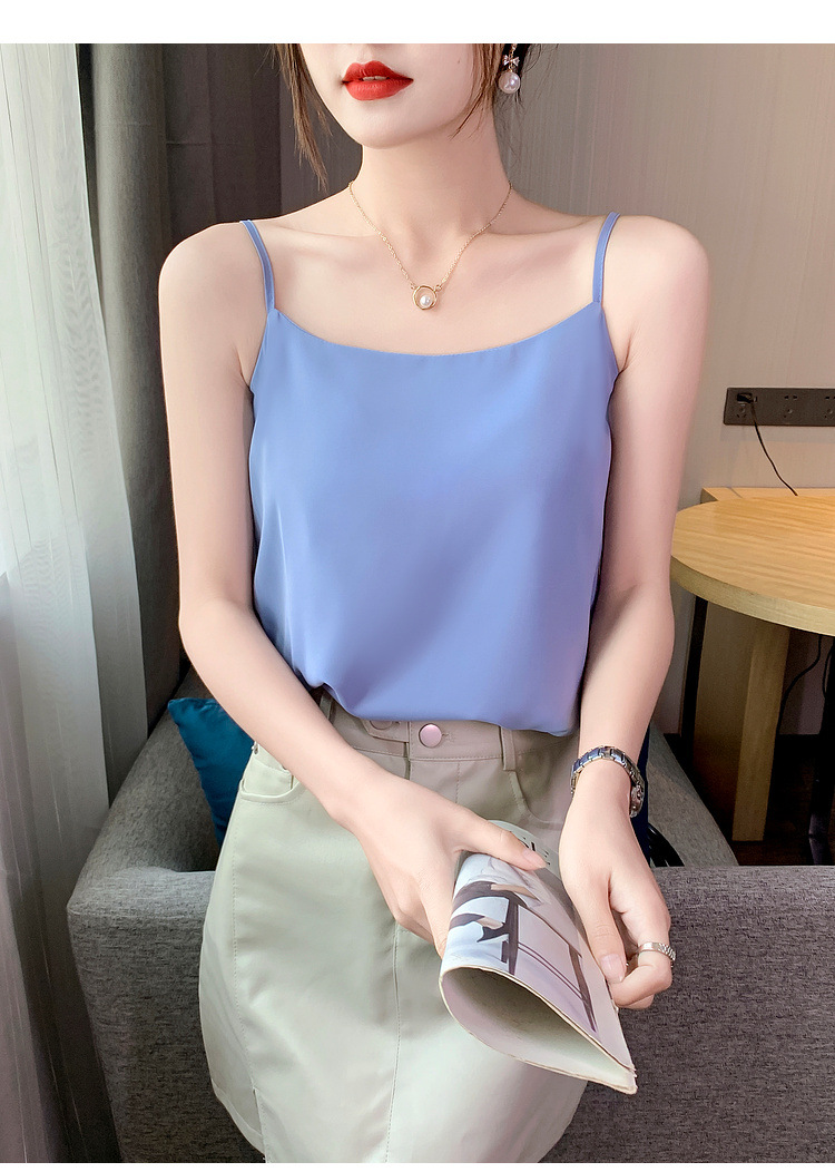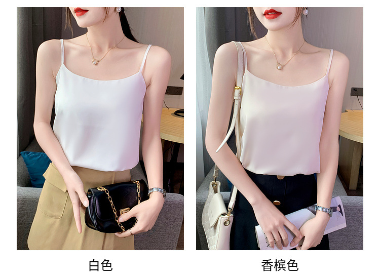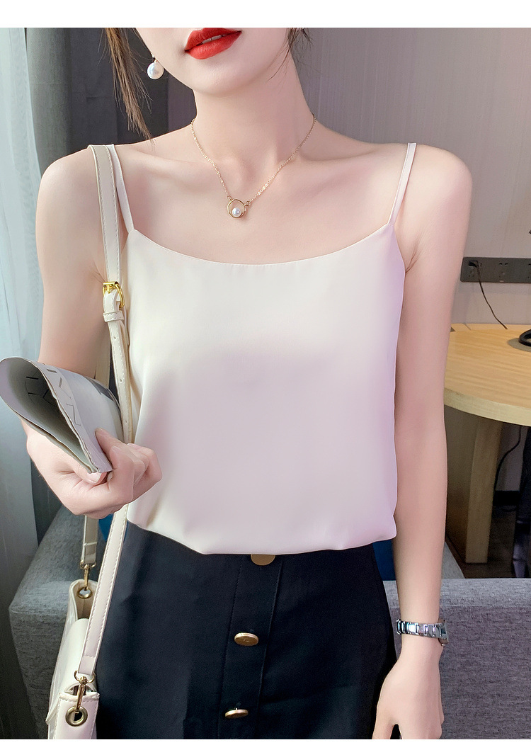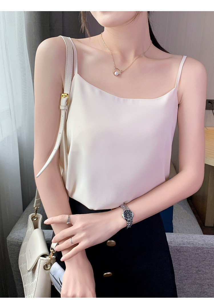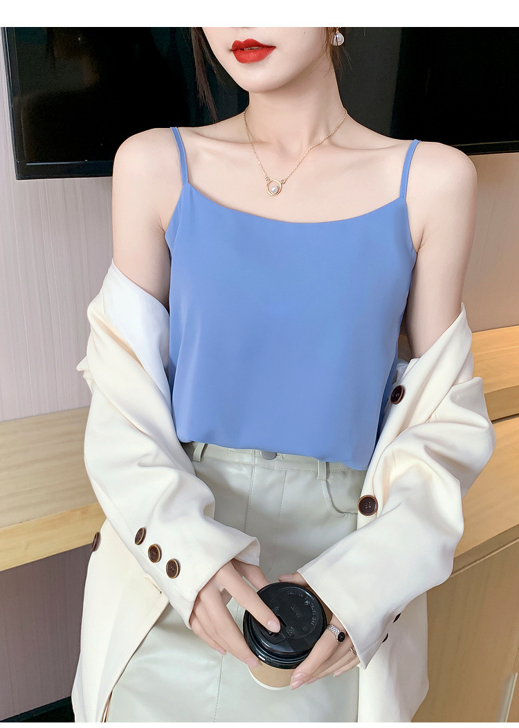 2024 새로운 흰색 캐미솔 여성 디자인 슬리밍 다재다능한 쉬폰 겉옷 밑바닥 셔츠 뷰티 백 내복 여름스토어 가기
