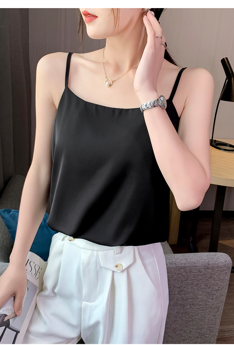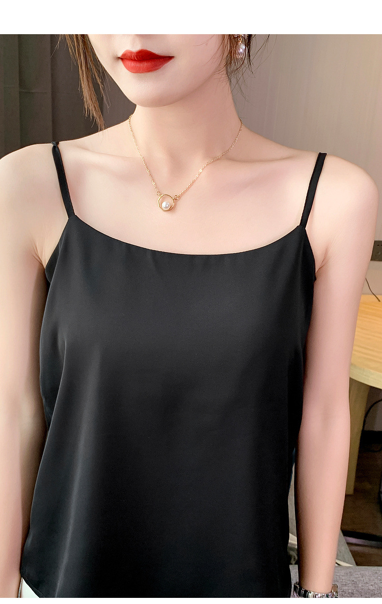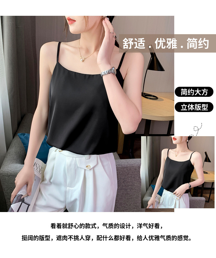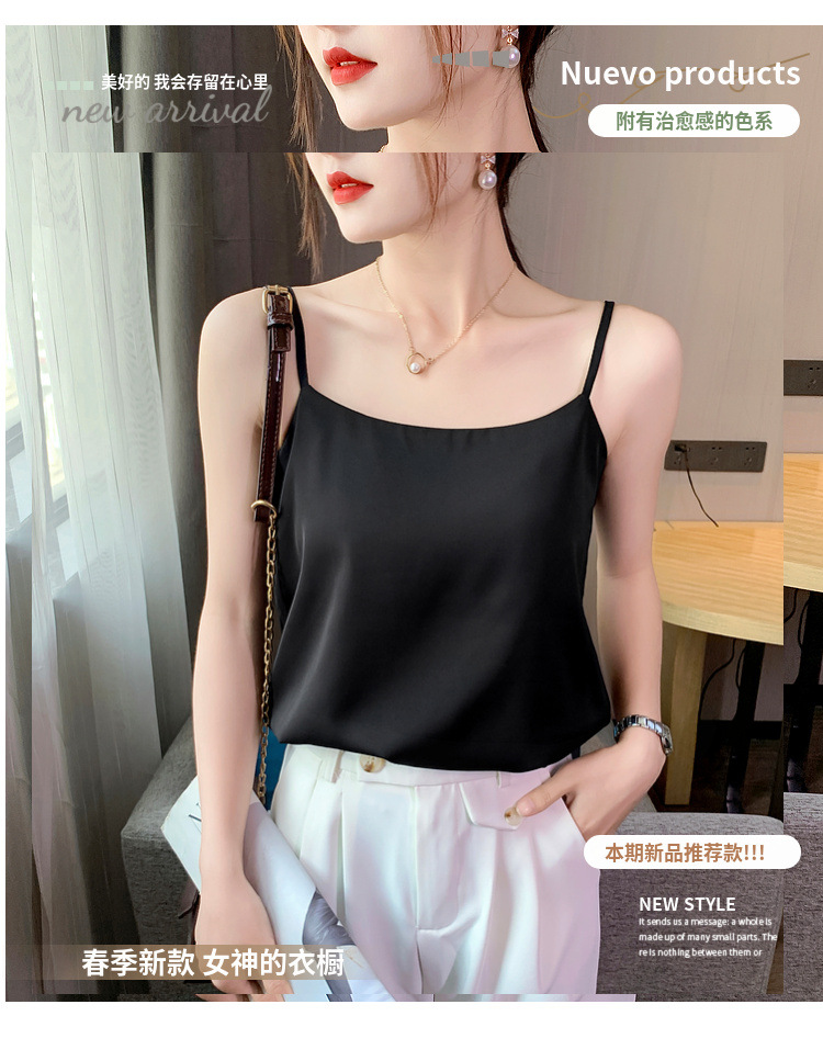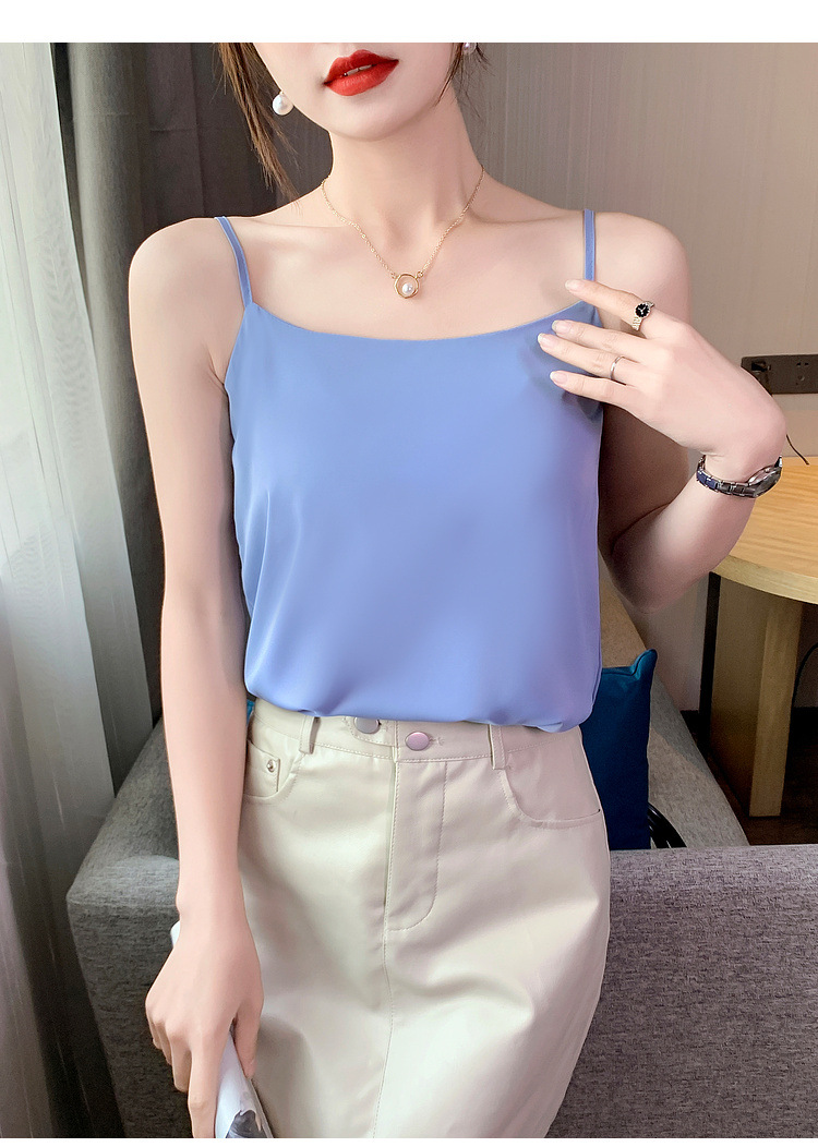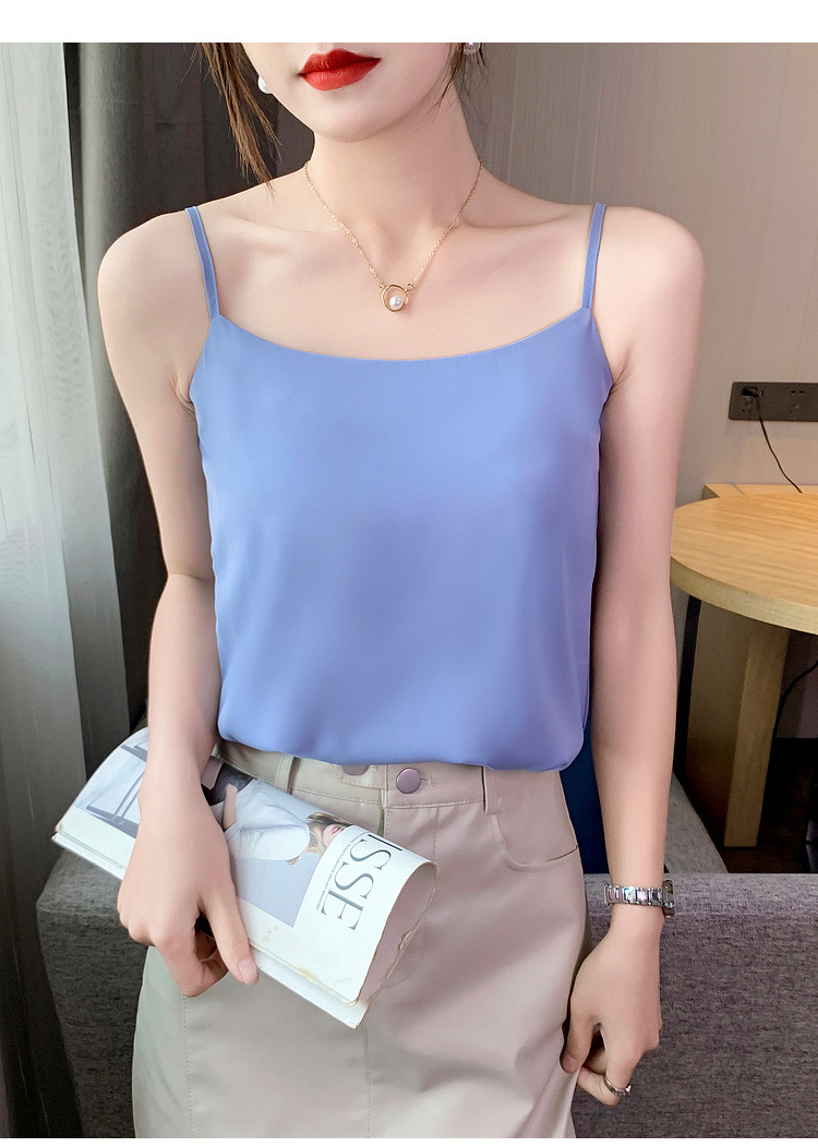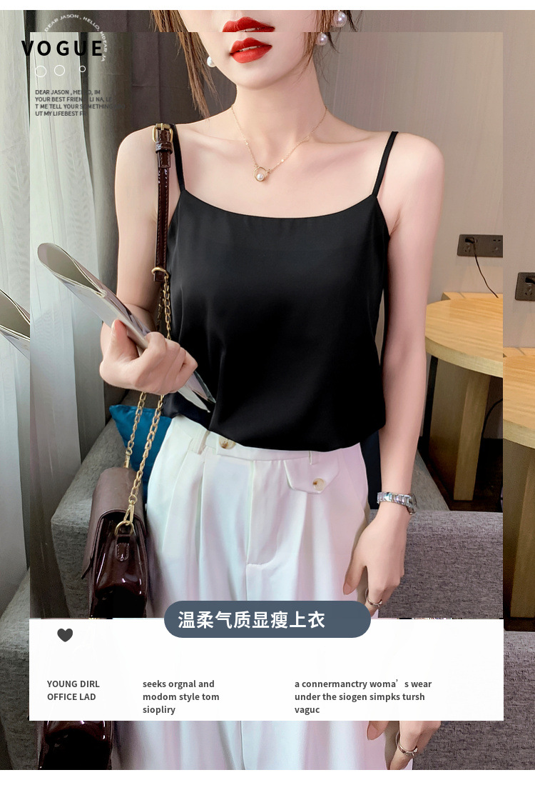 2024 새로운 흰색 캐미솔 여성 디자인 슬리밍 다재다능한 쉬폰 겉옷 밑바닥 셔츠 뷰티 백 내복 여름스토어 가기