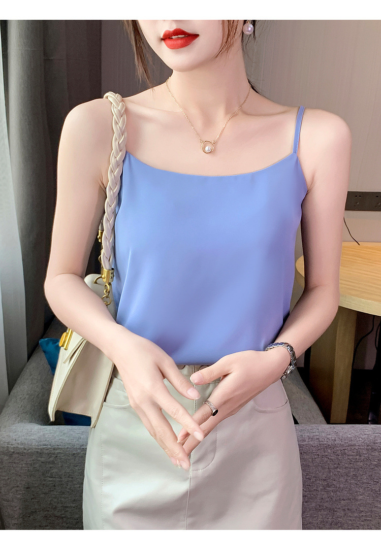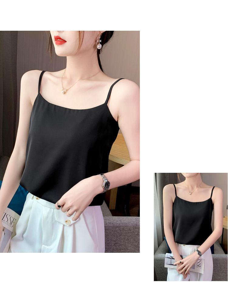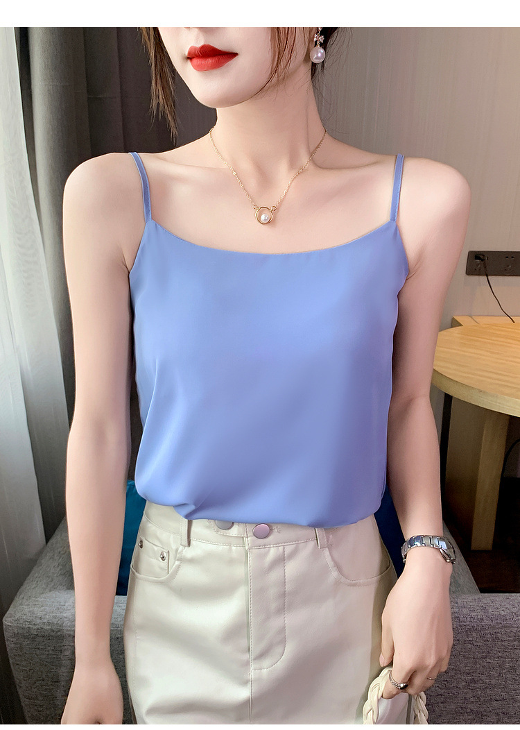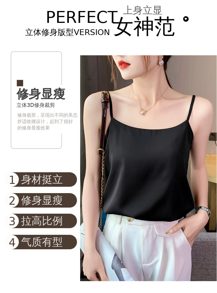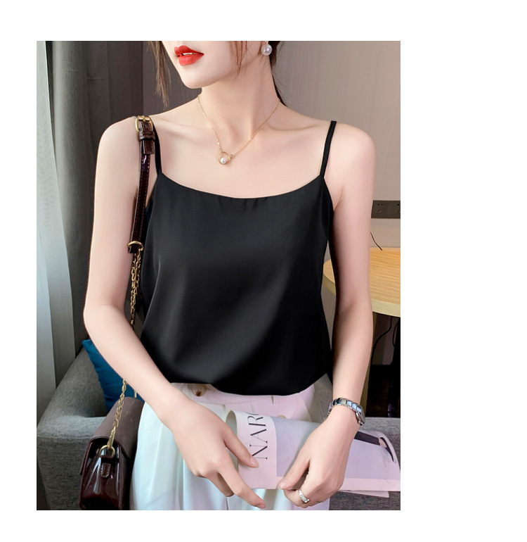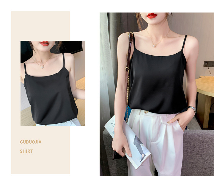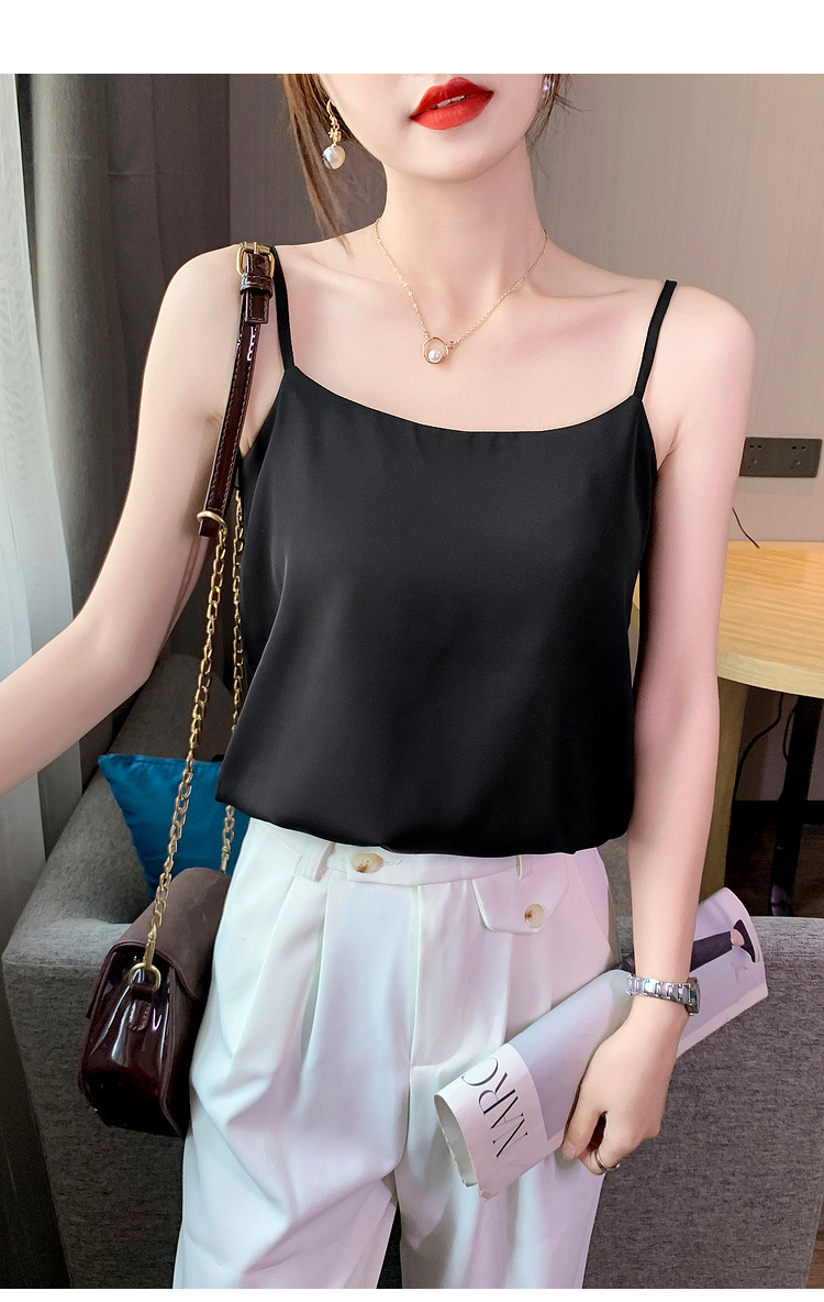 2024 새로운 흰색 캐미솔 여성 디자인 슬리밍 다재다능한 쉬폰 겉옷 밑바닥 셔츠 뷰티 백 내복 여름스토어 가기