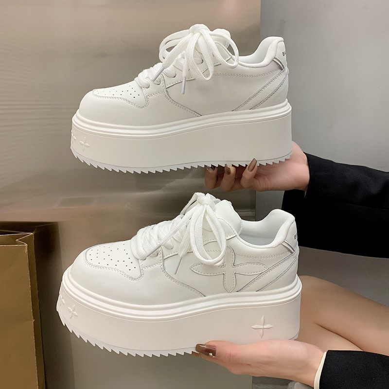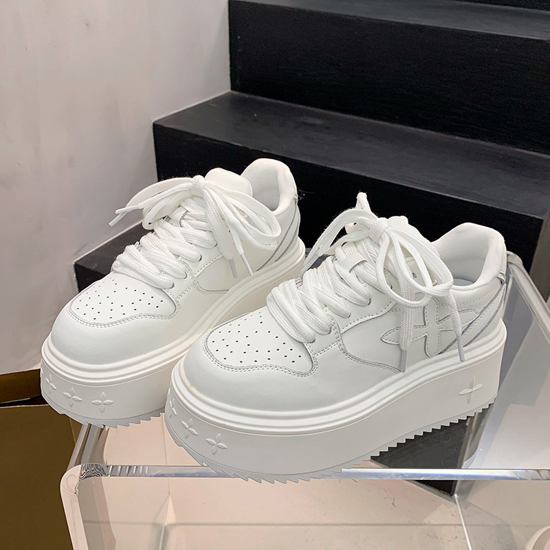 여성의 두꺼운 밑창 흰색 신발 2024 봄 새로운 올 매치 크로스 플라워 캐주얼 플랫폼 신발 스포츠 높이 증가 운동화 도매스토어 가기