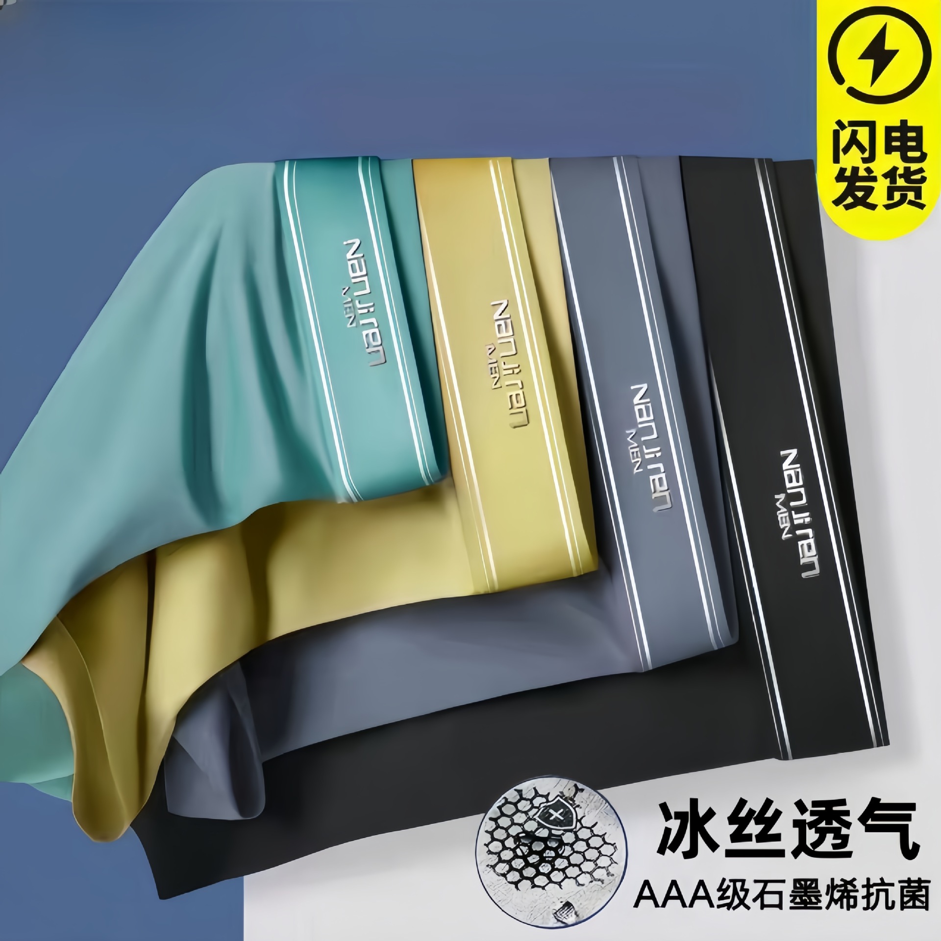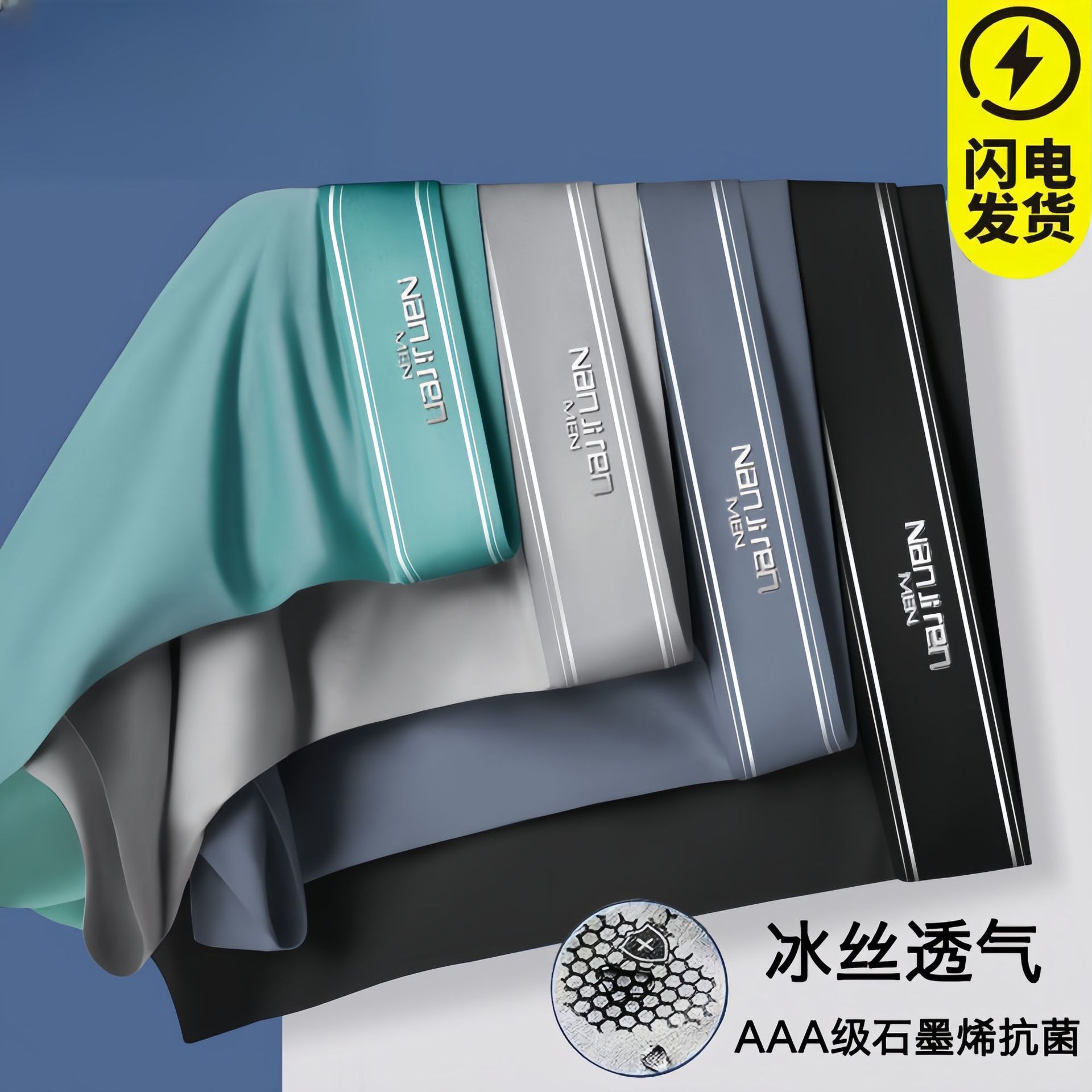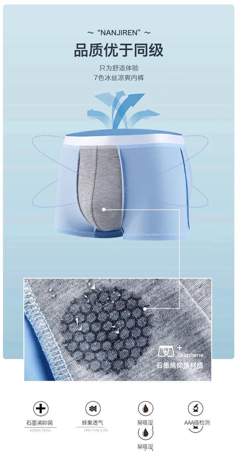 남성용 아이스 실크 원활한 얇은 통기성 그래 핀 항균 상쾌한 여름 트렌디 한 플러스 사이즈 미드 웨이스트 복서스토어 가기
