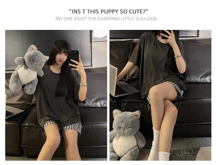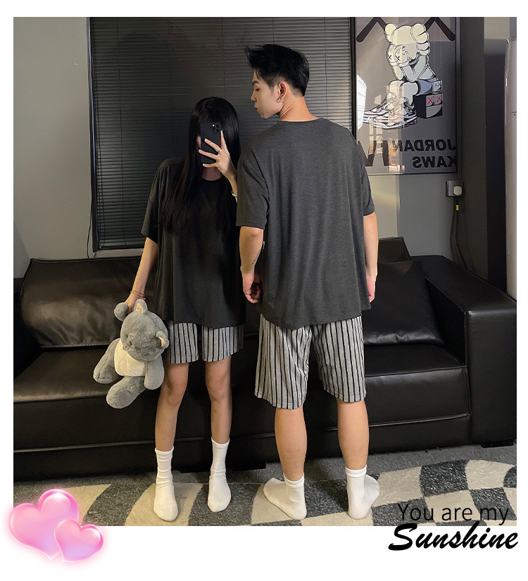 2024 새로운 여름 커플 파자마 모달 짧은 소매 가슴 패드 여성 아이스 실크 멋진 감각 남성 홈웨어 세트스토어 가기