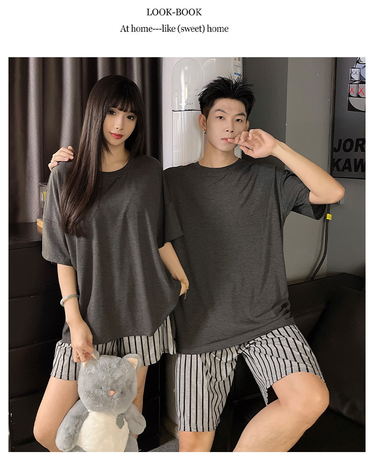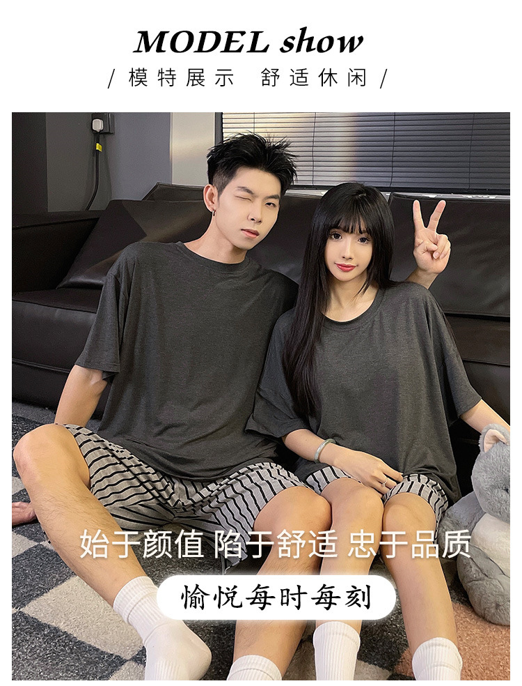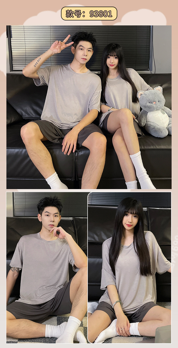 2024 새로운 여름 커플 파자마 모달 짧은 소매 가슴 패드 여성 아이스 실크 멋진 감각 남성 홈웨어 세트