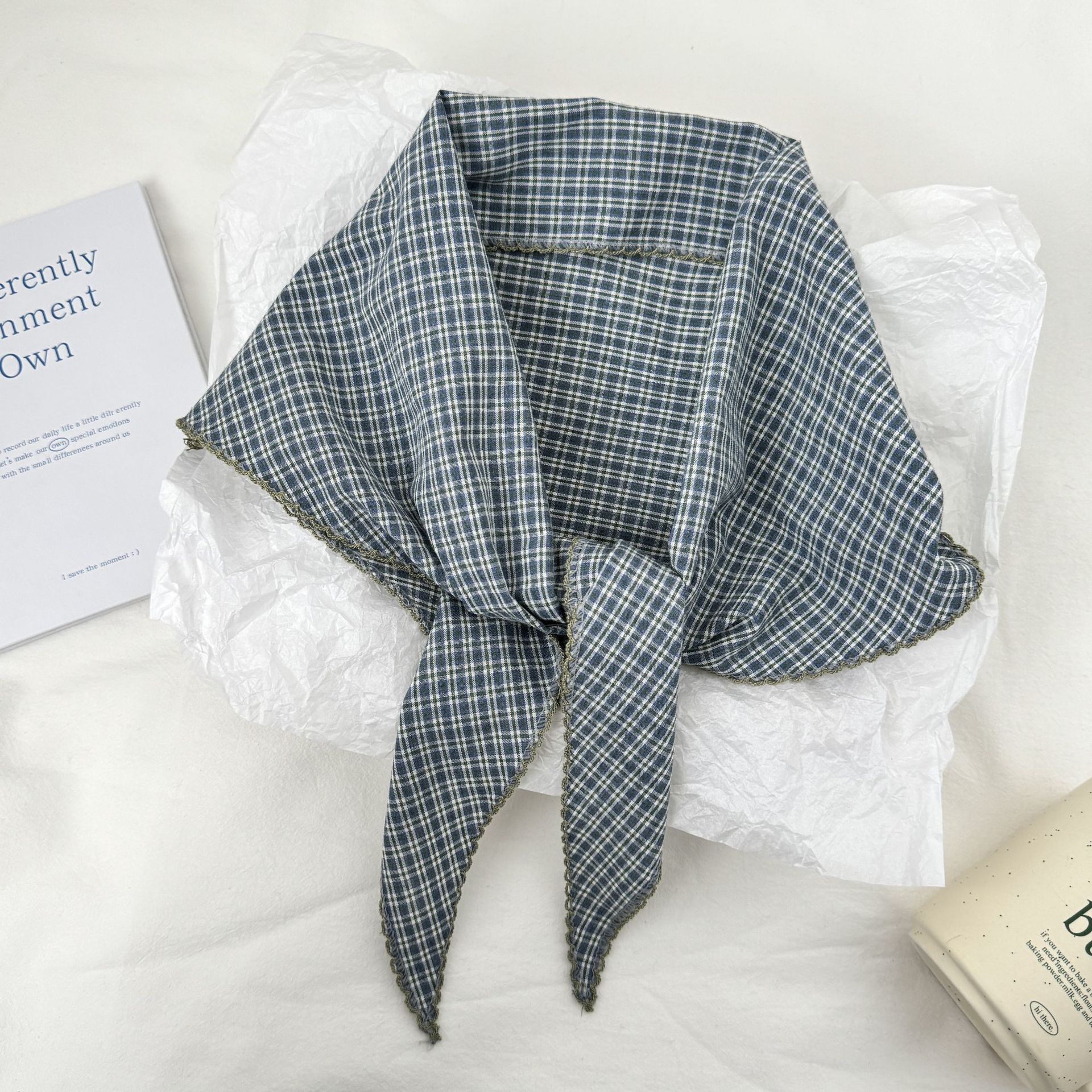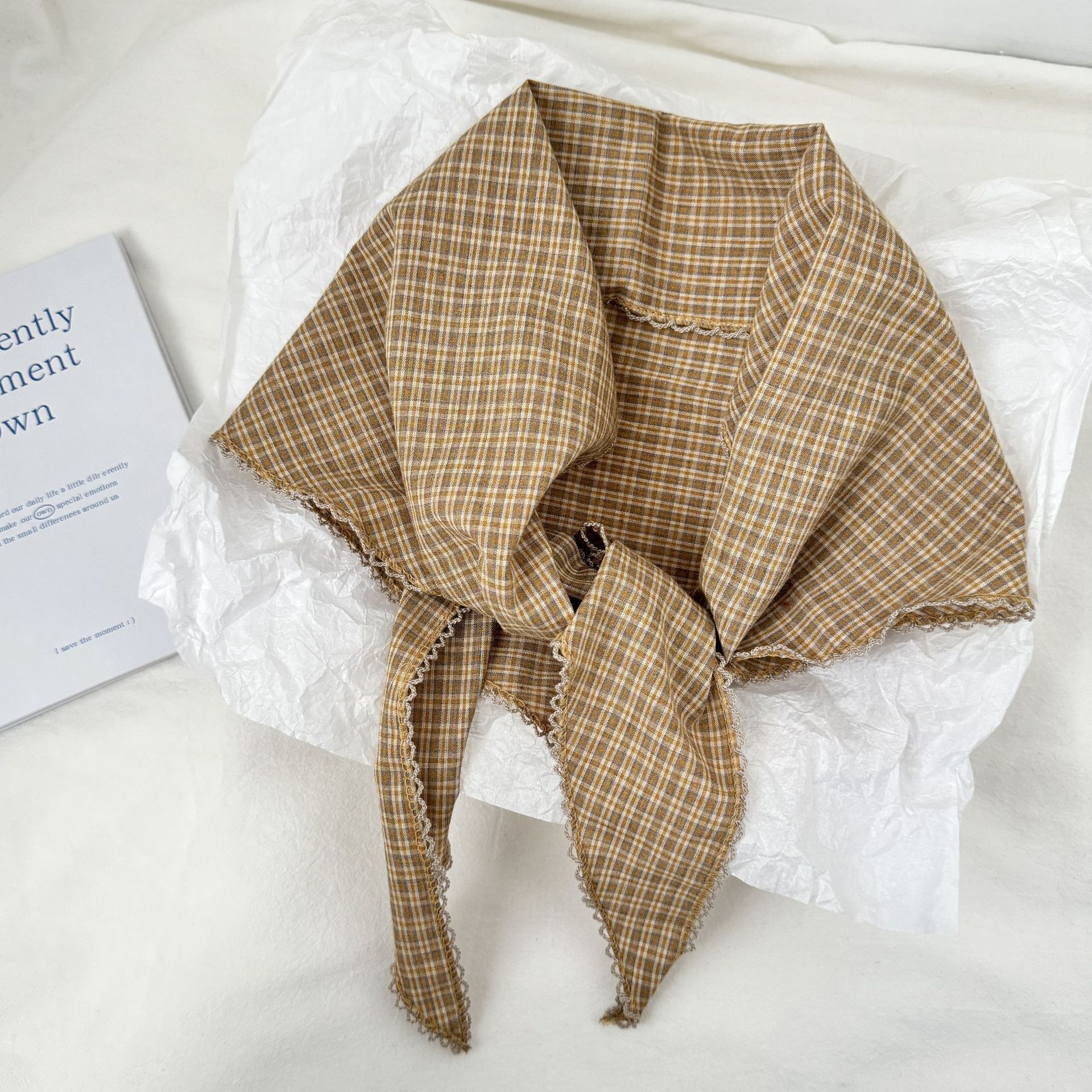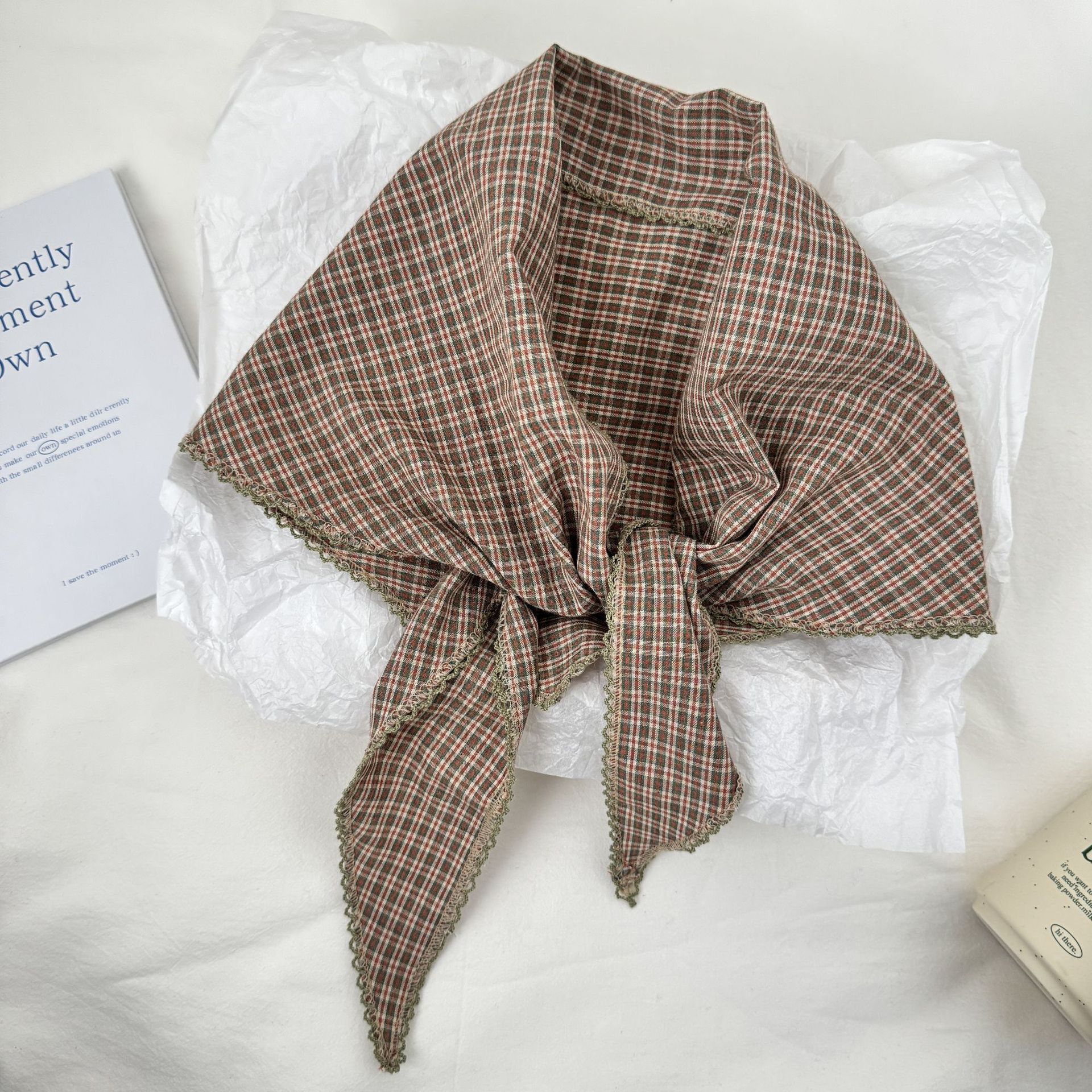 한국 스타일의 작은 격자 무늬 예술적인면과 린넨 삼각형 스카프 패션 스카프 우아한 스카프 다양한 트렌디 한 레트로 스카프스토어 가기