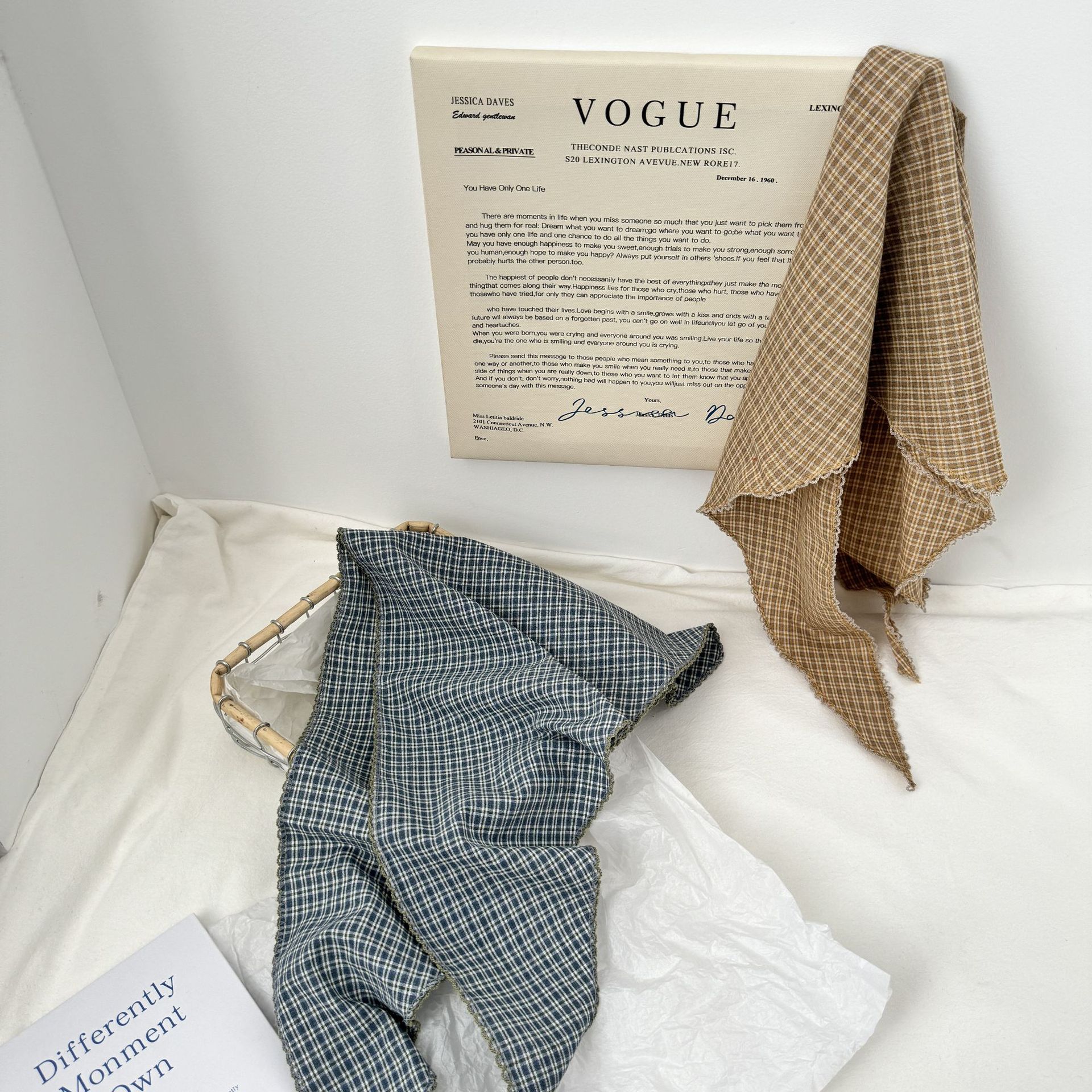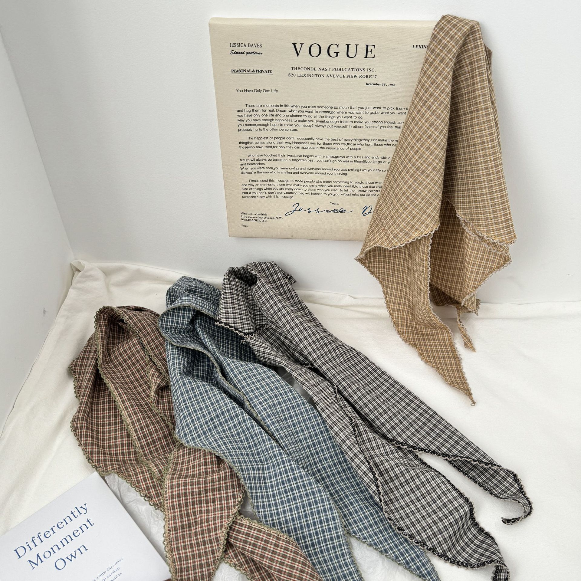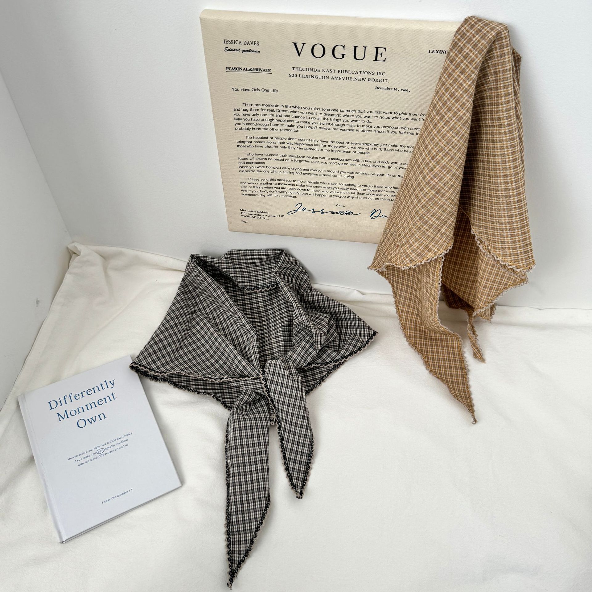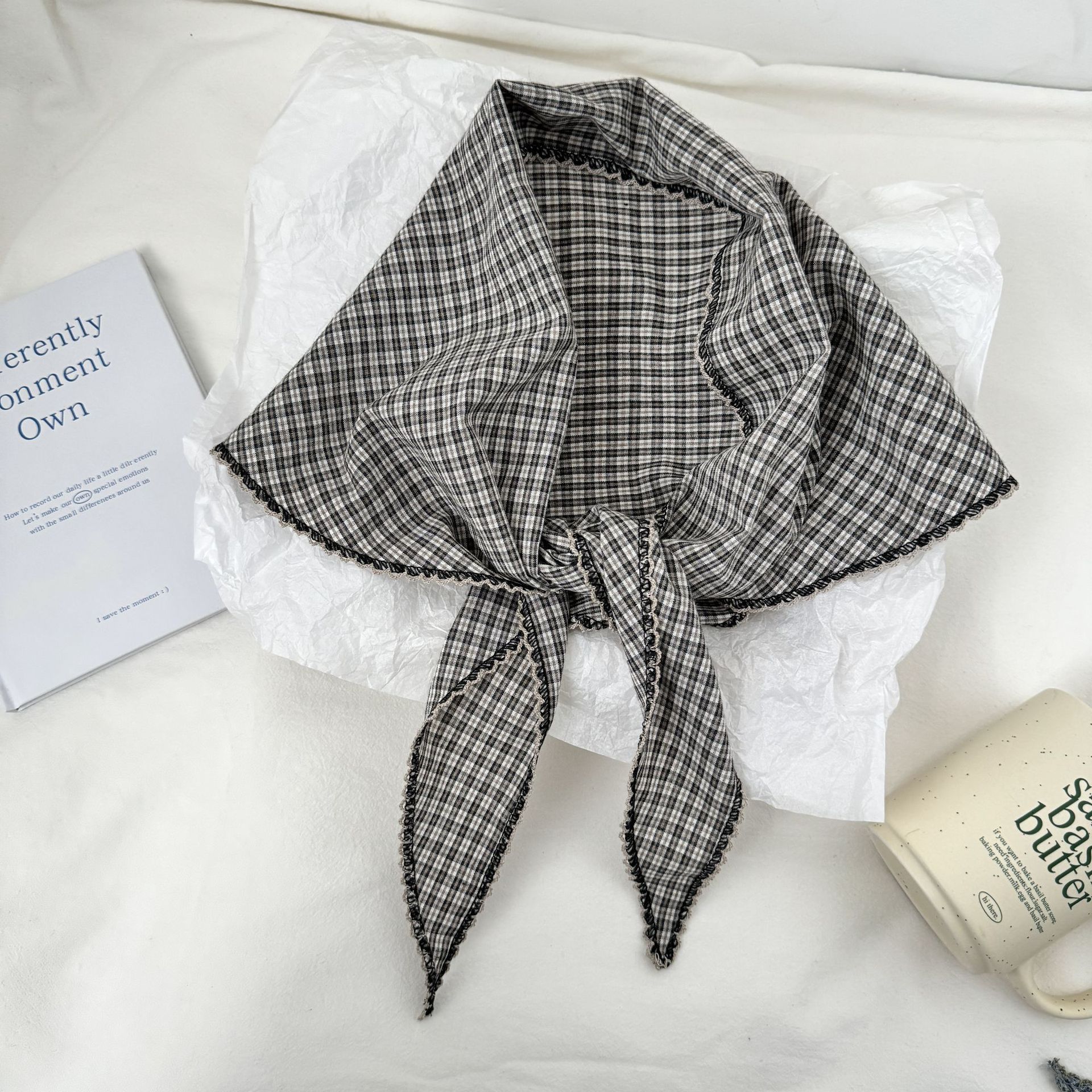 한국 스타일의 작은 격자 무늬 예술적인면과 린넨 삼각형 스카프 패션 스카프 우아한 스카프 다양한 트렌디 한 레트로 스카프스토어 가기