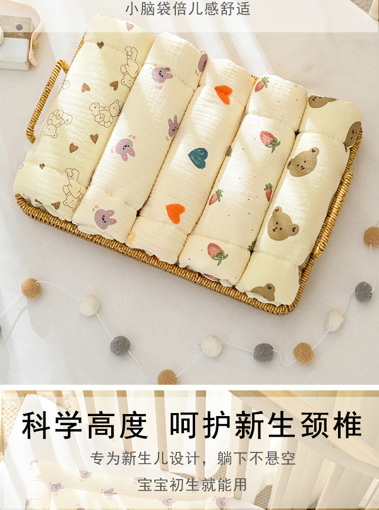 면 아기 구름 베개 0-6-12 개월 베개 통기성 평면 베개 수건 순수한면 거즈 신생아 봄과 여름스토어 가기