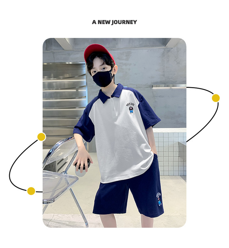 아동복 소년 여름 세트 2024 새로운 스타일 유행 쿨 어린이 폴로 셔츠 소년을위한 반팔 투피스 세트스토어 가기