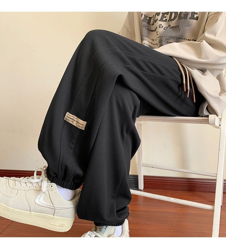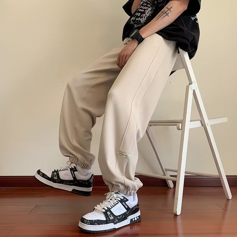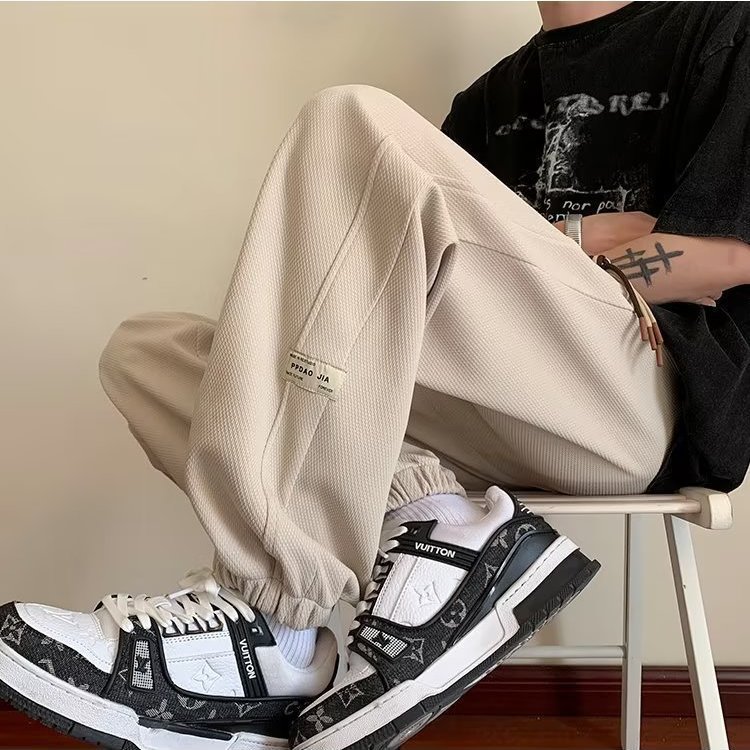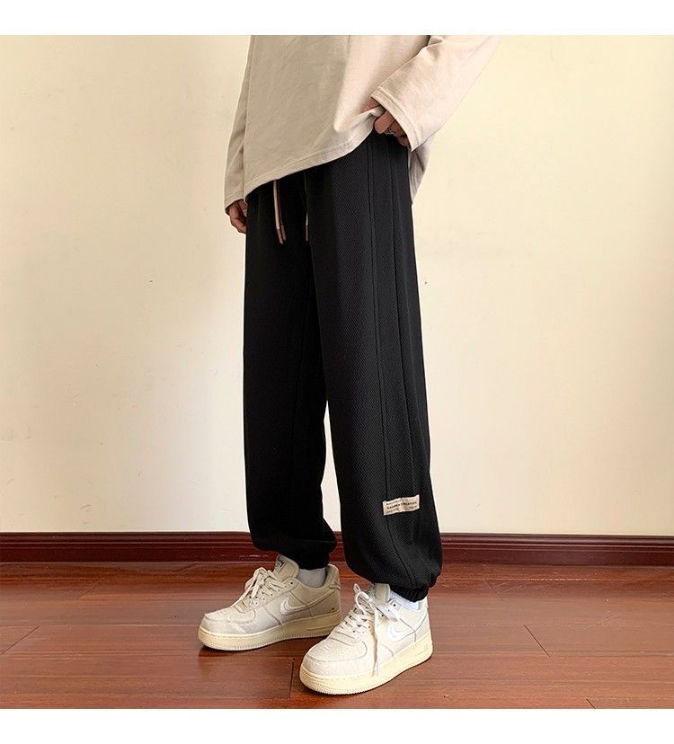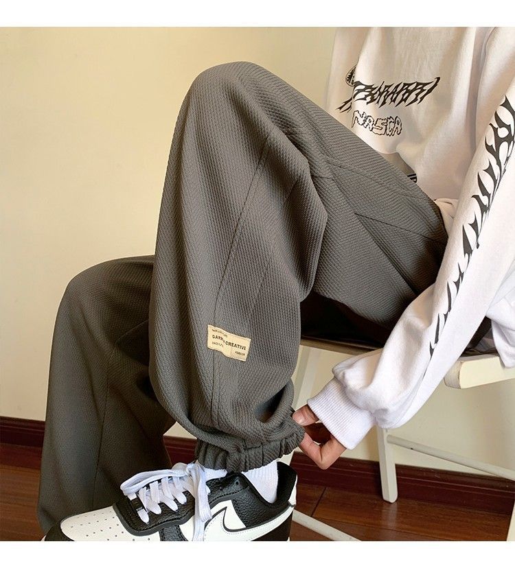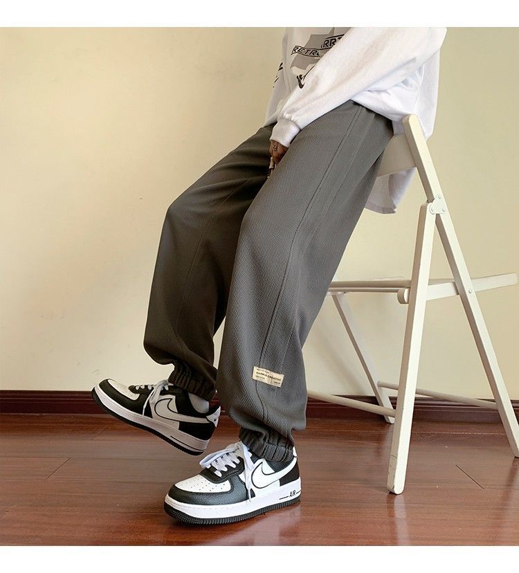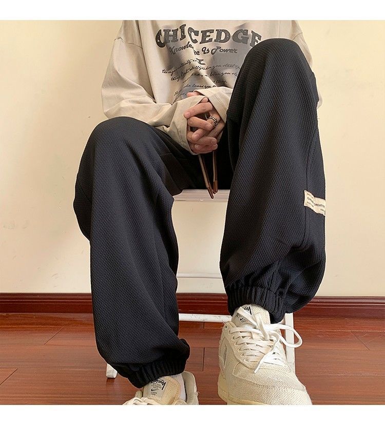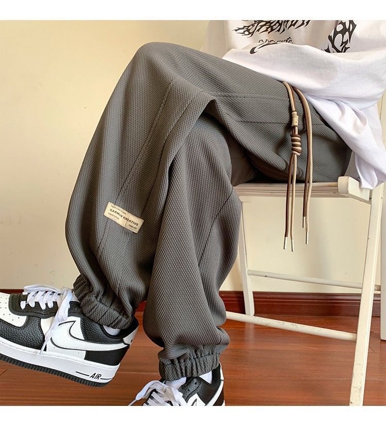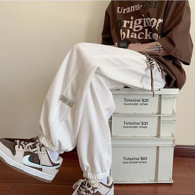 와플 팬츠 남성 봄과 여름 캐주얼 올 매치 스웨트 팬츠 미국 복고풍 오버 사이즈 드로 스트링 플러스 사이즈 스포츠 바지스토어 가기