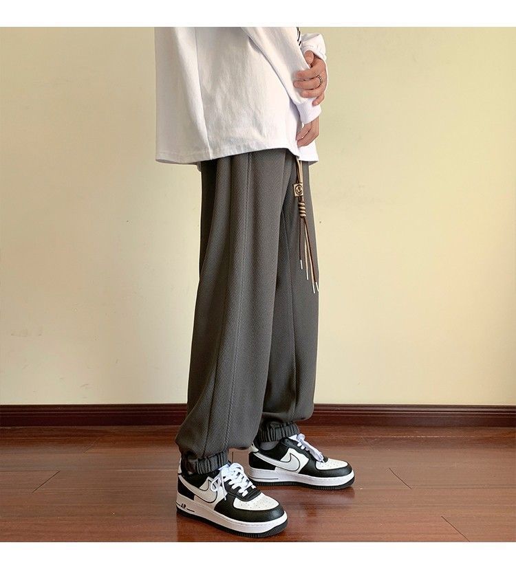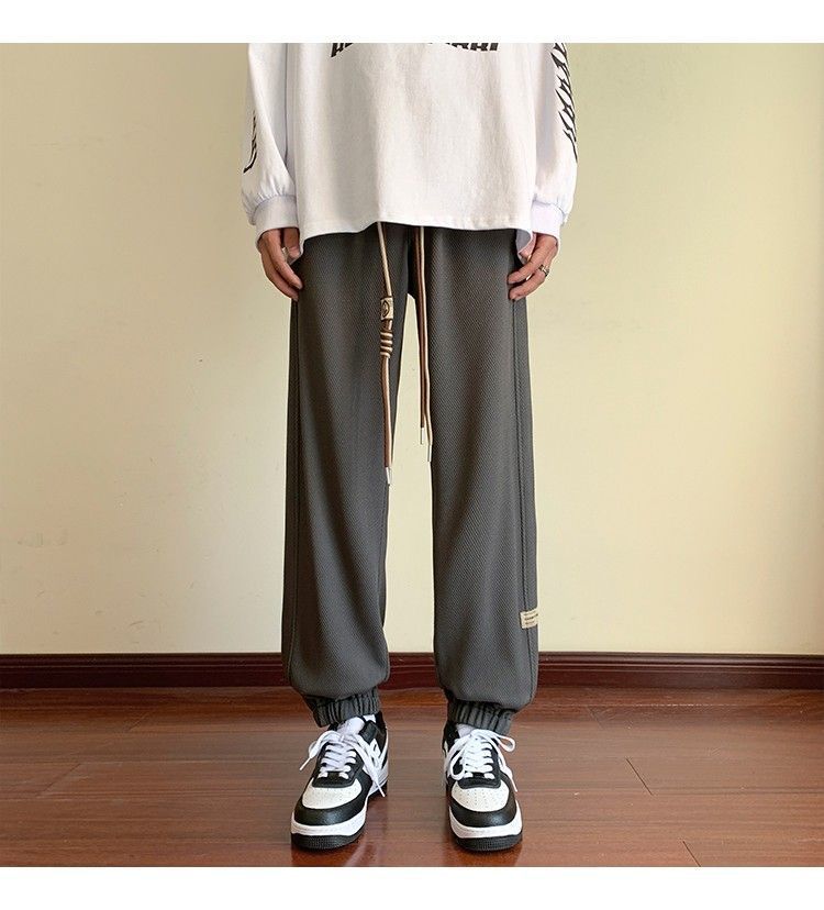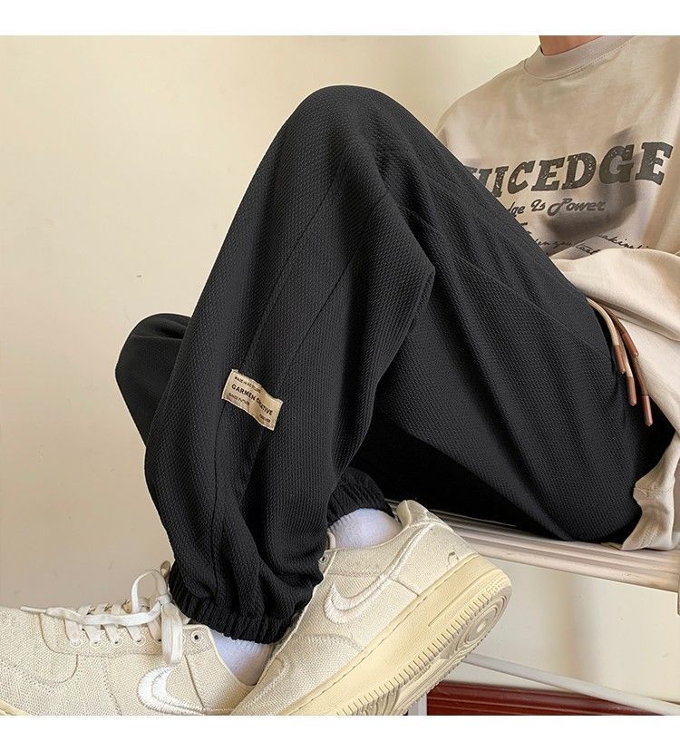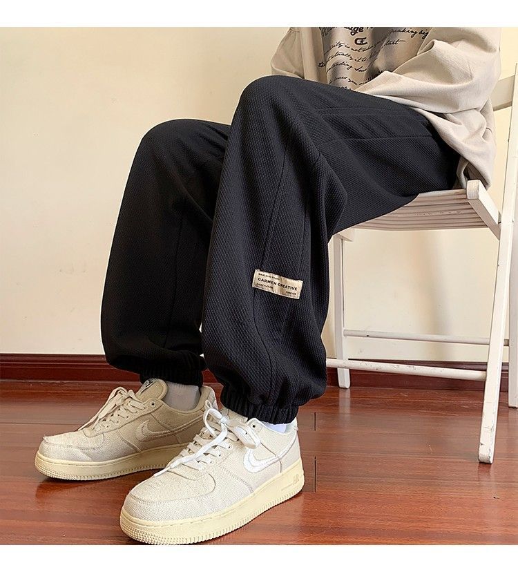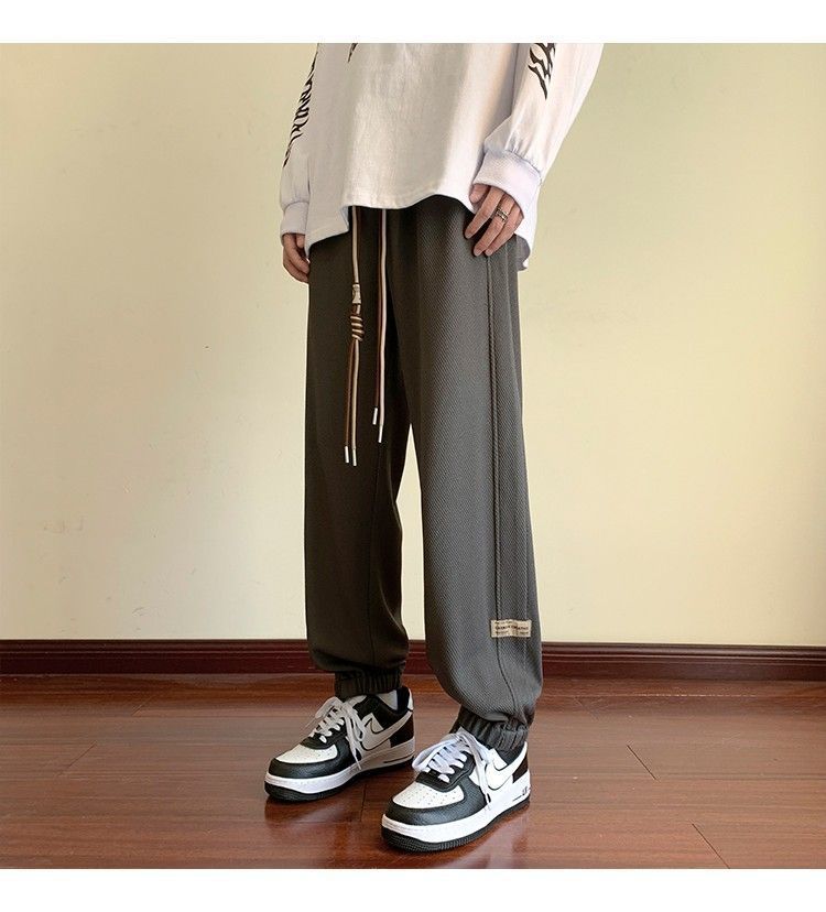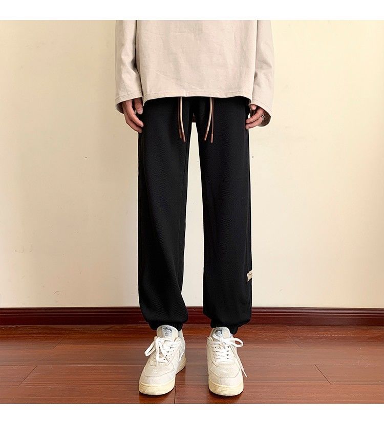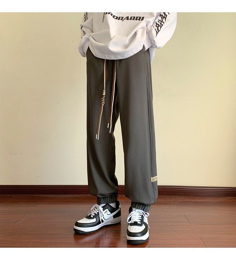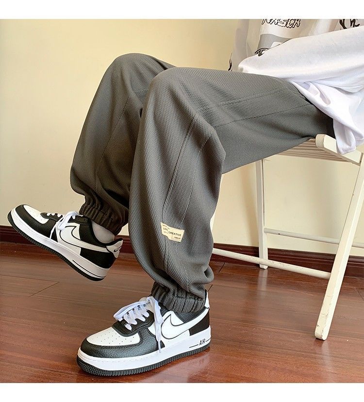 와플 팬츠 남성 봄과 여름 캐주얼 올 매치 스웨트 팬츠 미국 복고풍 오버 사이즈 드로 스트링 플러스 사이즈 스포츠 바지스토어 가기