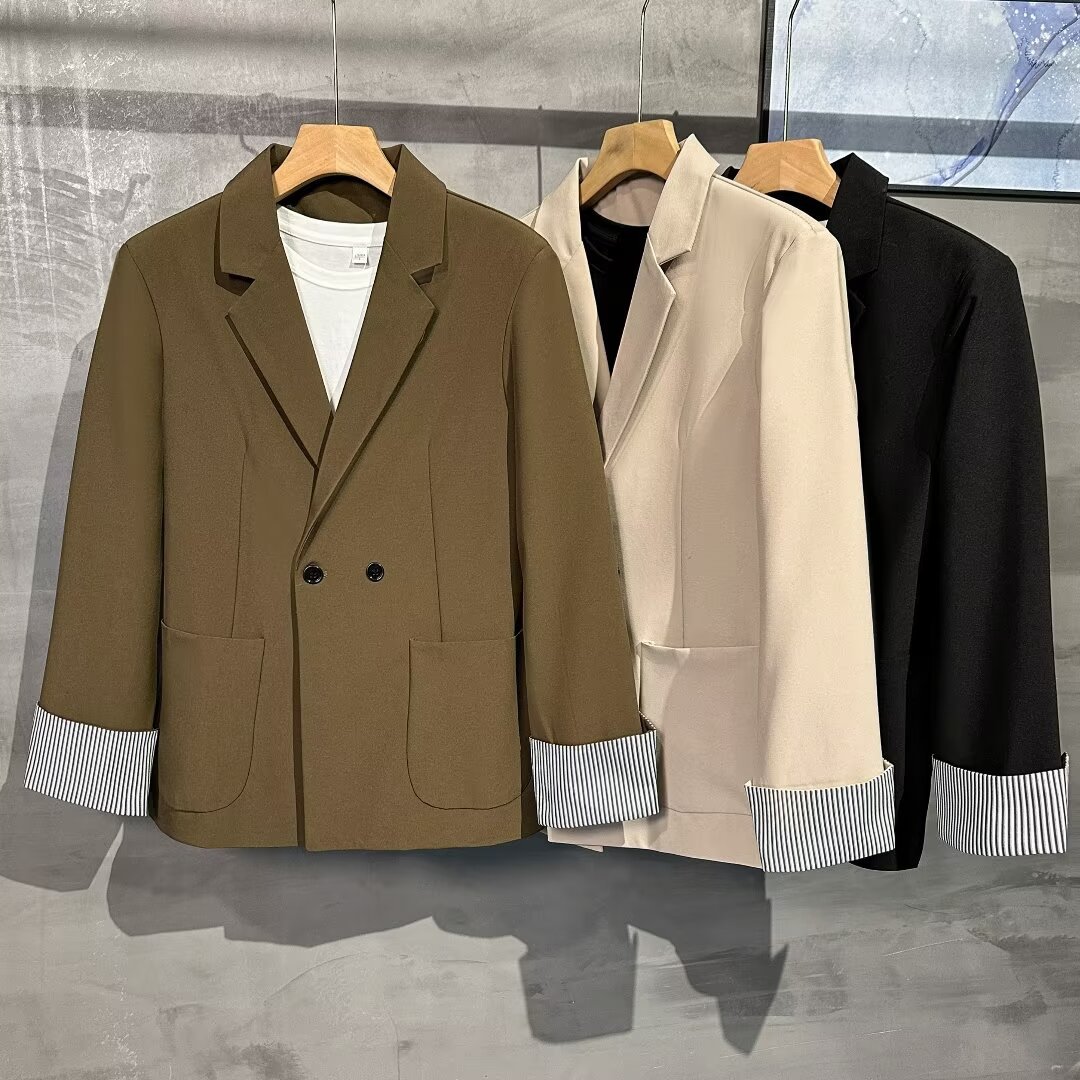 봄 새로운 남성 캐주얼 올 매치 단색 세트 유행 최고 트렌디 느슨한 세트 재킷
