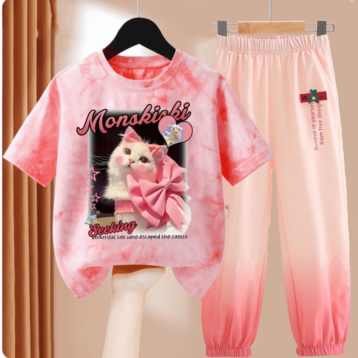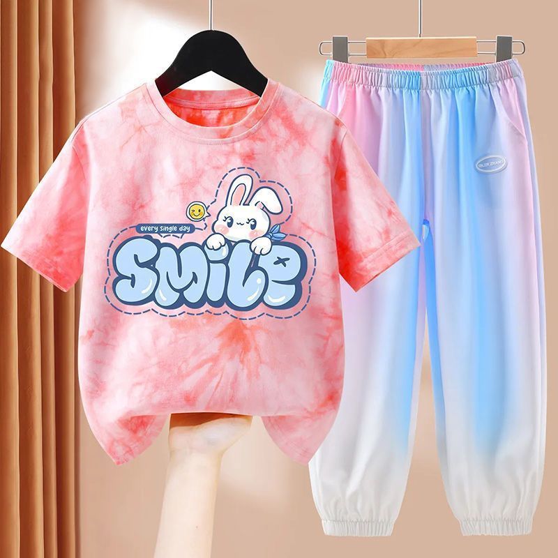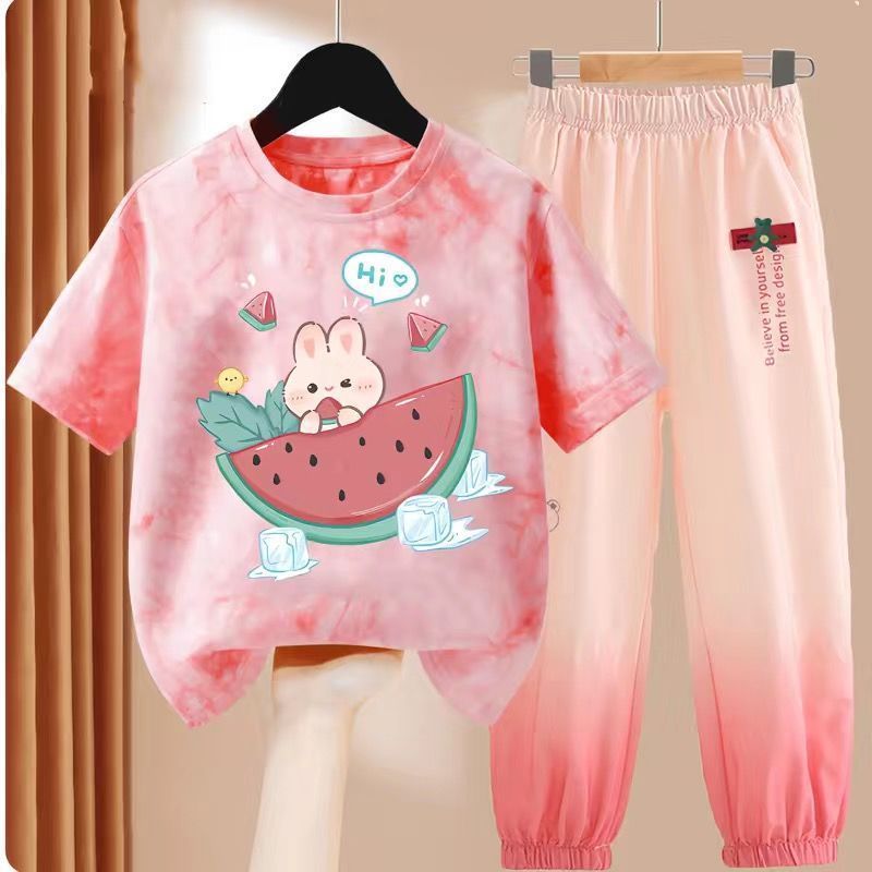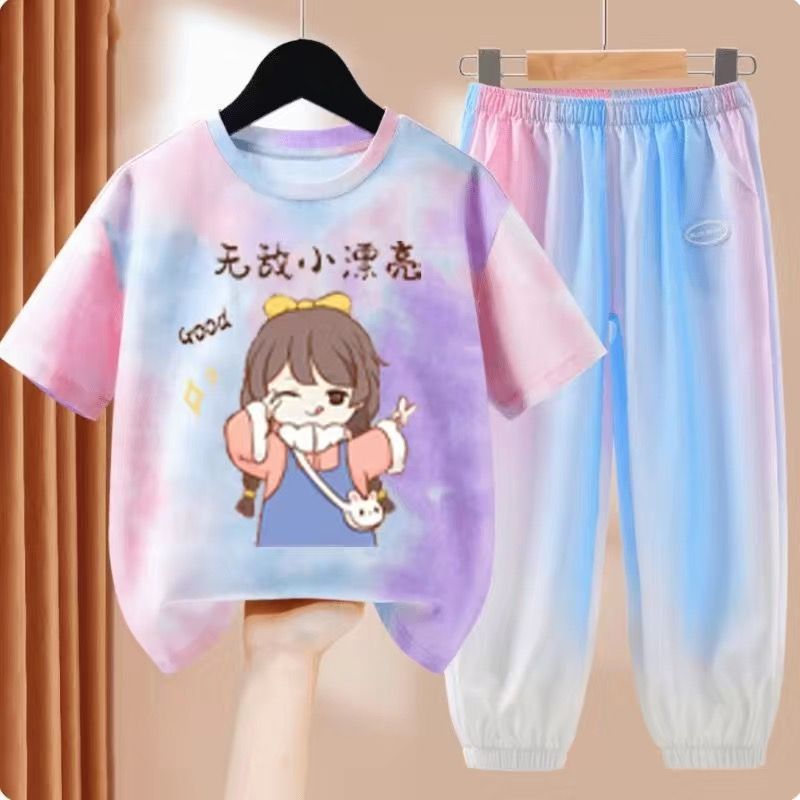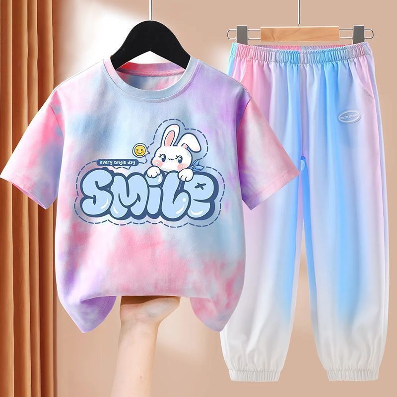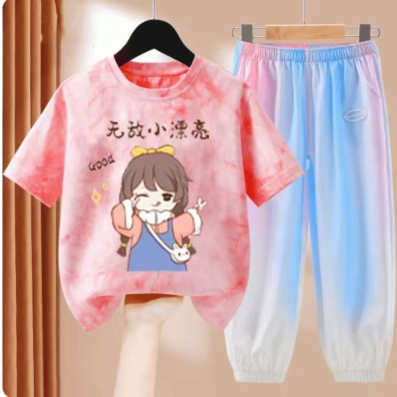 여자 여름 옷 세트 2024 새로운 스타일 유행 반팔 넥타이 염색 옷 외주 여성용 트렌디스토어 가기