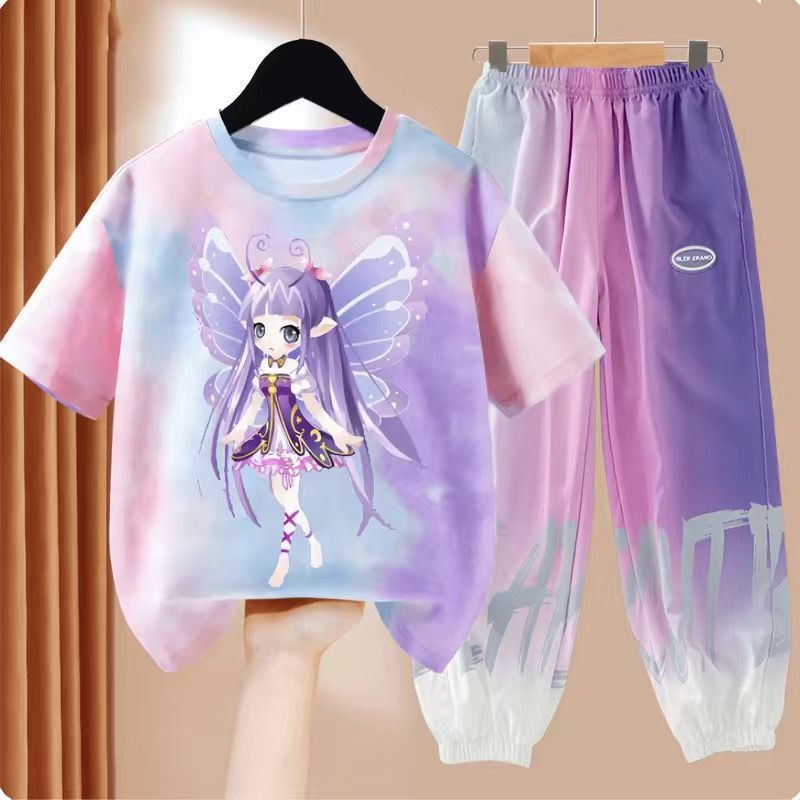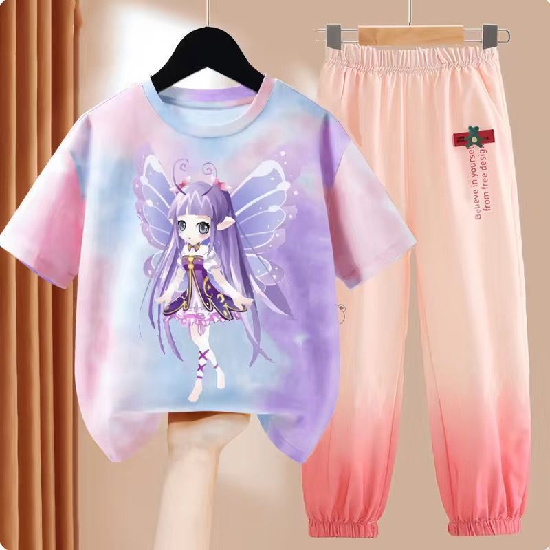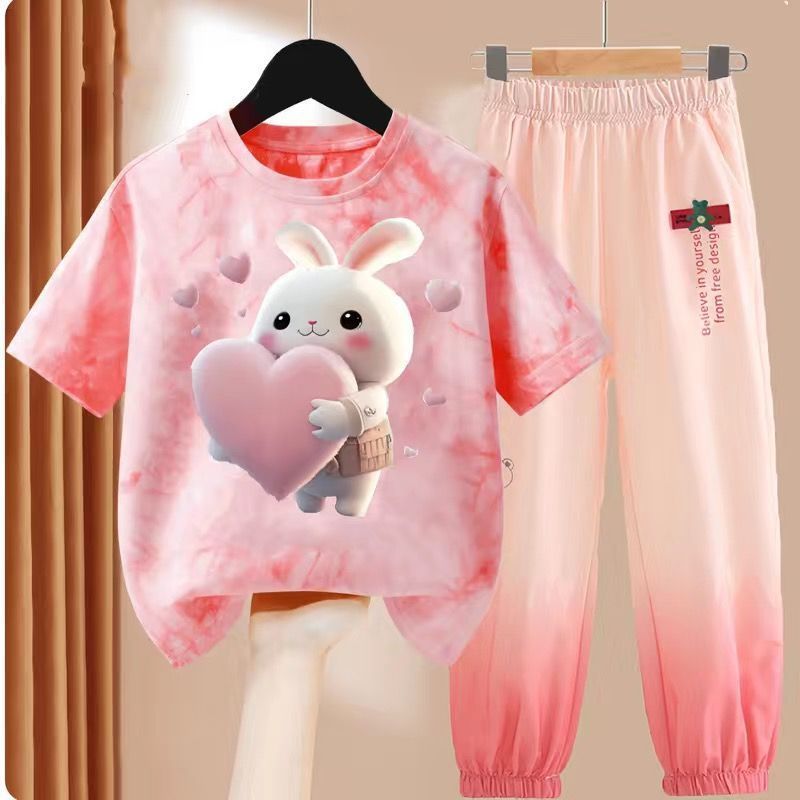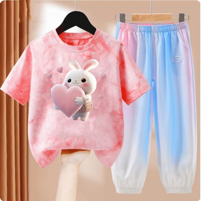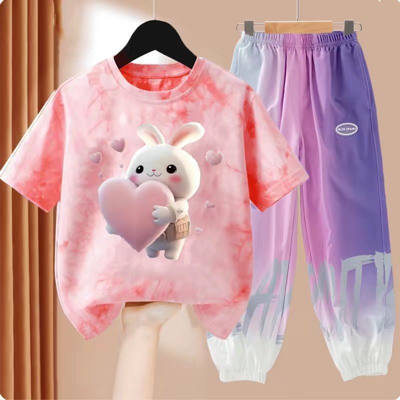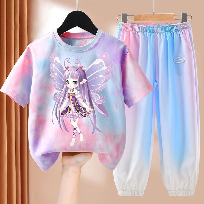 여자 여름 옷 세트 2024 새로운 스타일 유행 반팔 넥타이 염색 옷 외주 여성용 트렌디스토어 가기