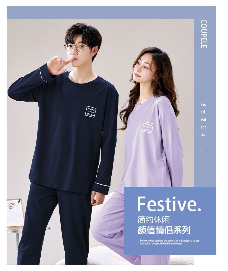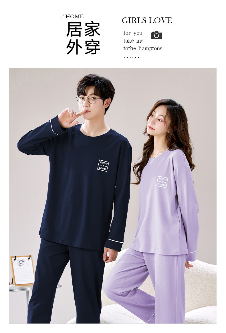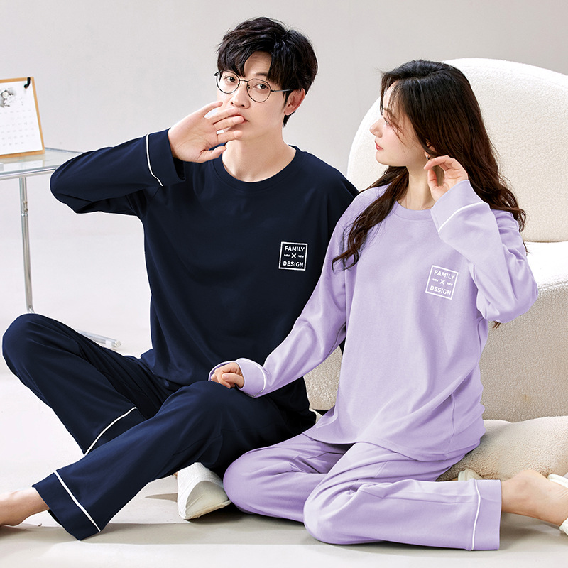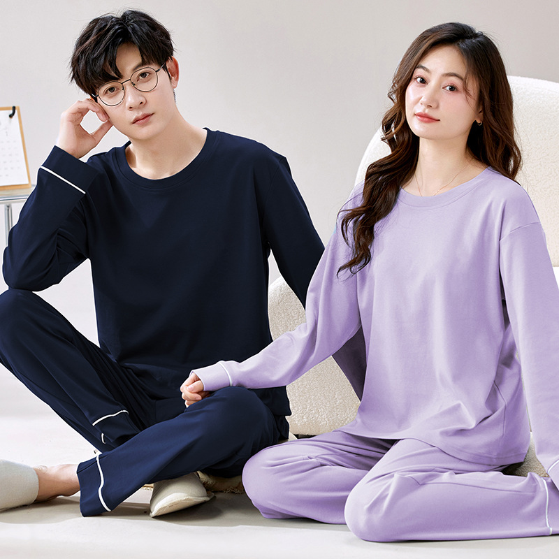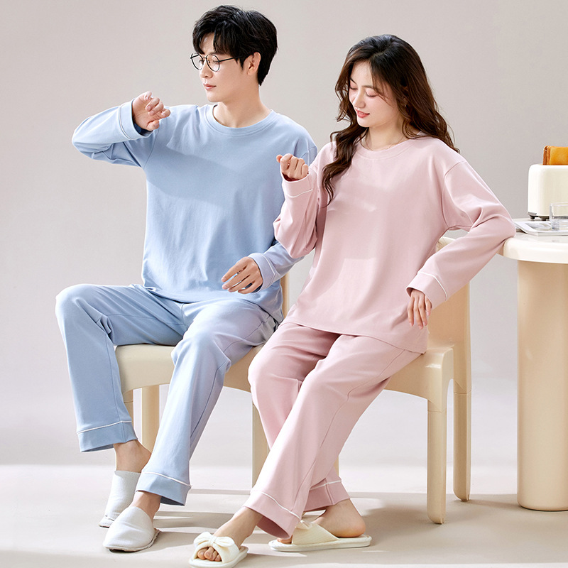 순수 코튼 커플 잠옷 봄과 가을 긴팔 여성용 단색 캐주얼 풀오버 남성용 홈 캐주얼 겉옷 세트스토어 가기