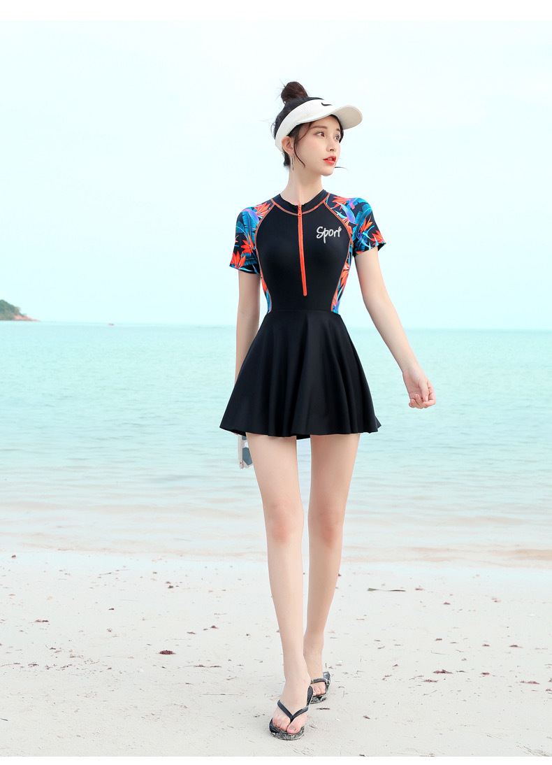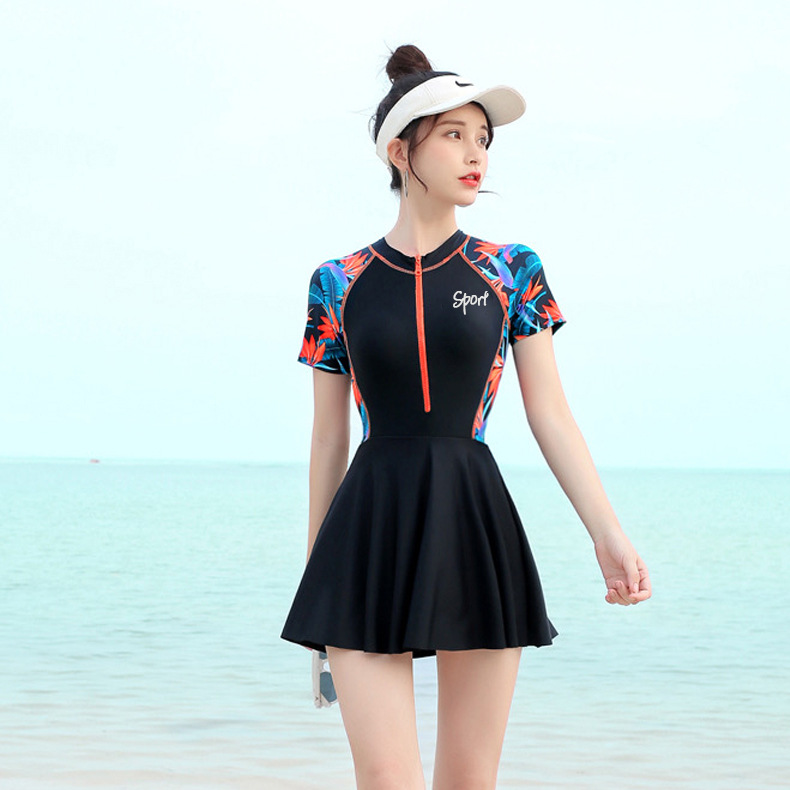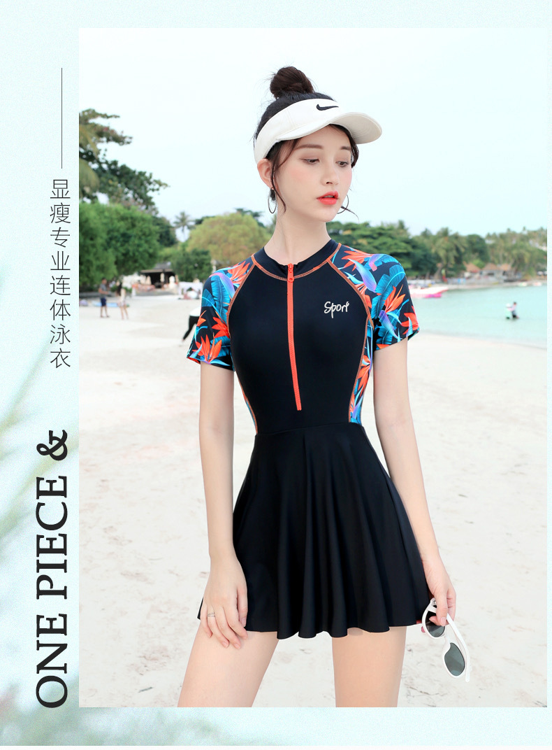 2024 새로운 여성 수영복 여성의 보수적 인 원피스 원피스 슬리밍 작은 가슴 푸시 약간 뚱뚱한 노출 방지 수영복스토어 가기