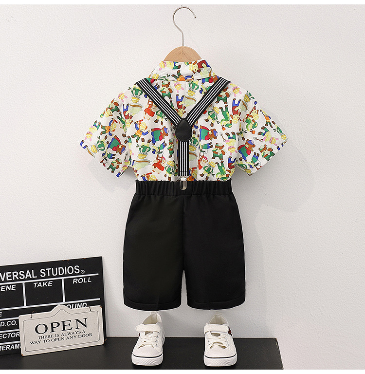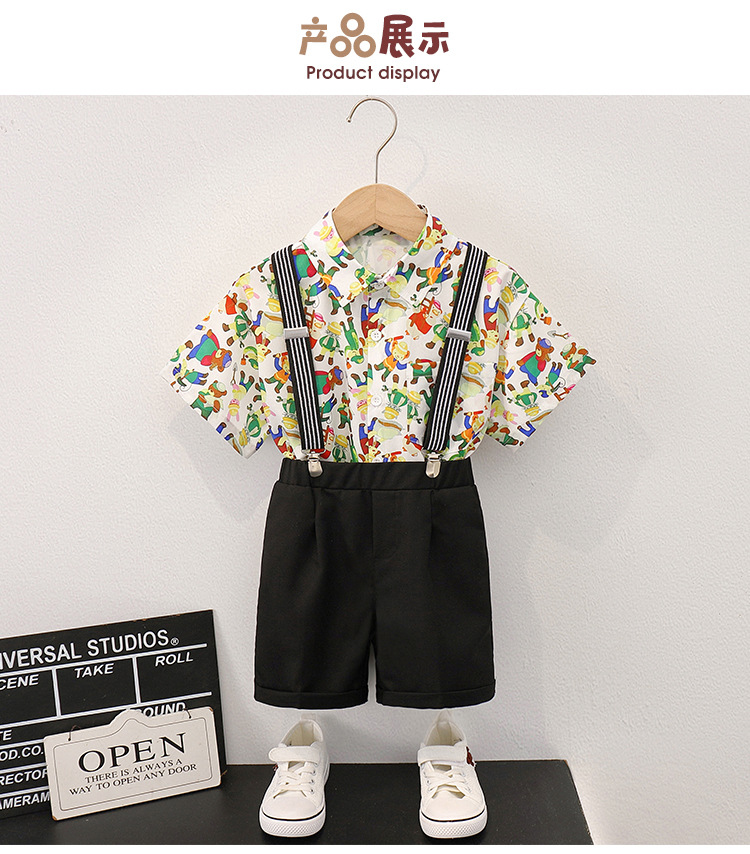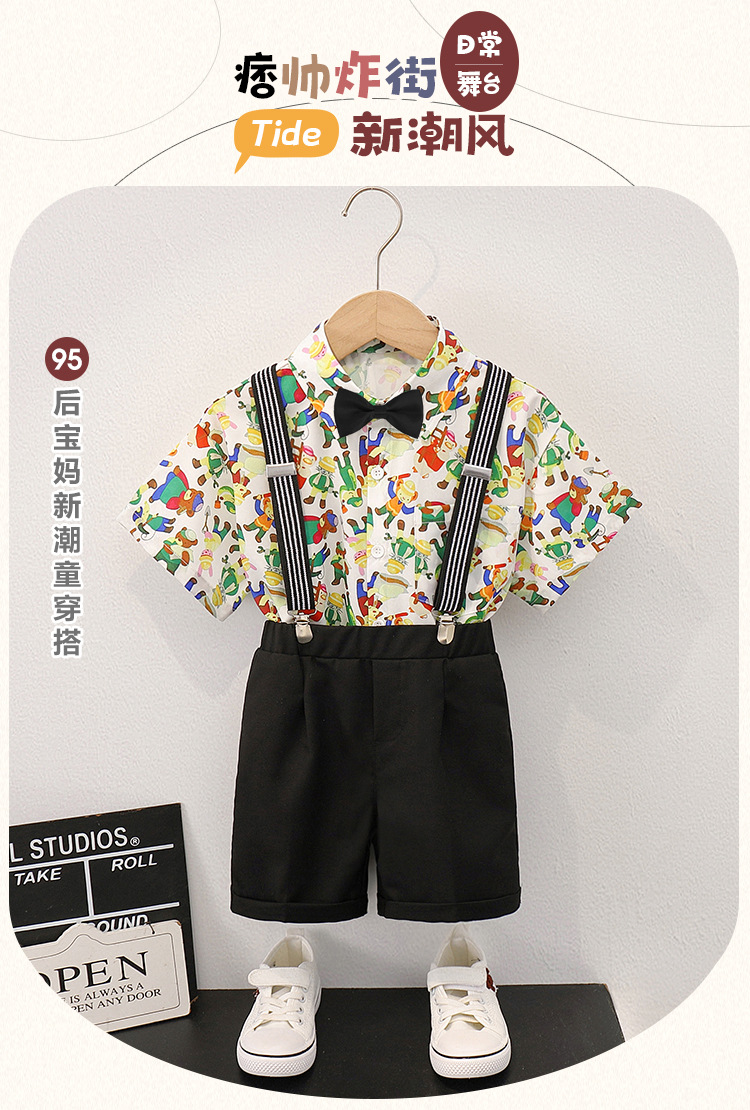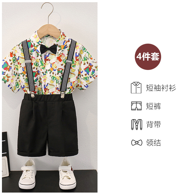 국경을 넘는 새로운 아동복, 아동용 반팔 양복, 셔츠와 바지, 4종 세트, 새로운 홍콩 스타일의 얇은 활동 드레스