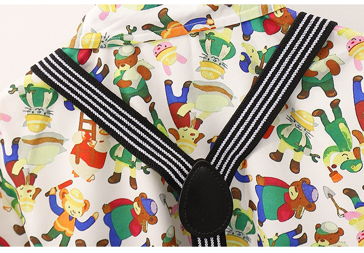• 꽃 셔츠 + 검은 반바지 + 스트랩 + 나비 넥타이