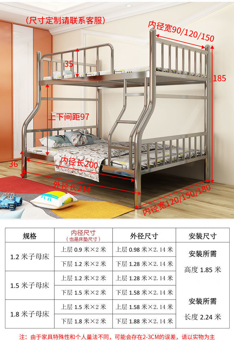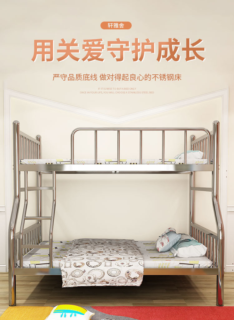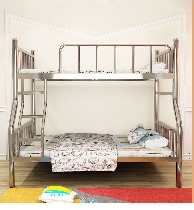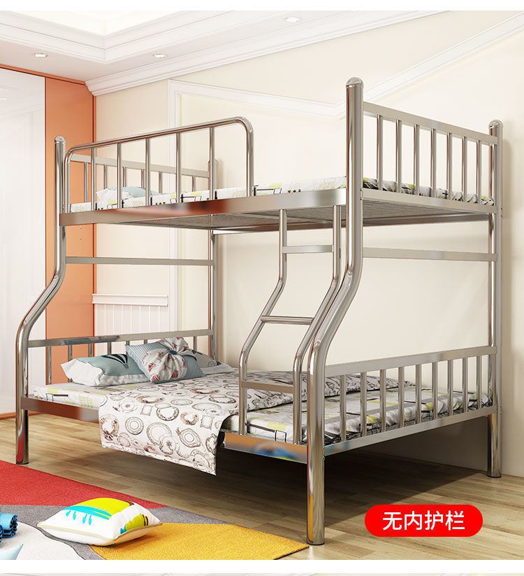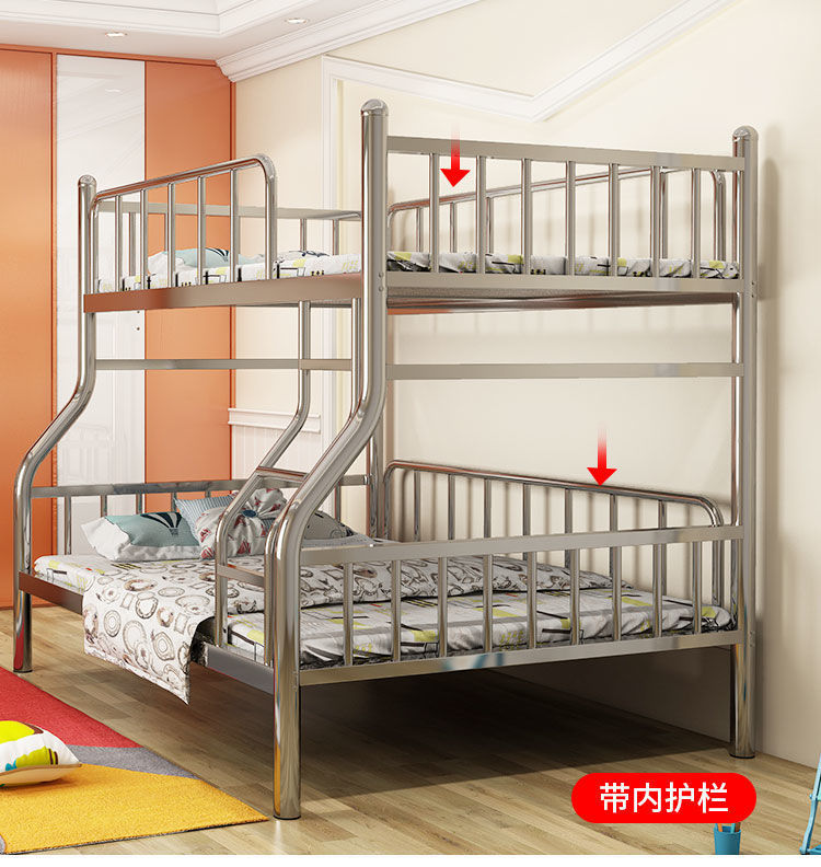 304 스테인레스 스틸 침대 두꺼운 철 침대 프레임 어린이 학생 기숙사 높고 낮은 어린이 어머니 침대 더블 레이어 철 침대