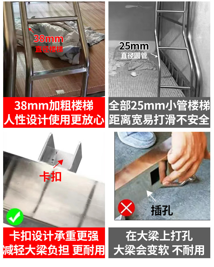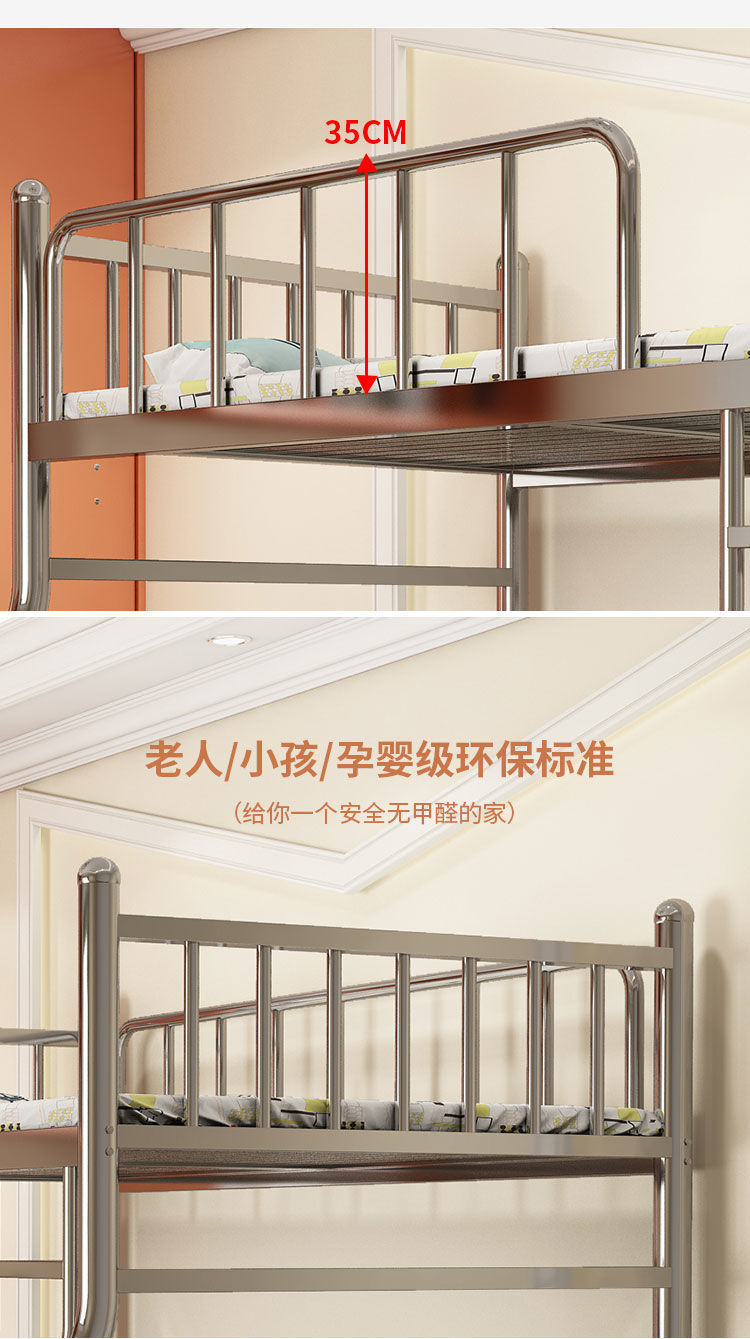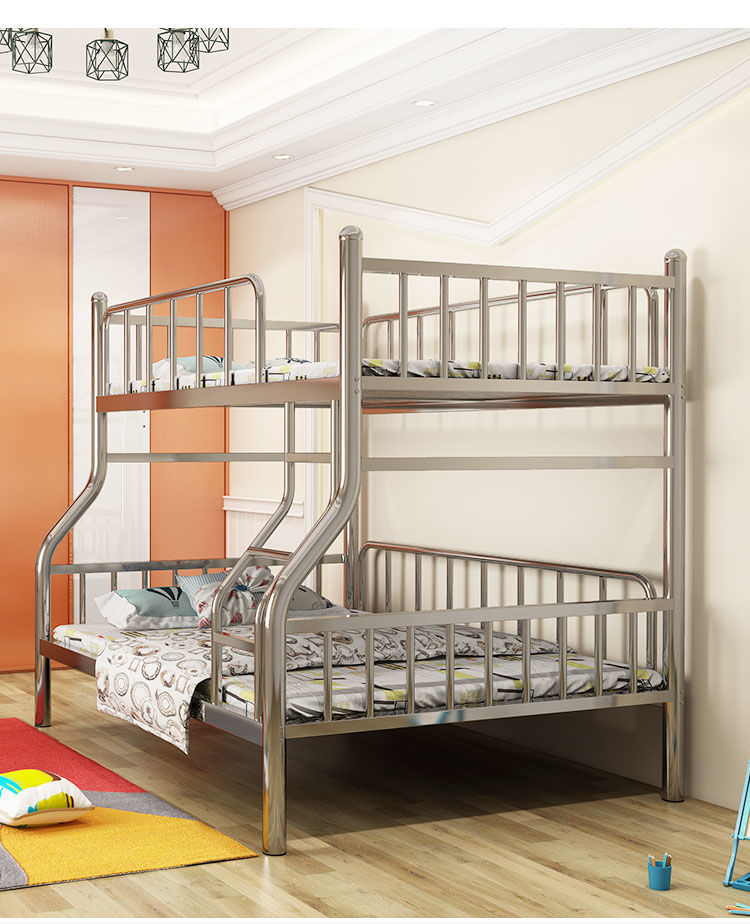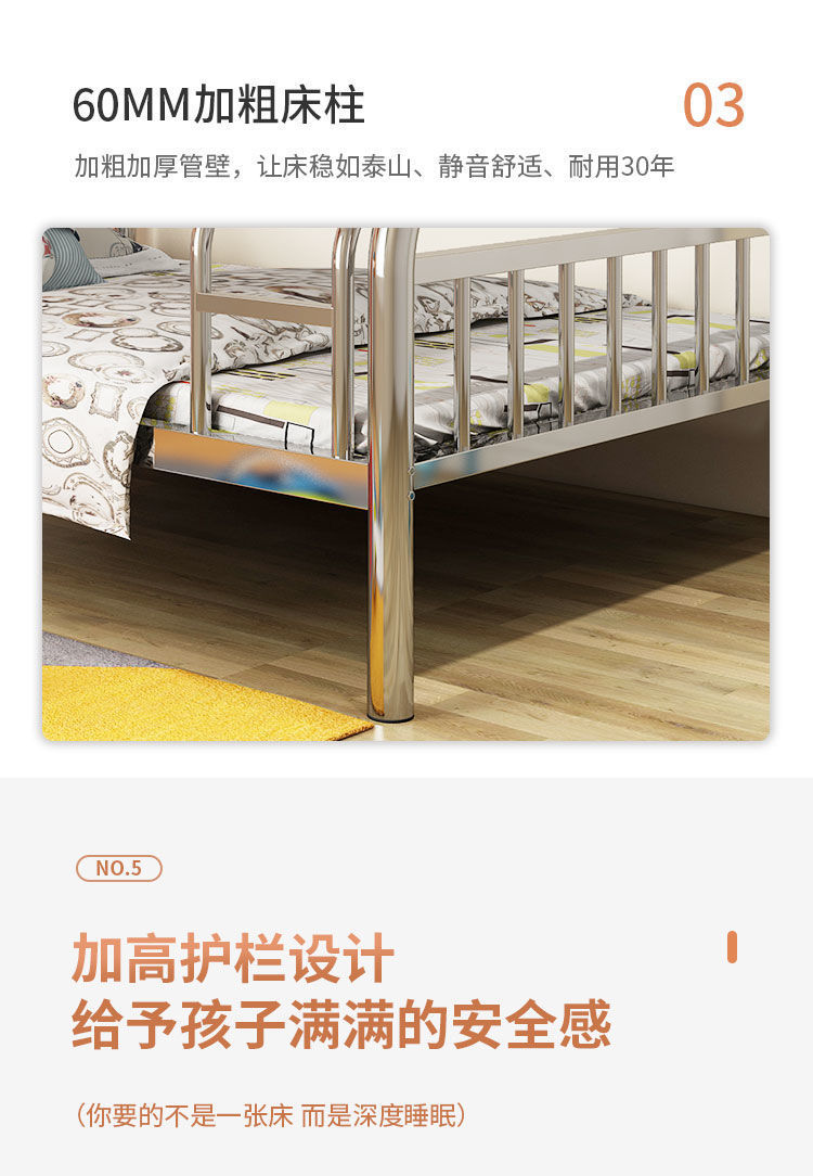 304 스테인레스 스틸 침대 두꺼운 철 침대 프레임 어린이 학생 기숙사 높고 낮은 어린이 어머니 침대 더블 레이어 철 침대