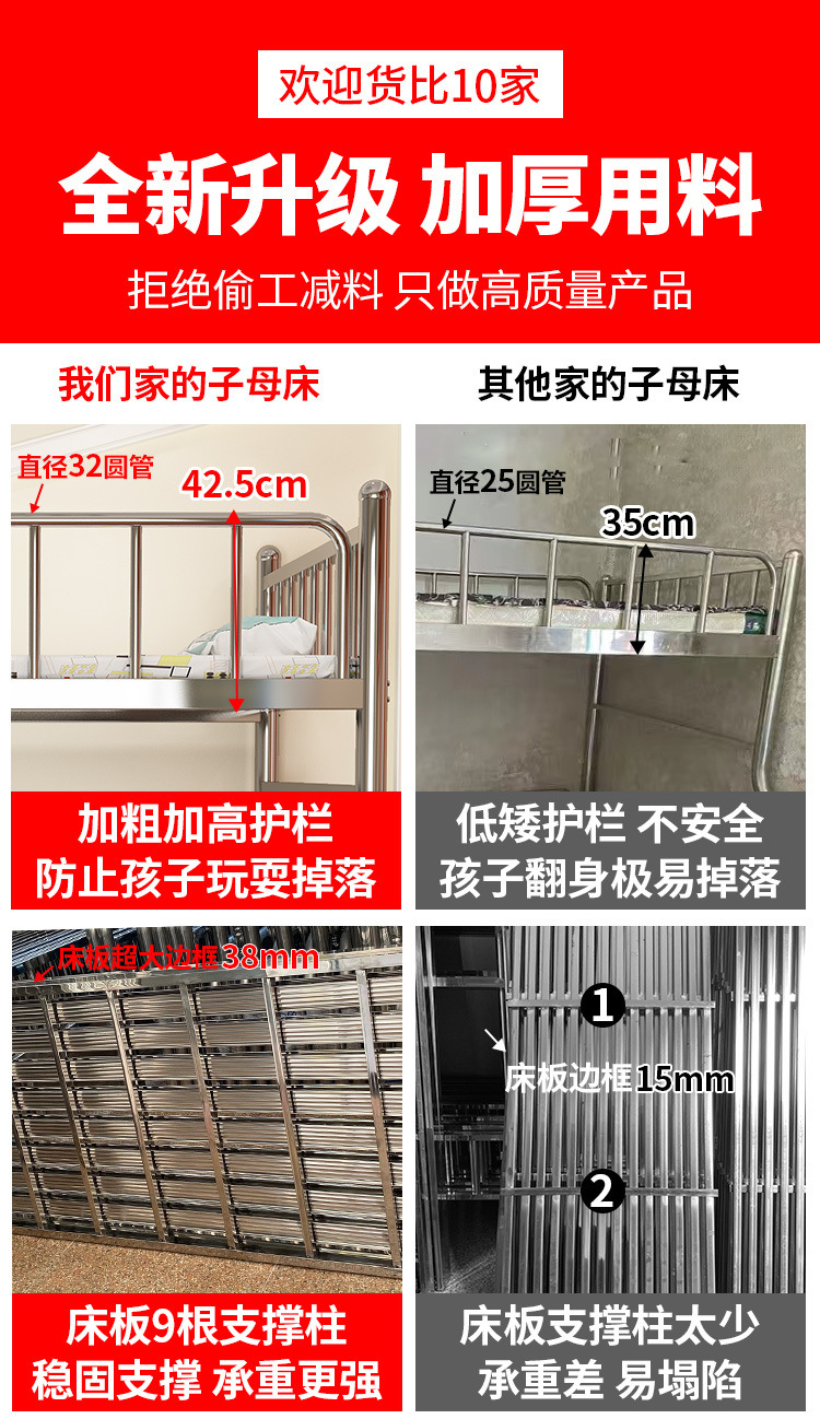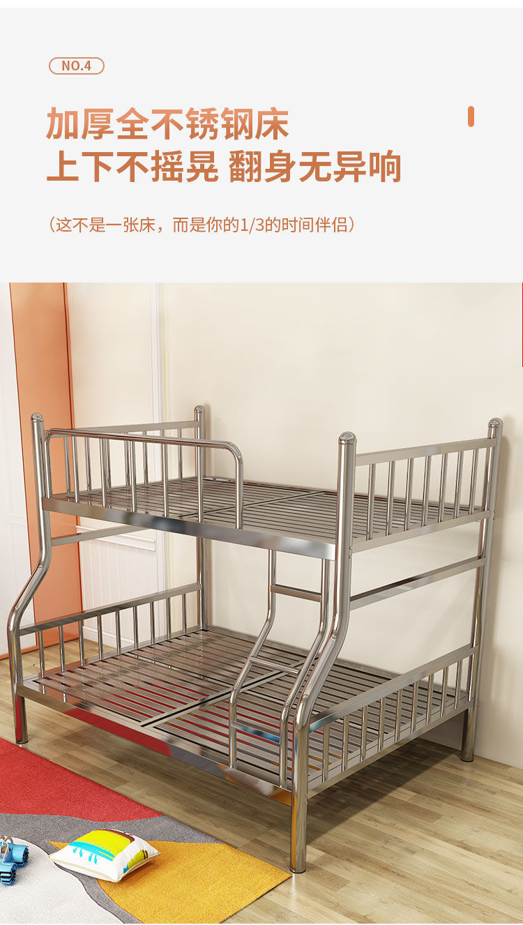 304 스테인레스 스틸 침대 두꺼운 철 침대 프레임 어린이 학생 기숙사 높고 낮은 어린이 어머니 침대 더블 레이어 철 침대스토어 가기