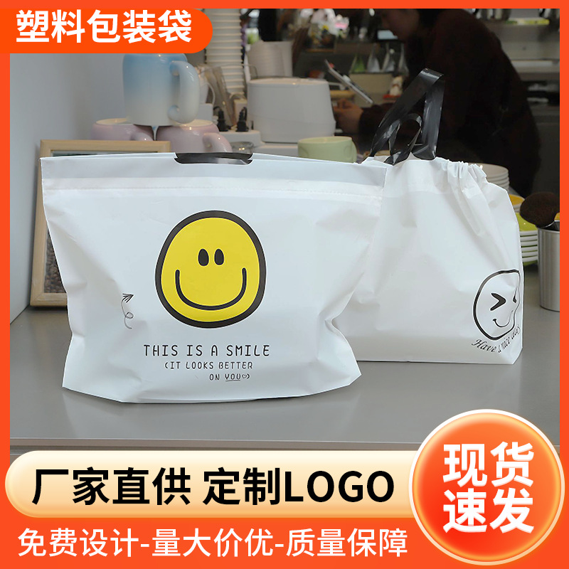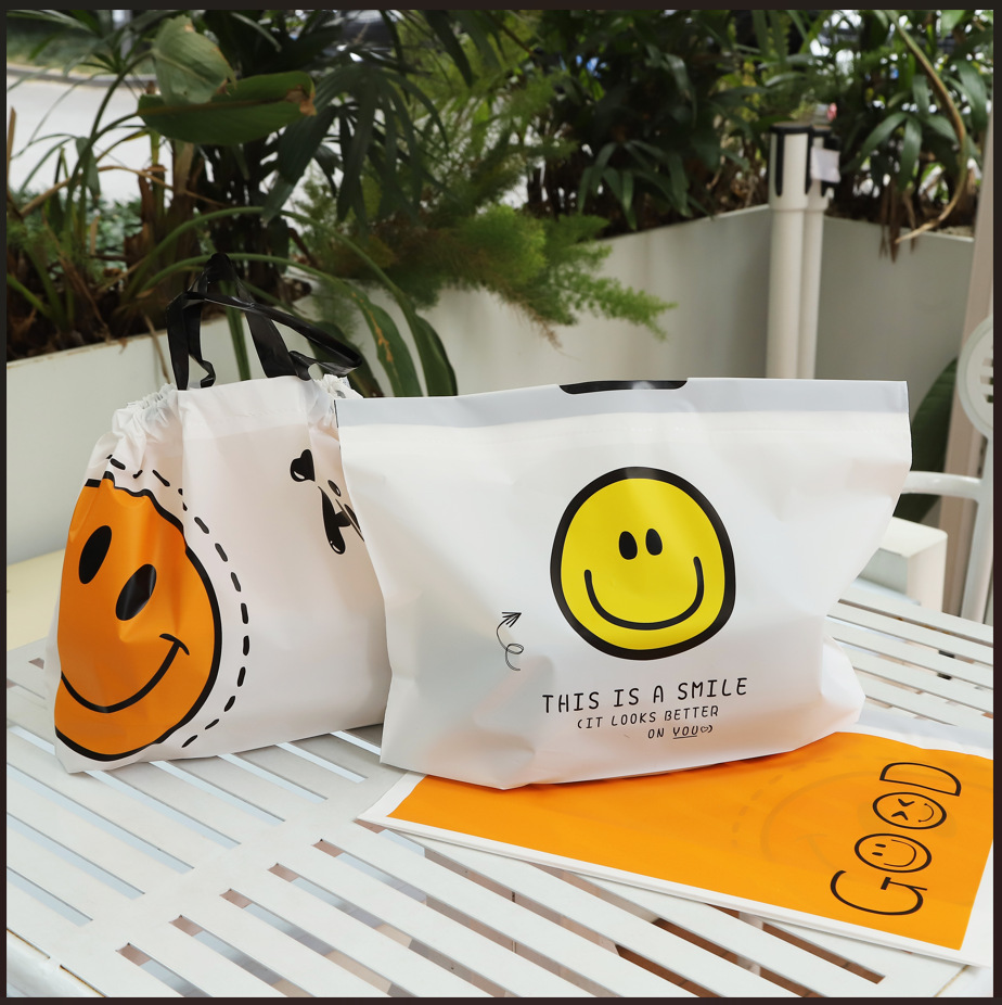 공장 직접 공급 두꺼운 웃는 얼굴 테이크 아웃 포장 가방 졸라 매는 끈 가방 서리로 덥은 방수 저장 가방 도매스토어 가기