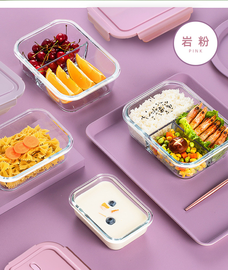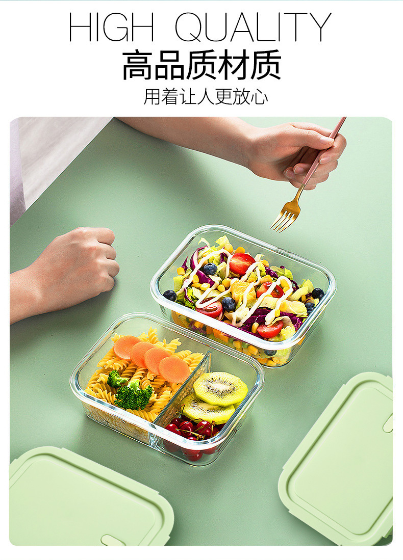 도시락 상자 유리 고온 저항하는 전자 레인지 가정용 라운드 바삭 바삭한 회사원 도시락 상자 성인 직사각형 도시락