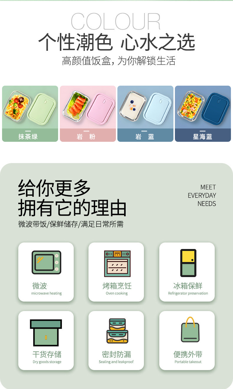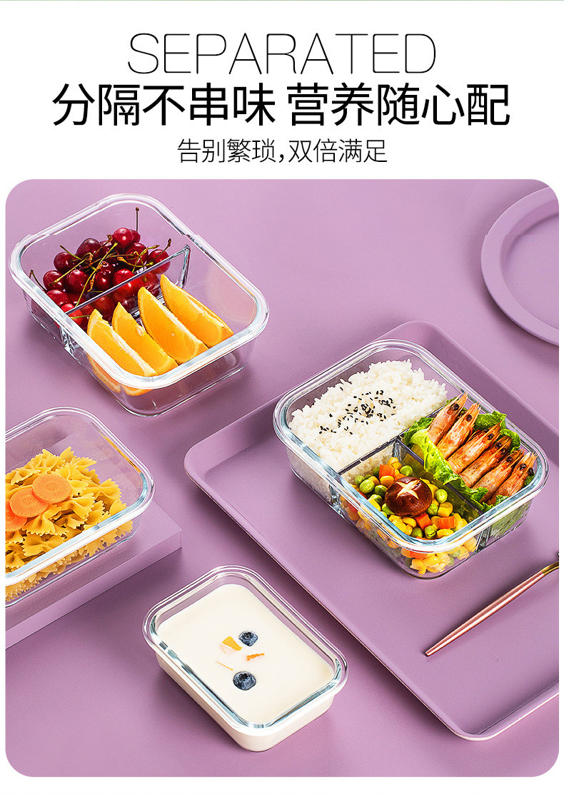 도시락 상자 유리 고온 저항하는 전자 레인지 가정용 라운드 바삭 바삭한 회사원 도시락 상자 성인 직사각형 도시락스토어 가기