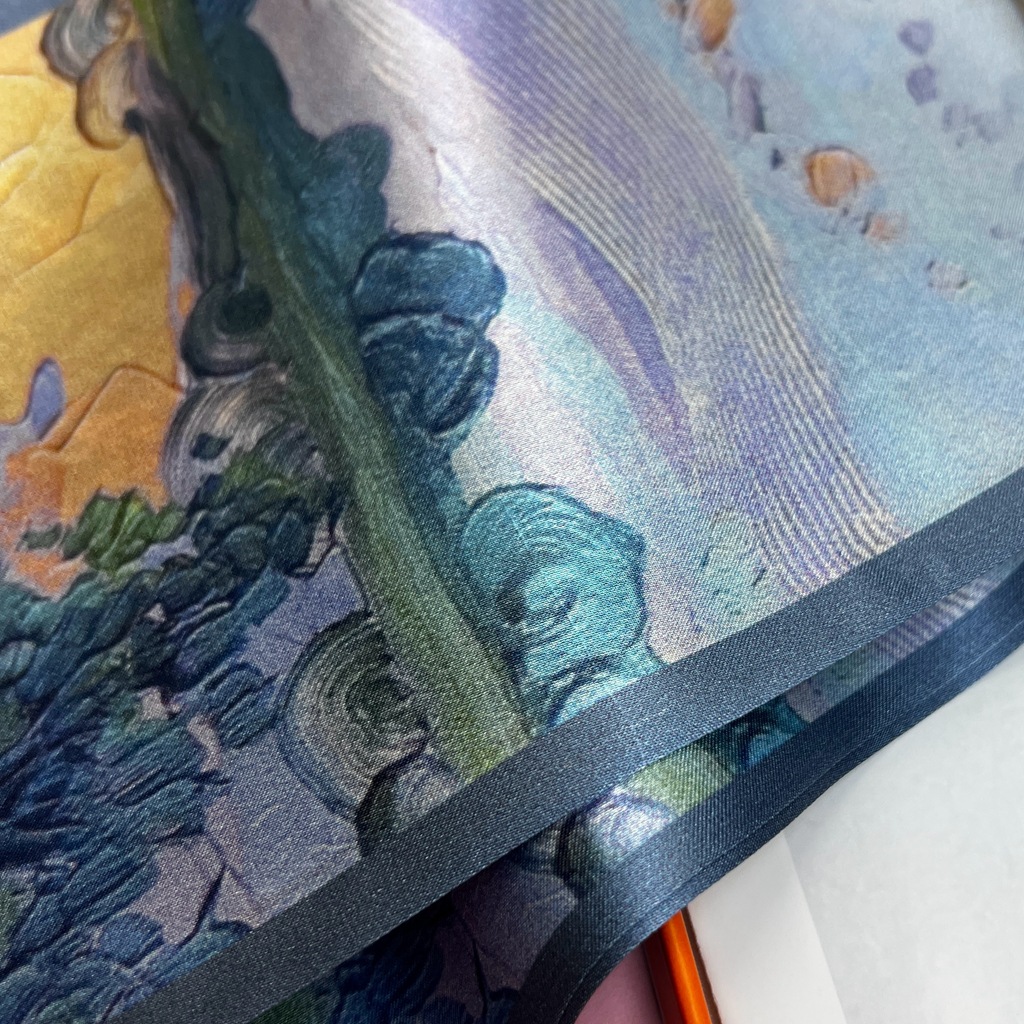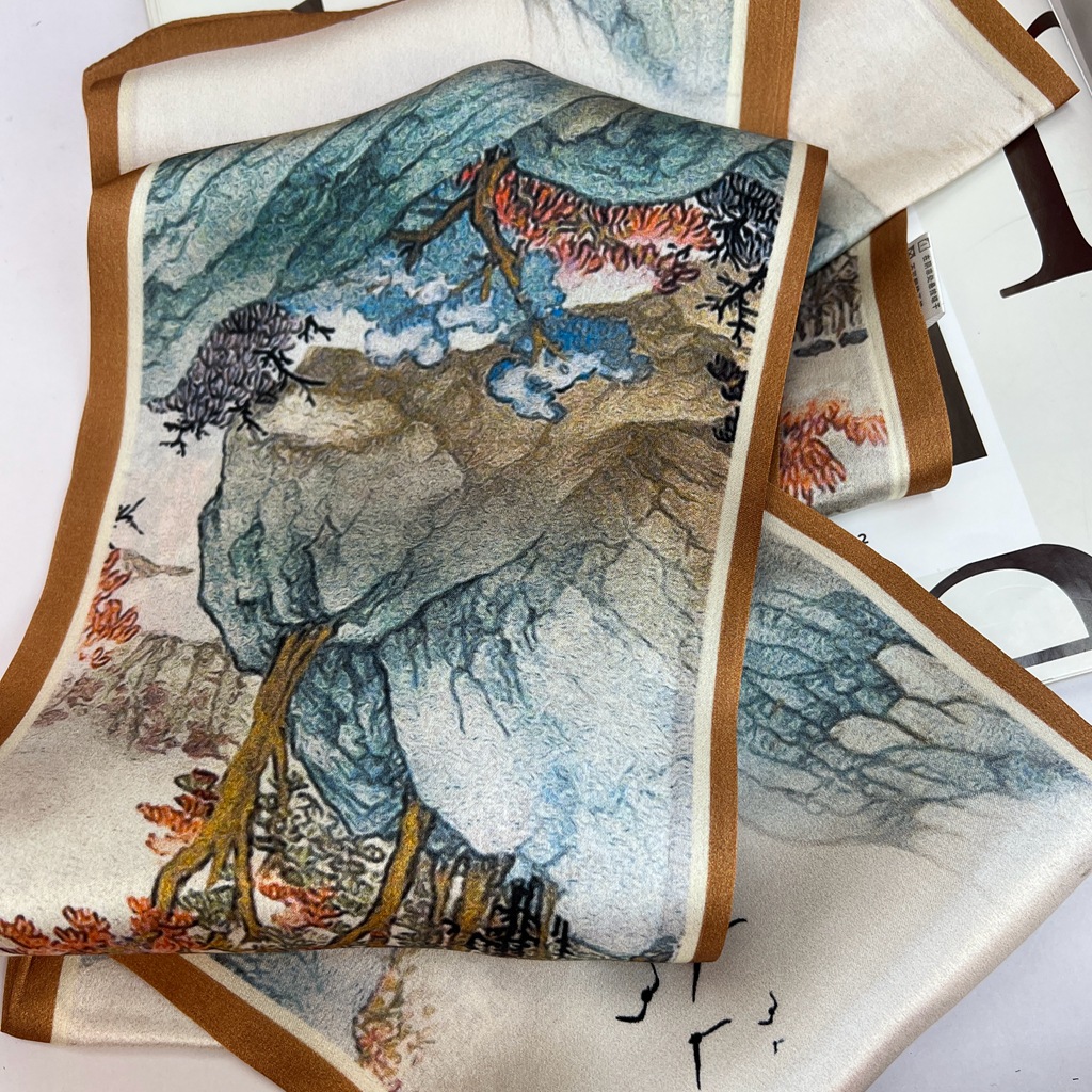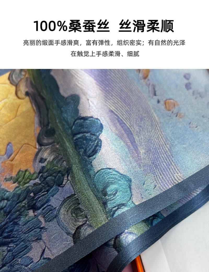 새로운 셔츠 스카프 뽕나무 실크 스카프 어머니의 날 선물 2024 유화 블루 실크 긴 스카프스토어 가기