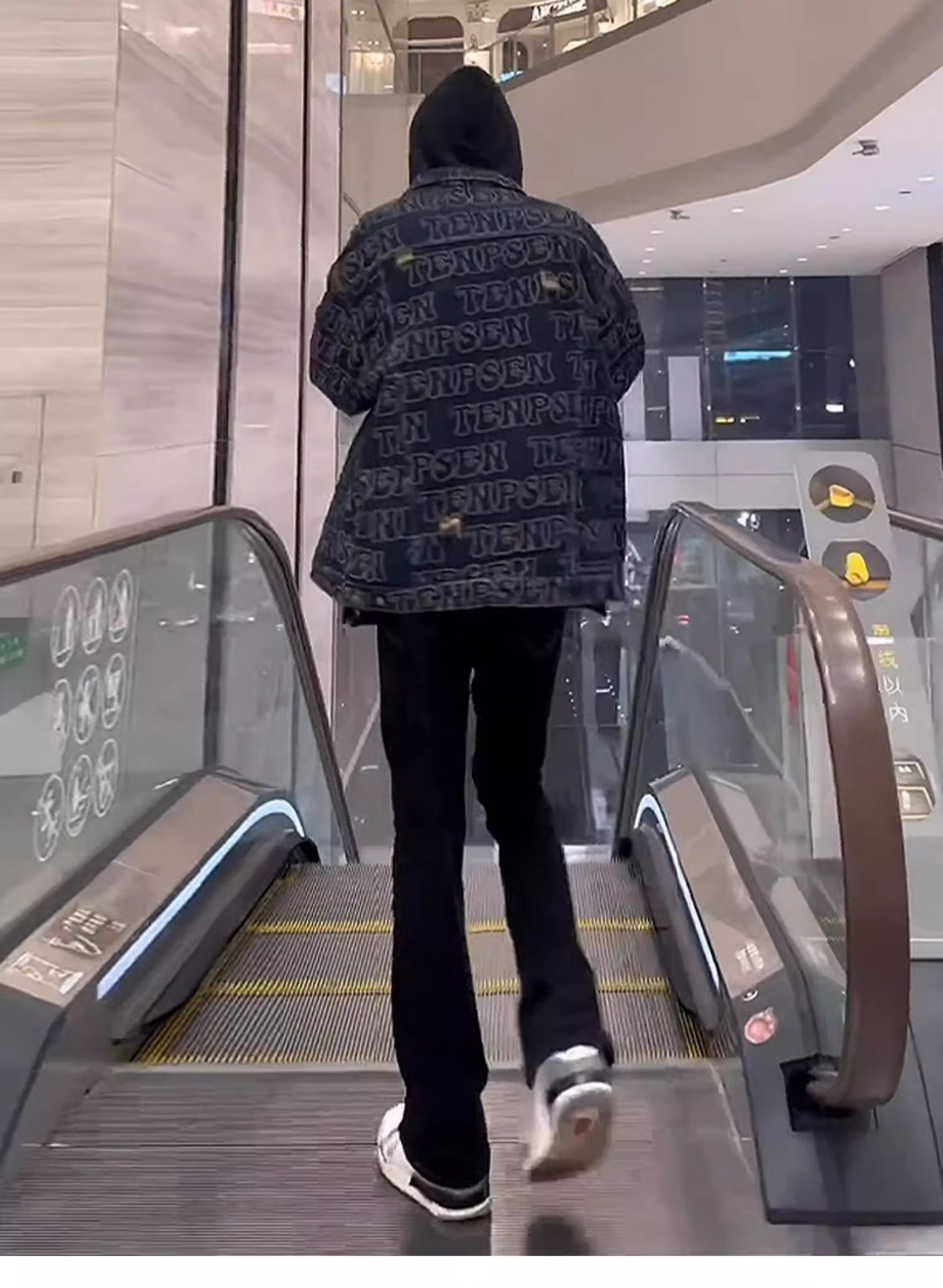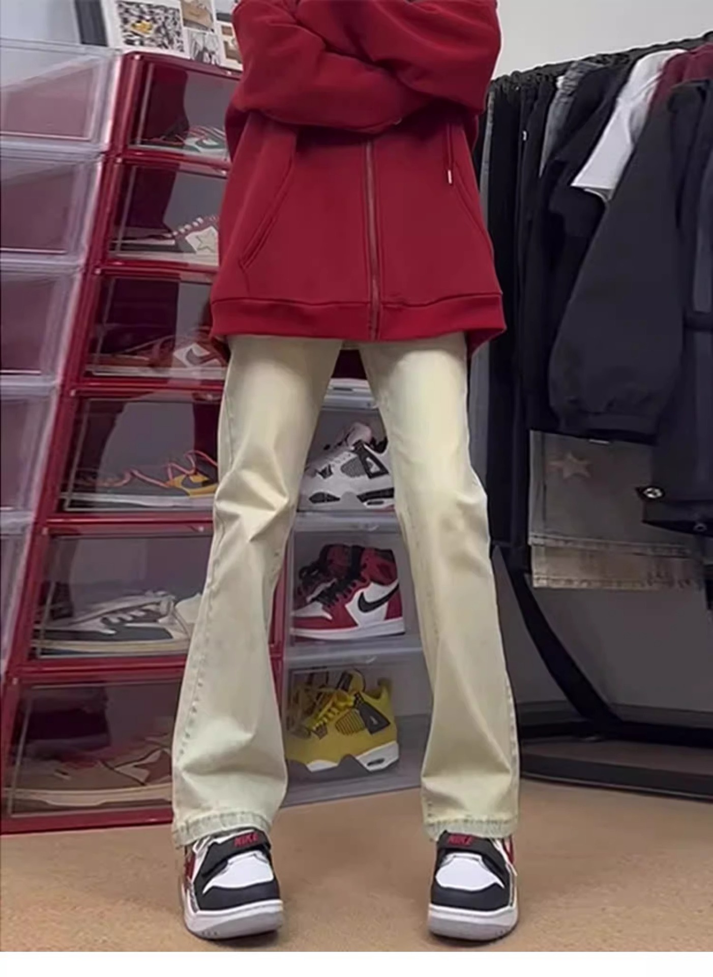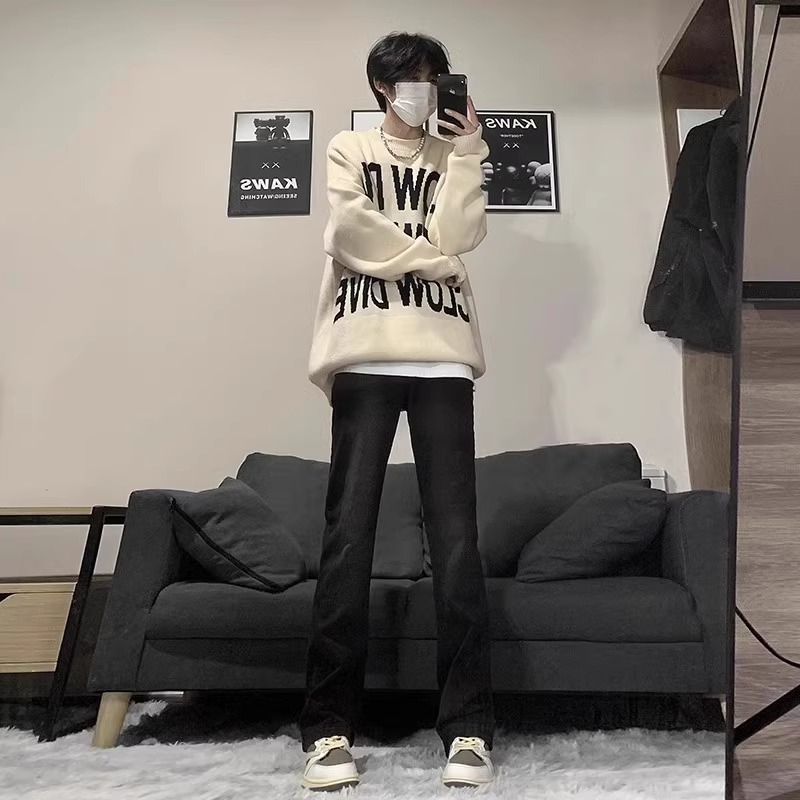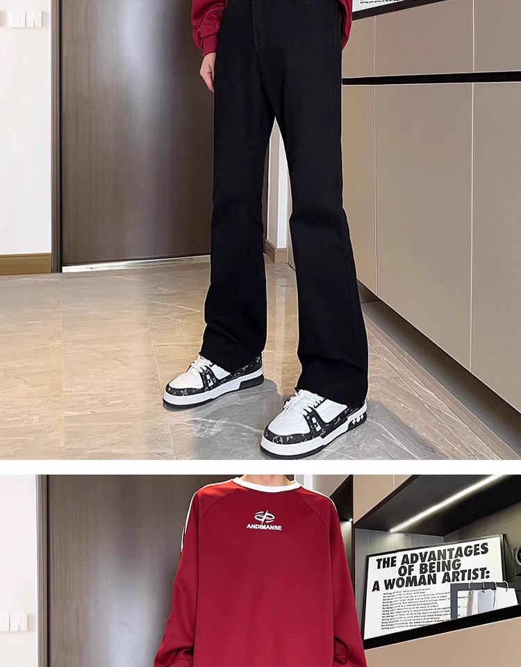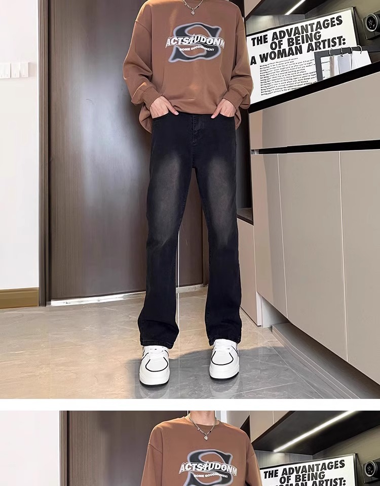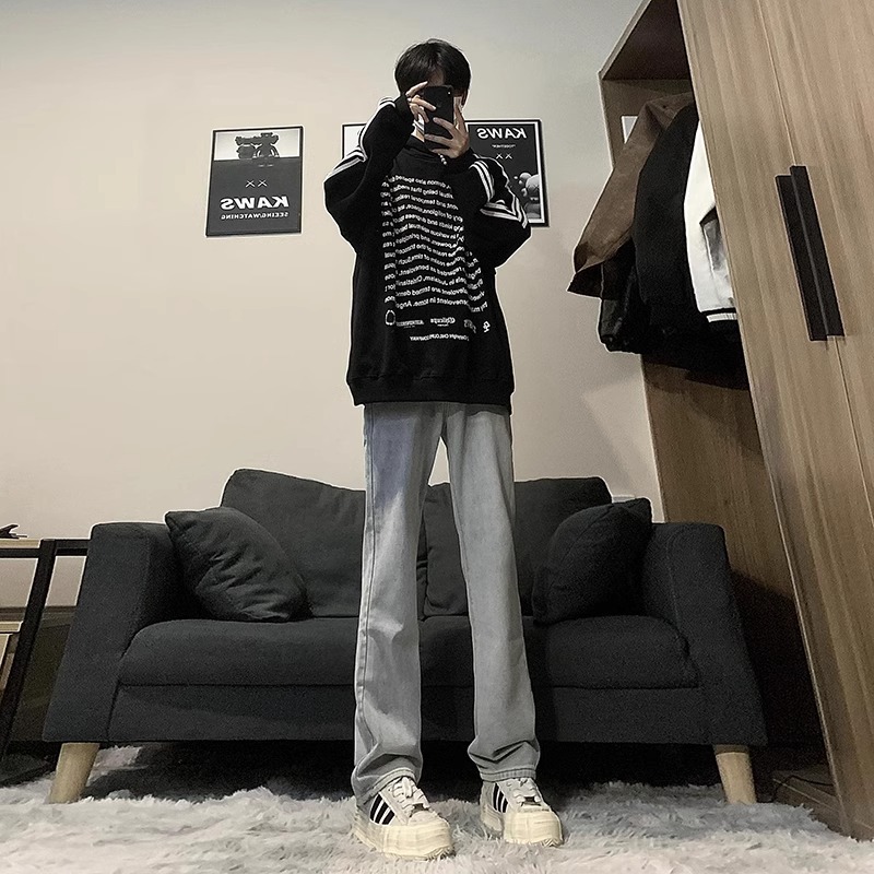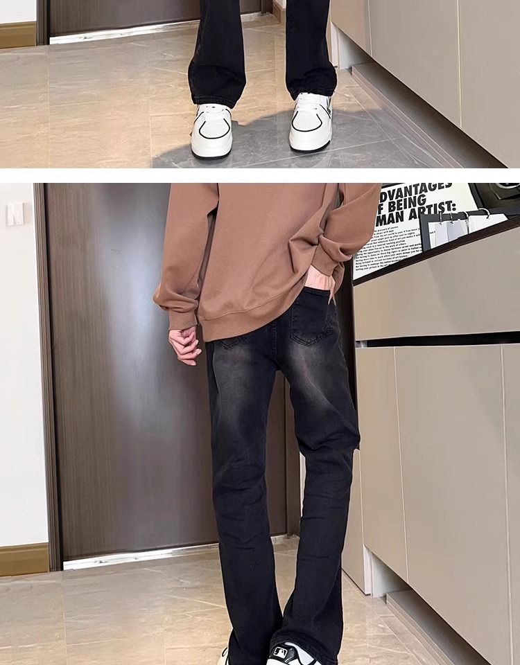 미국 분위기 바지 하이 스트리트 프릴 패션 브랜드 스키니 블랙 청바지 남성 슬림 핏 스트레이트 팬츠 봄과 가을스토어 가기